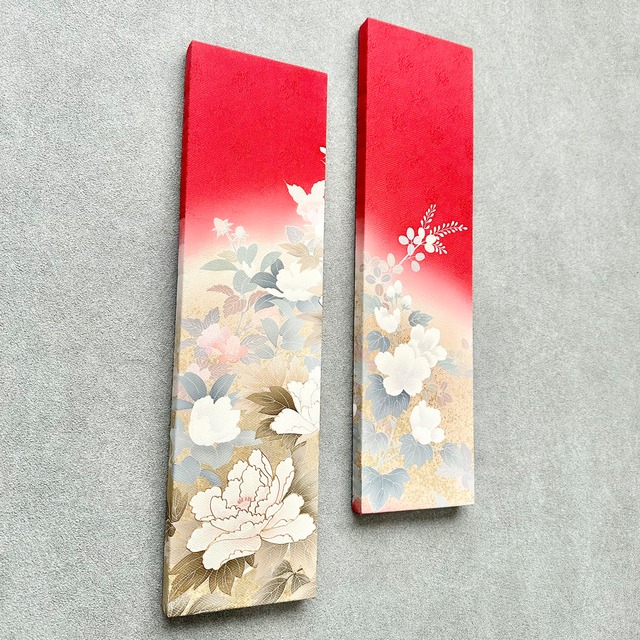 Kimono fabric panel 45×12cm 着物のファブリックパネル 秋の野に金色の牡丹(2枚セット) Japanese Kimono Interior Japanese Style Art Panels Kimono panel Washitsu Japanese interior