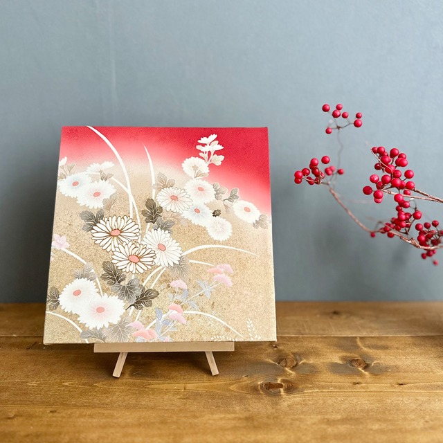Kimono fabric panel 30×30cm 着物のファブリックパネル 秋の野に金色の菊花 Japanese Kimono Interior Japanese Style Art Panels Kimono panel Washitsu Japanese interior