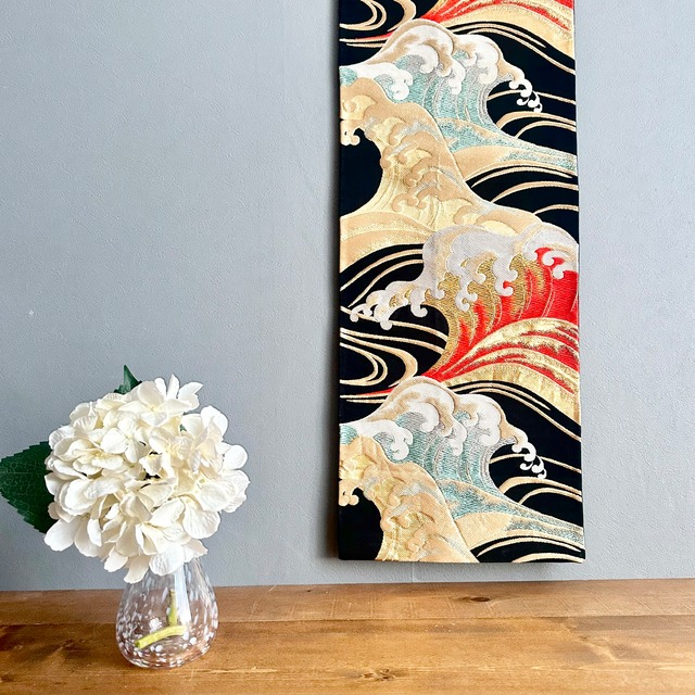 Kimono tapestry 帯のタペストリー 漆黒に輝く波 Japanese Kimono Interior Art Panel Kakejiku Art Wall Art Kimono Panel