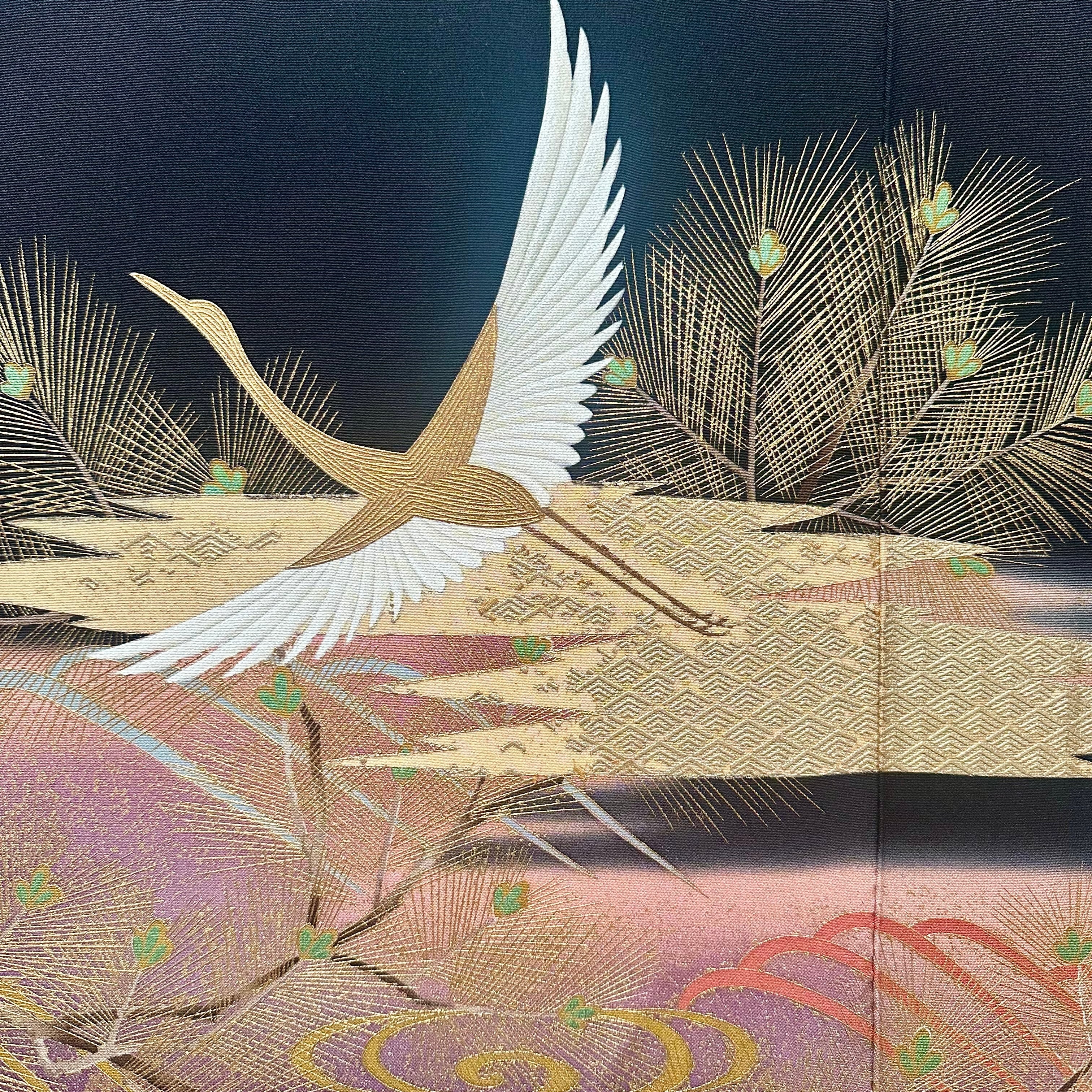Kimono fabric panel *45×45cm大きな着物のファブリックパネル 輝く松と鶴(2枚セット) Japanese Kimono Interior Japanese Style Art Panels Kimono panel Washitsu Japanese interior | koto1946