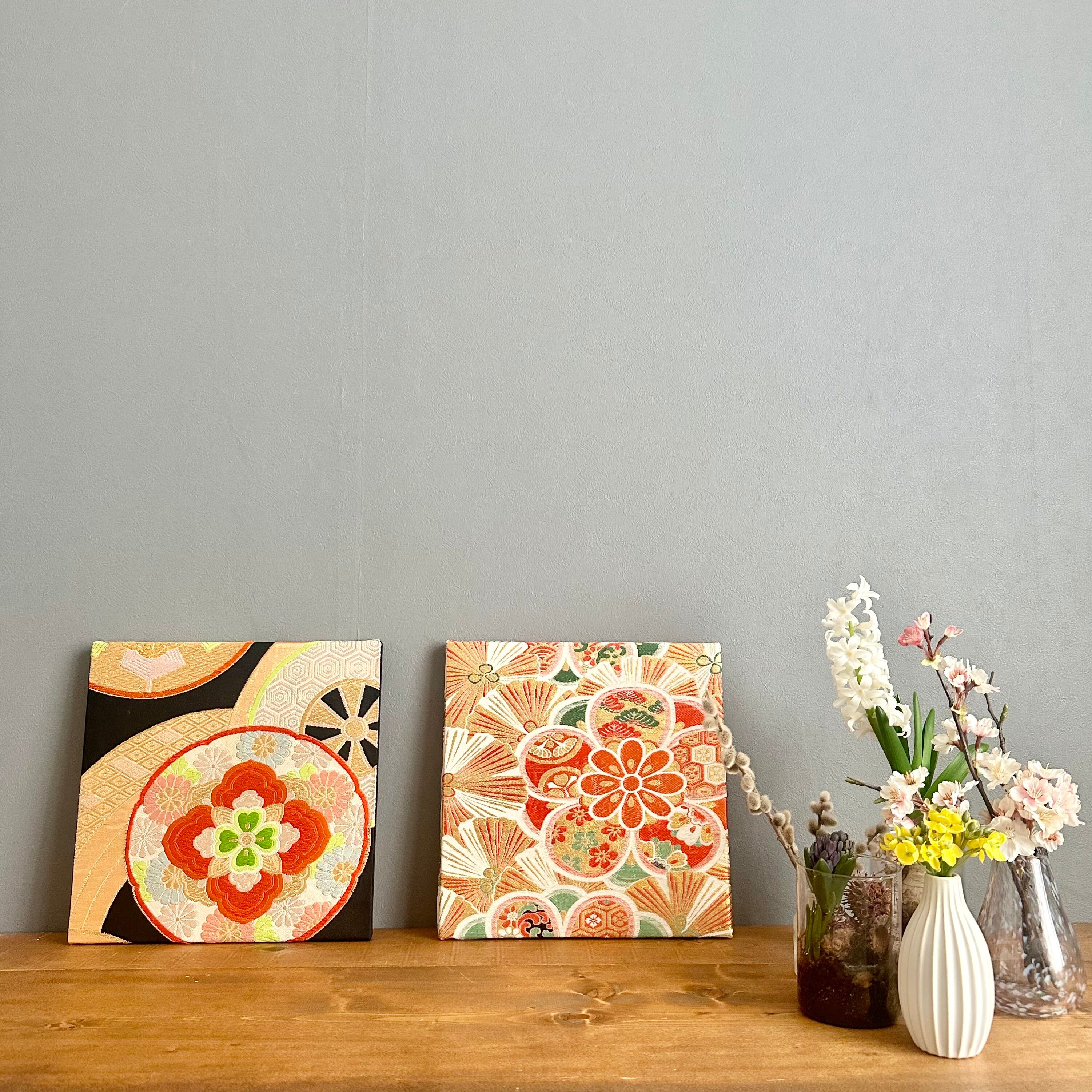 Kimono fabric panel 30×30cm 帯のファブリックパネル アンティークの花(2枚セット) Japanese Kimono Interior Japanese Style Art Panels Kimono panel Washitsu Japanese interior | koto1946