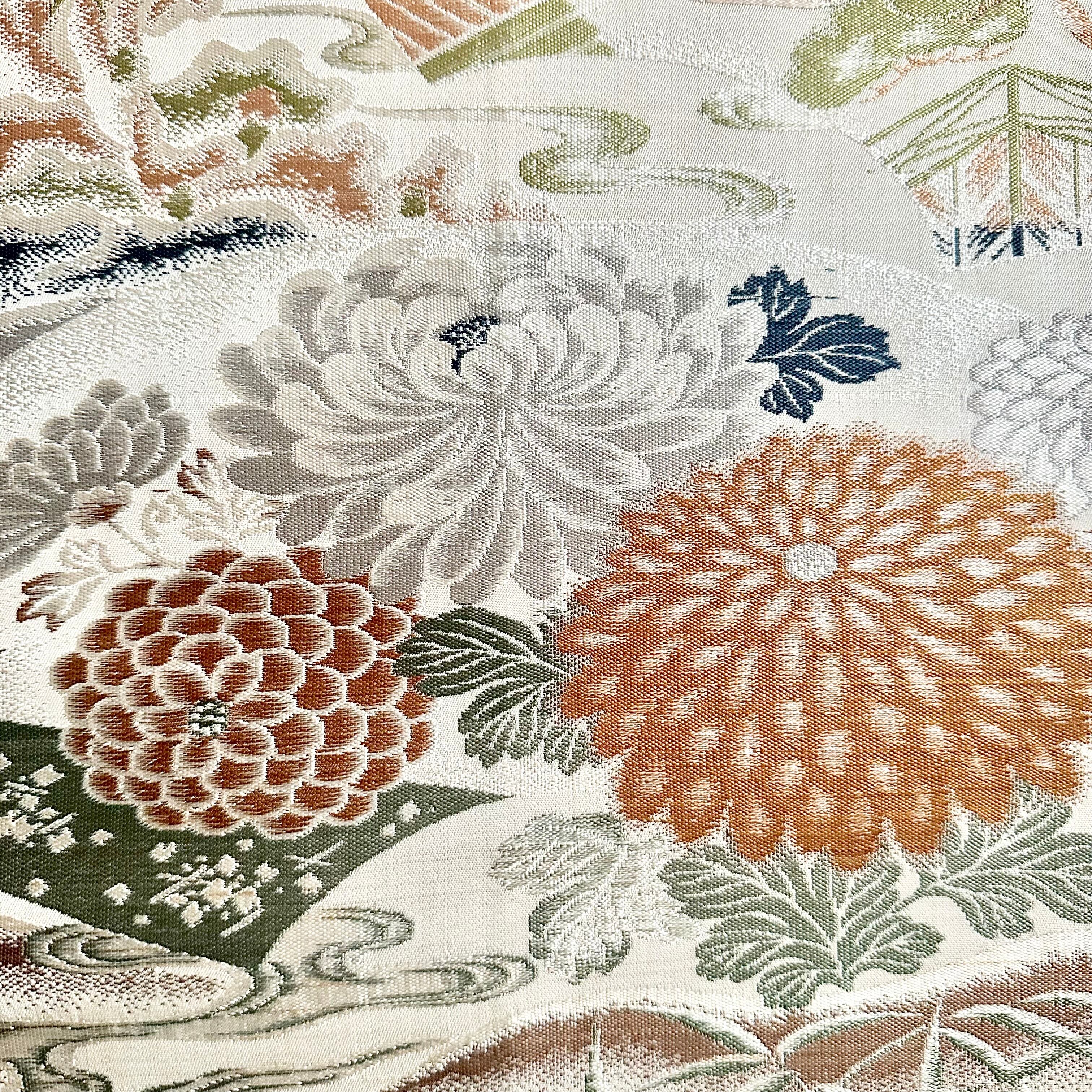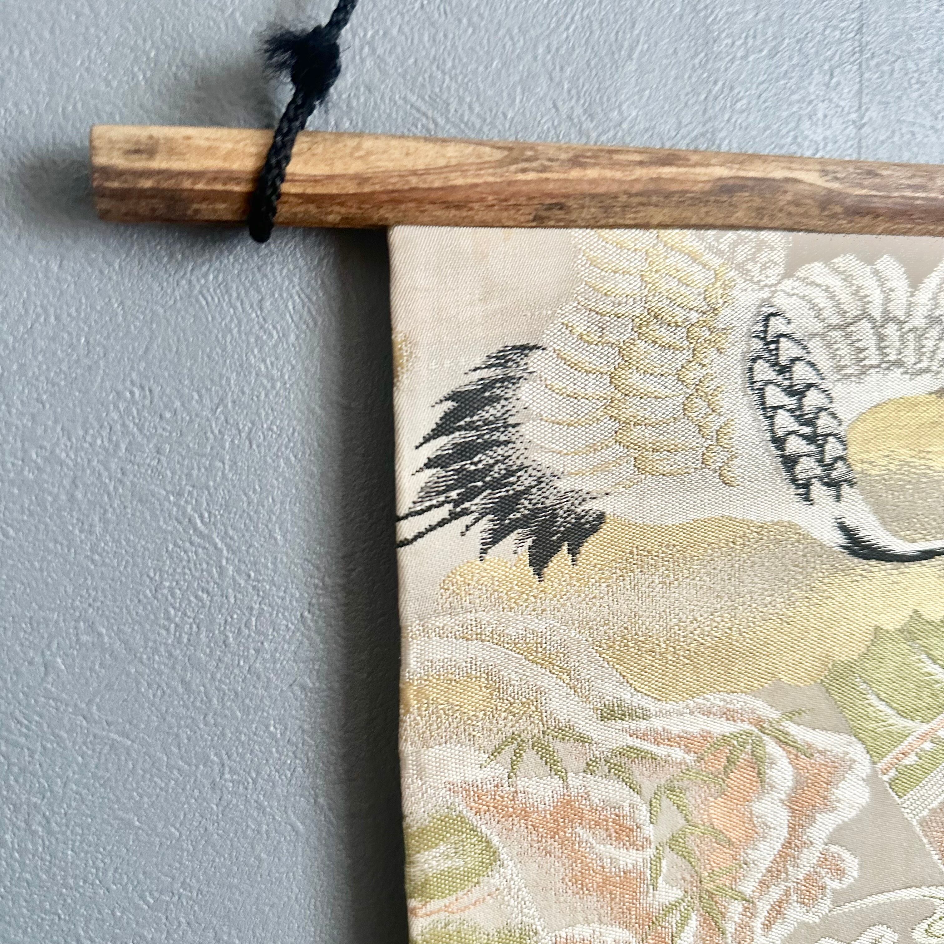 Kimono tapestry 帯のタペストリー アンティーク 鶴と菊花 Japanese Kimono Interior Art Panel Kakejiku Art Wall Art Kimono Panel | koto1946