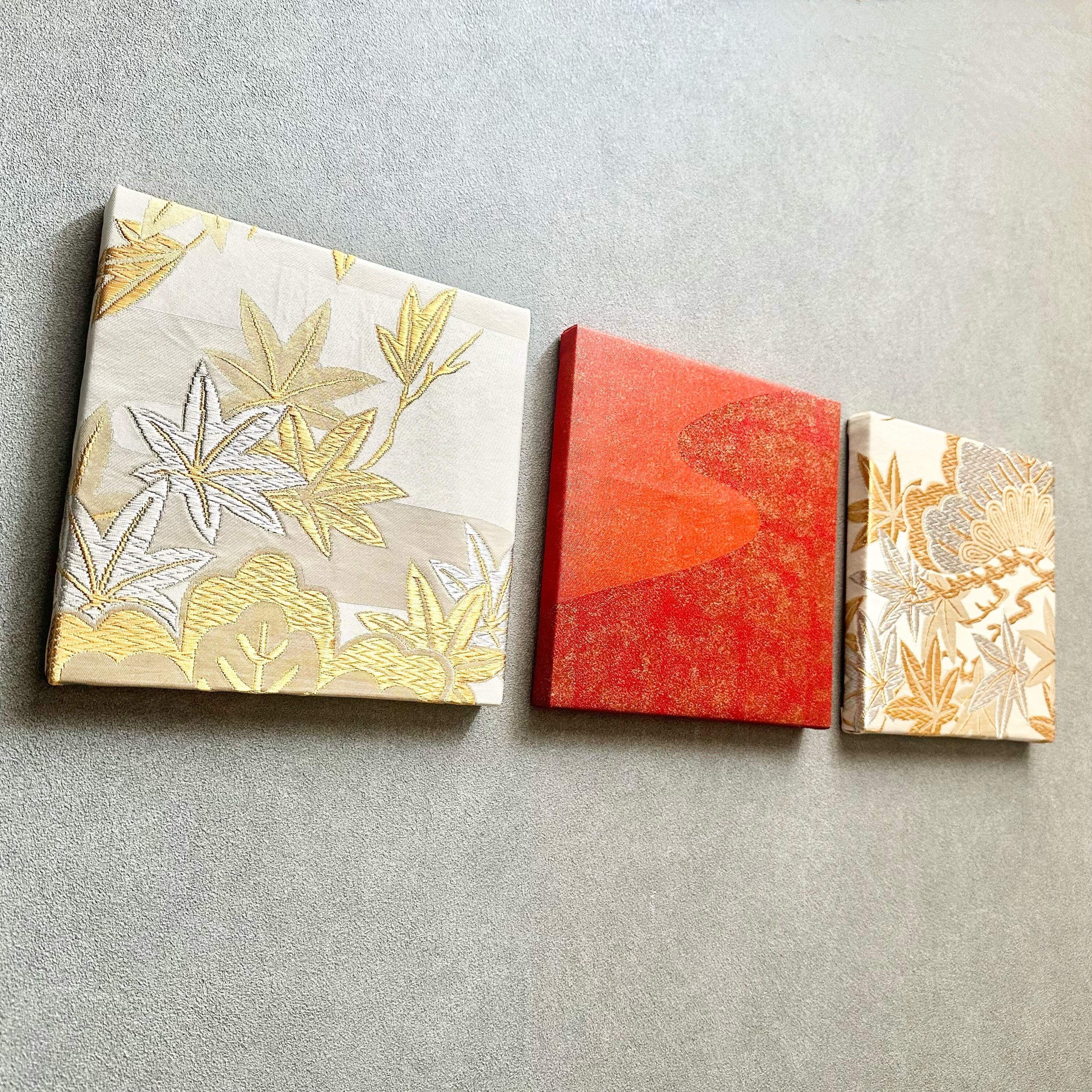 Kimono fabric panel 22×22cm 着物のファブリックパネル 金色の紅葉(3枚セット) Japanese Kimono Interior Japanese Style Art Panels Kimono panel Washitsu Japanese interior | koto1946