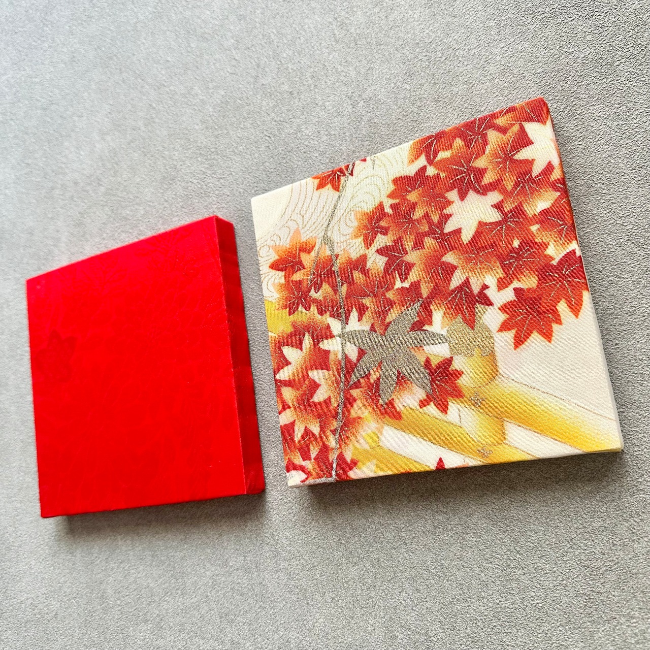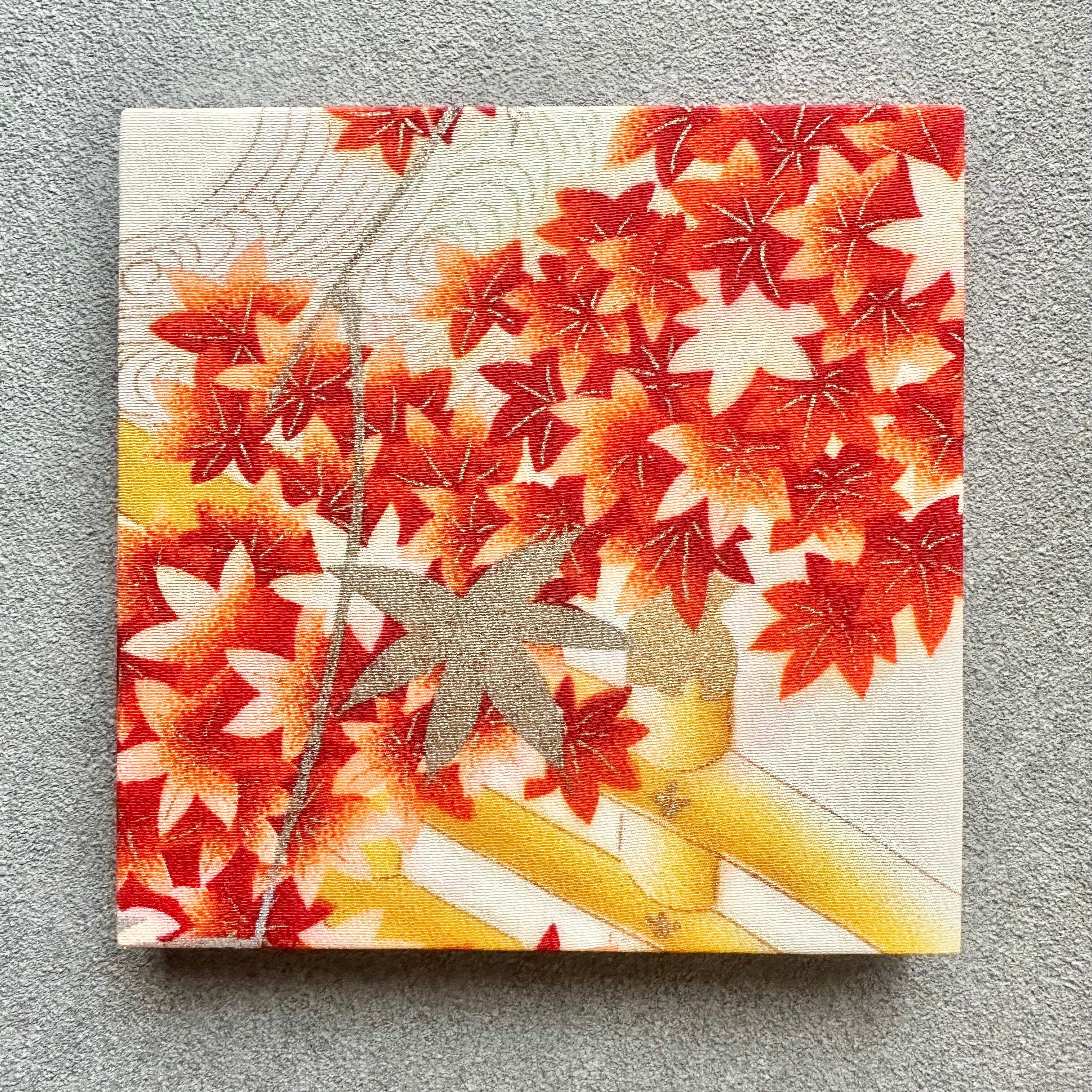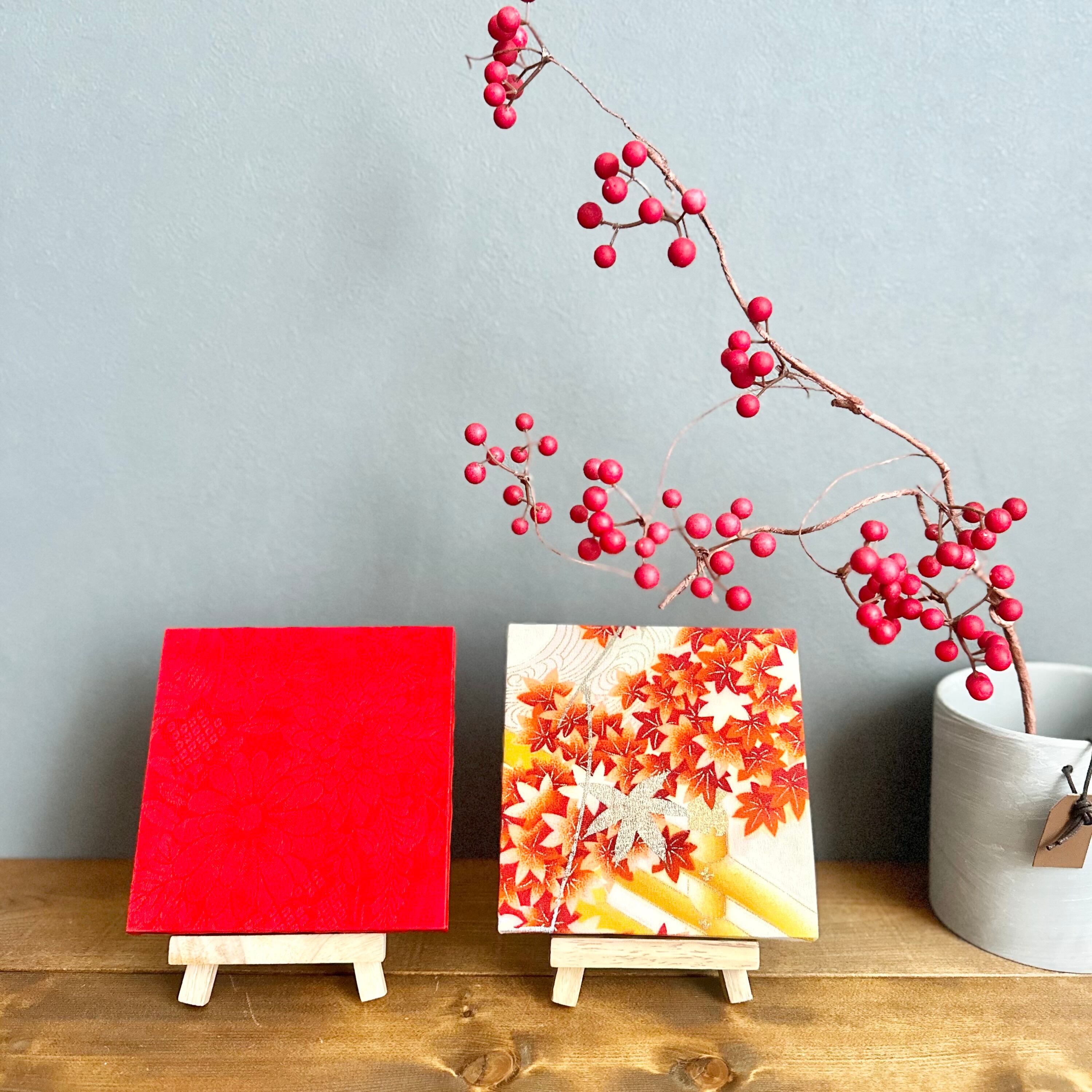 Kimono fabric panel 15×15cm 着物のファブリックパネル イロトリドリ 赤と紅葉(2枚セット) Japanese Kimono Interior Japanese Style Art Panels Kimono panel Washitsu Japanese interior | koto1946