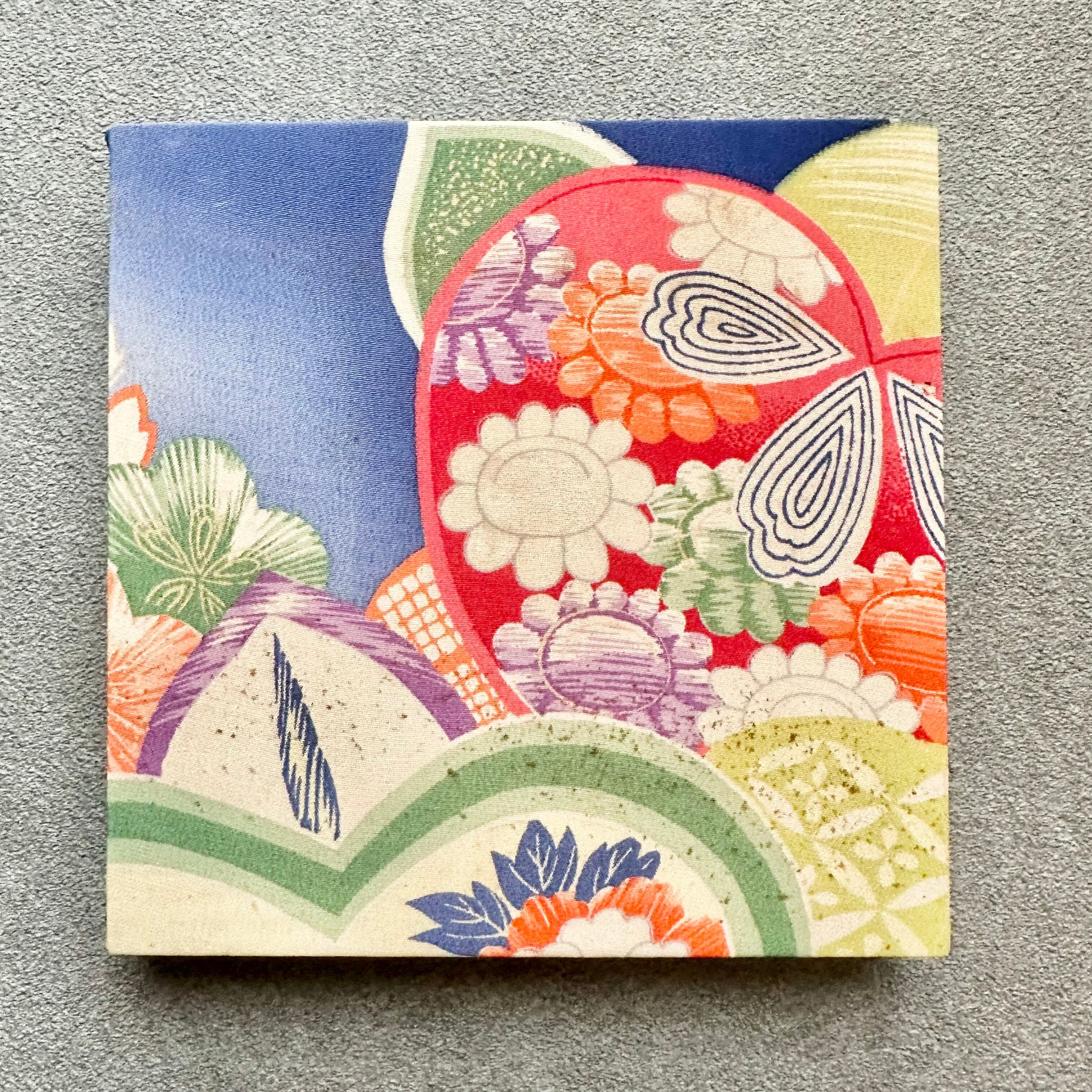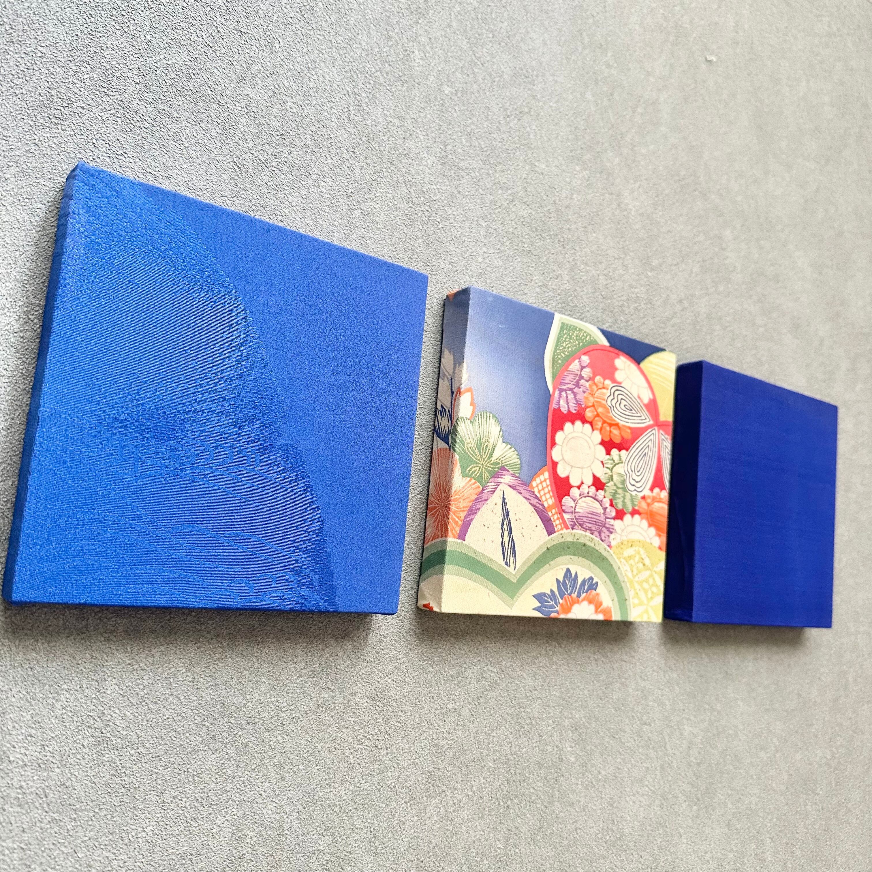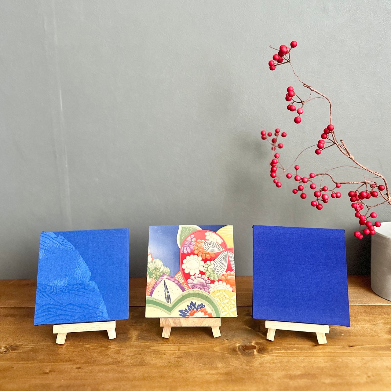 Kimono fabric panel 15×15cm 着物のファブリックパネル イロトリドリ 青に橘(3枚セット) Japanese Kimono Interior Japanese Style Art Panels Kimono panel Washitsu Japanese interior | koto1946