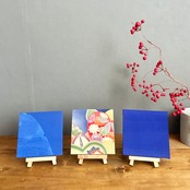 画びょうや押しピン、フックなどでも飾っていただけますし、イーゼルなどに立て掛けて飾っていただくこともできます。