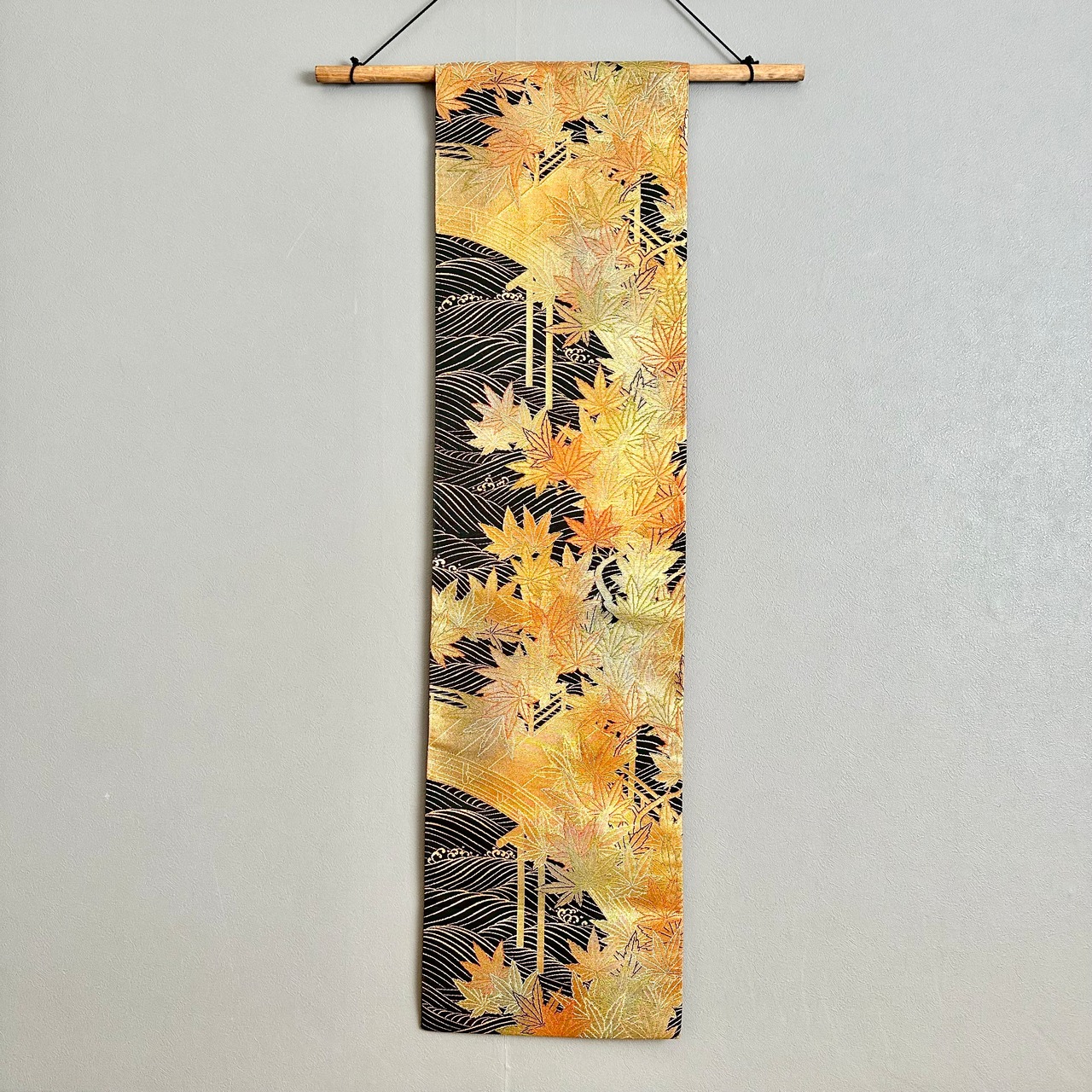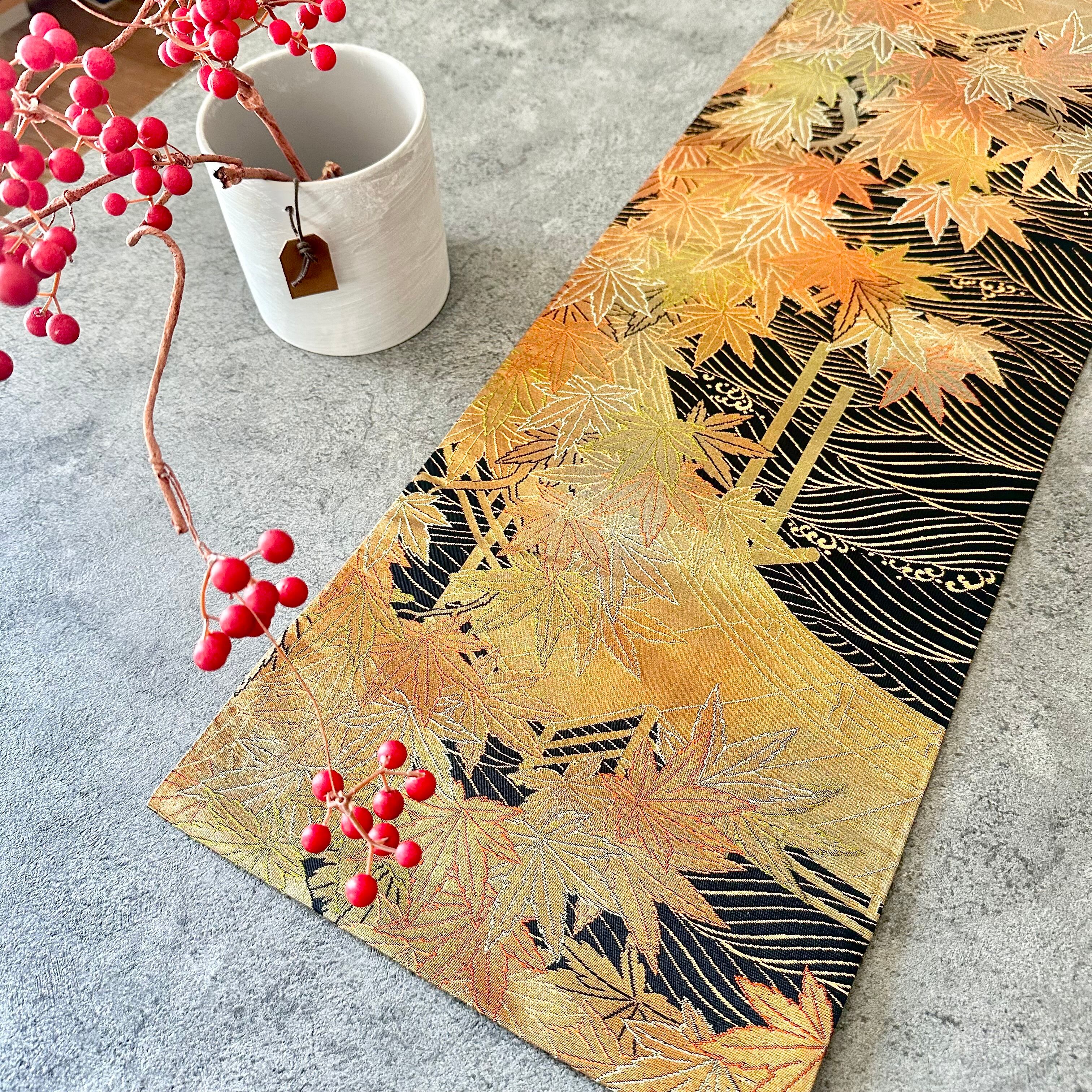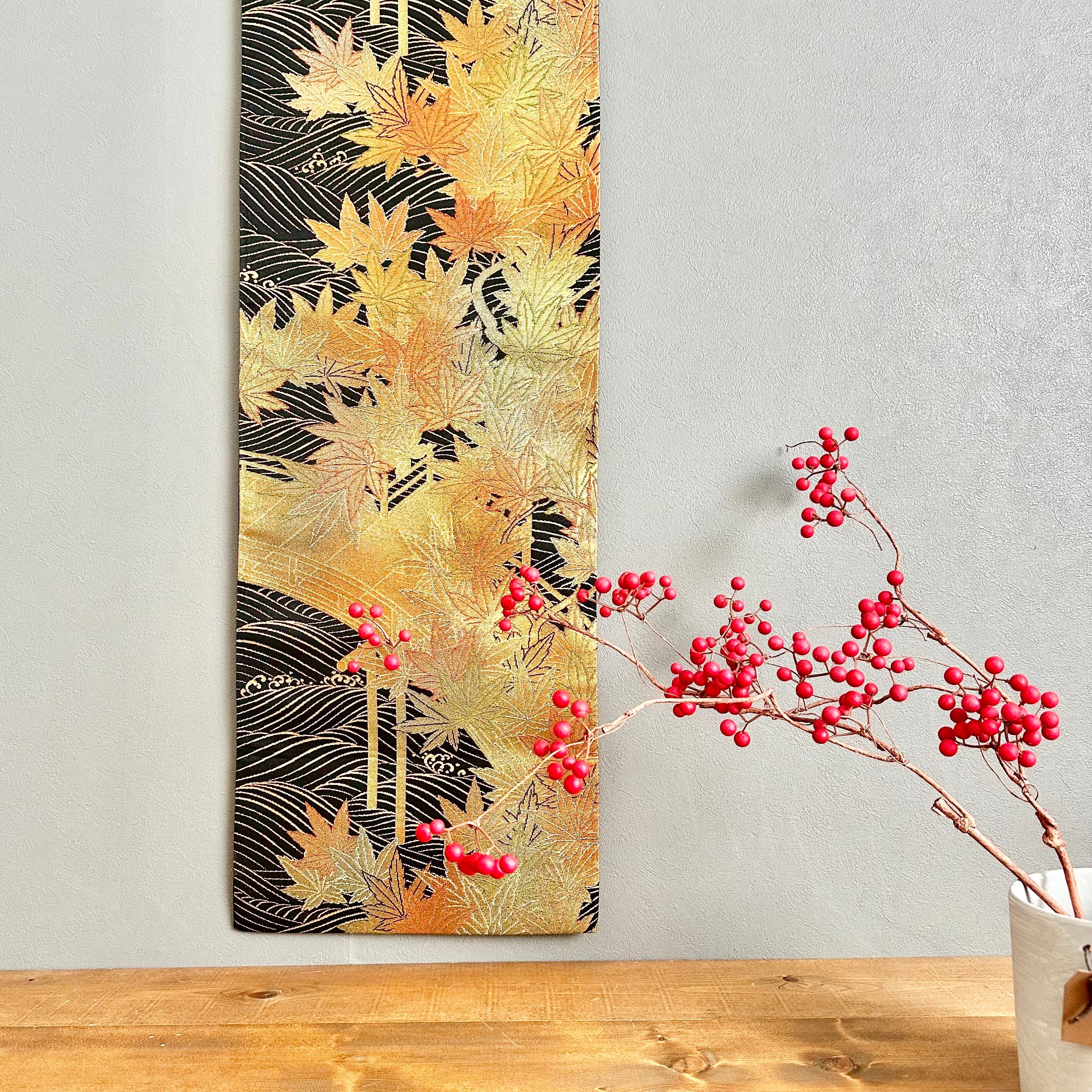 Kimono tapestry 帯のタペストリー 金色の紅葉 Japanese Kimono Interior Art Panel Kakejiku Art Wall Art Kimono Panel