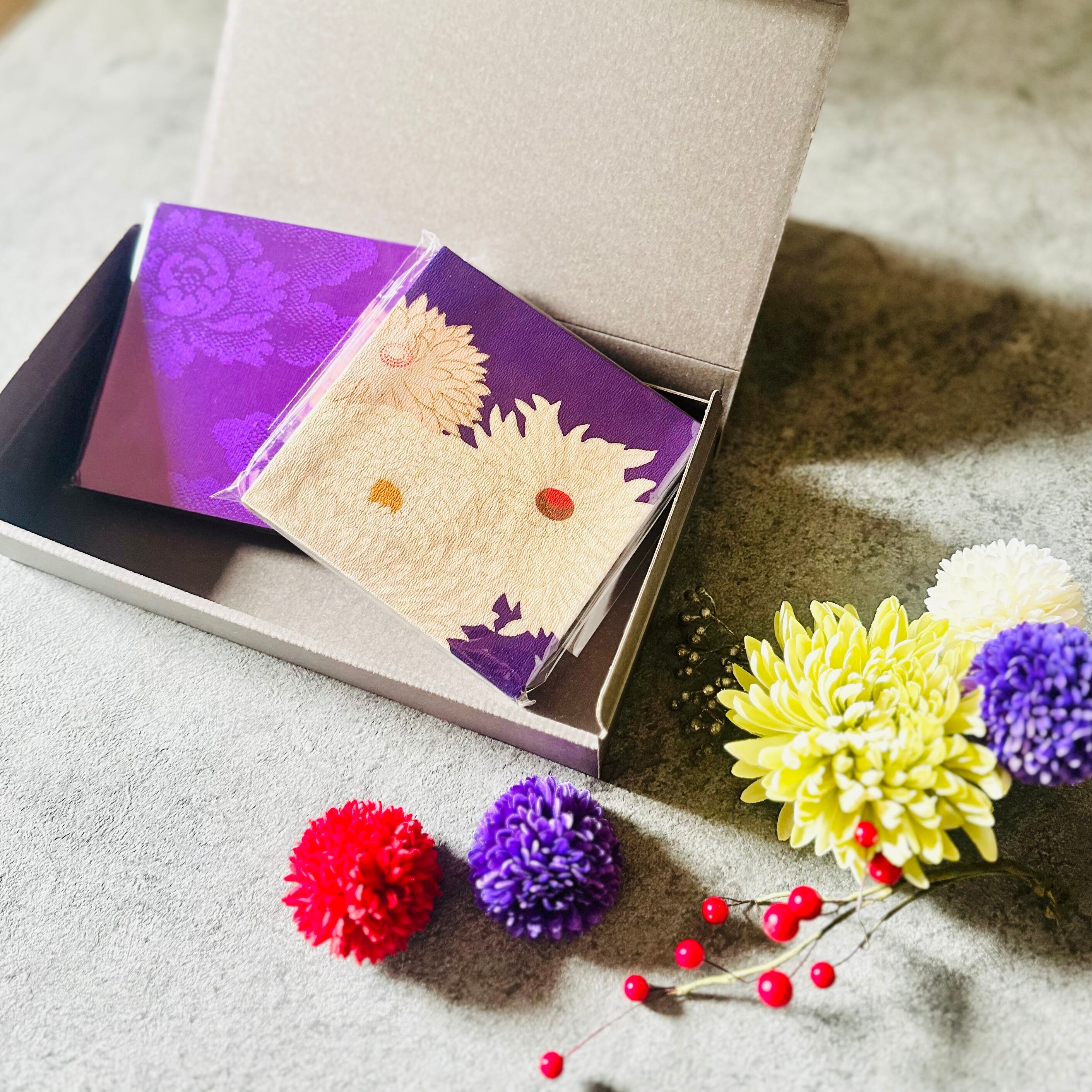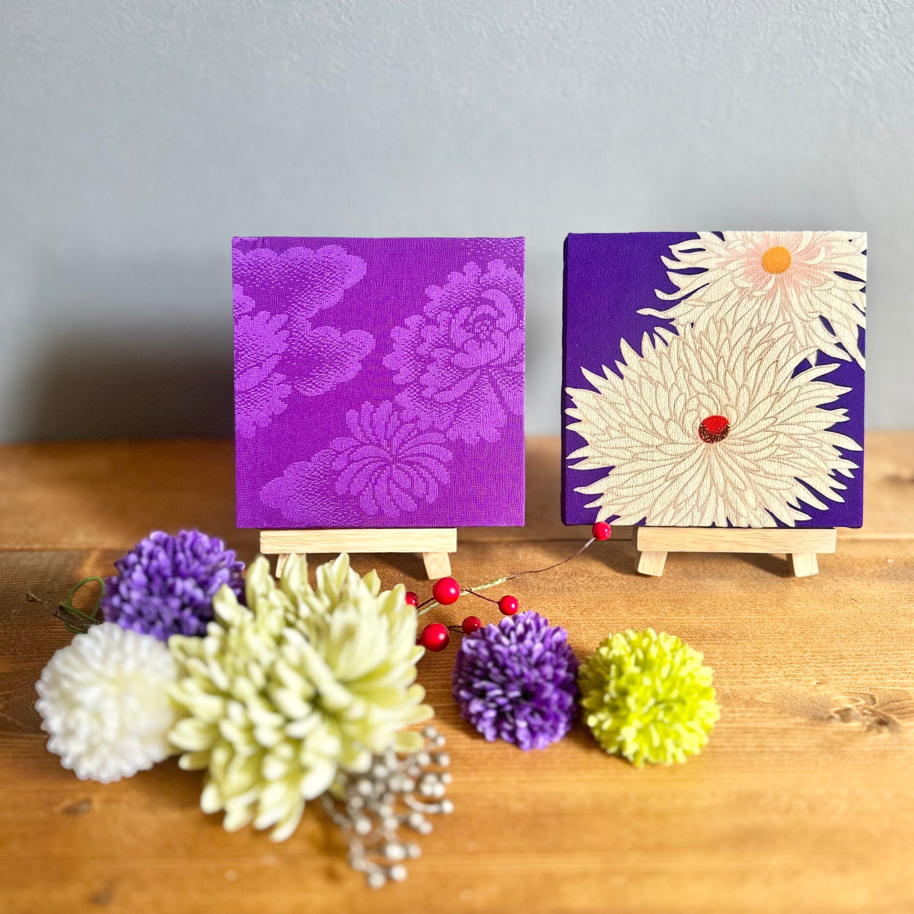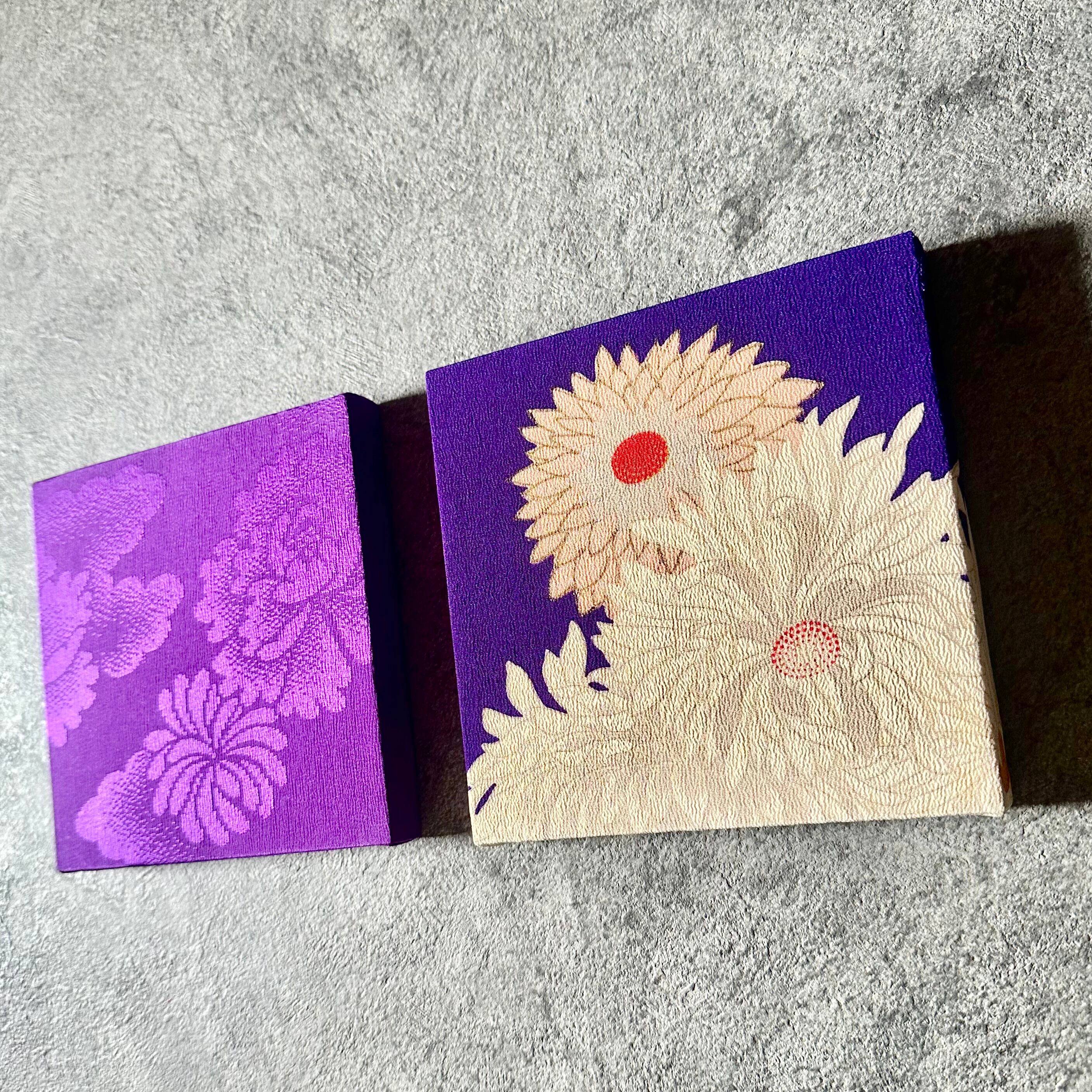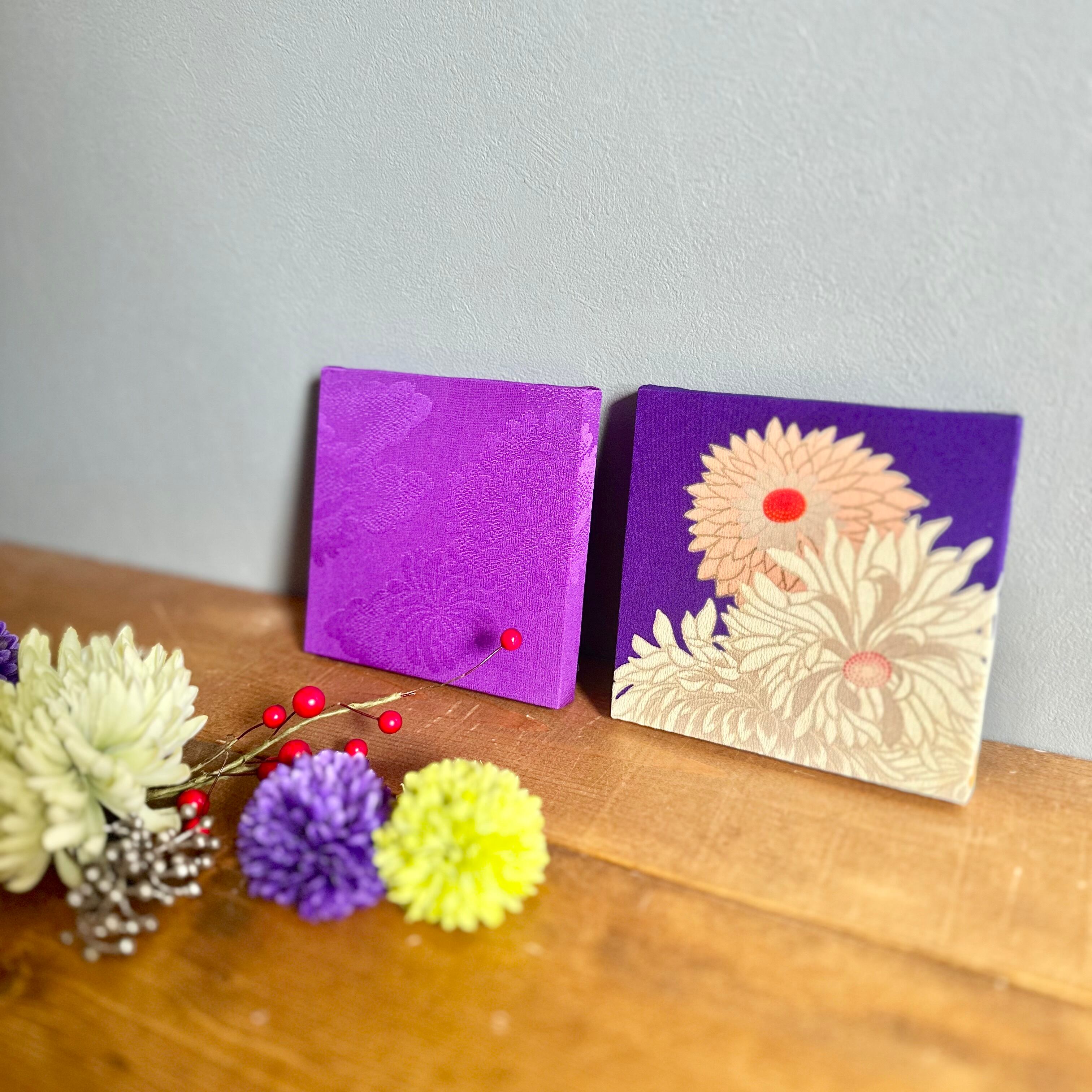 Kimono fabric panel 15×15cm 【長月 -イロトリドリ- 菊花】(2枚 ギフトボックス入り) Japanese Kimono Interior Japanese Style Art Panels Kimono panel Washitsu Japanese interior | koto1946
