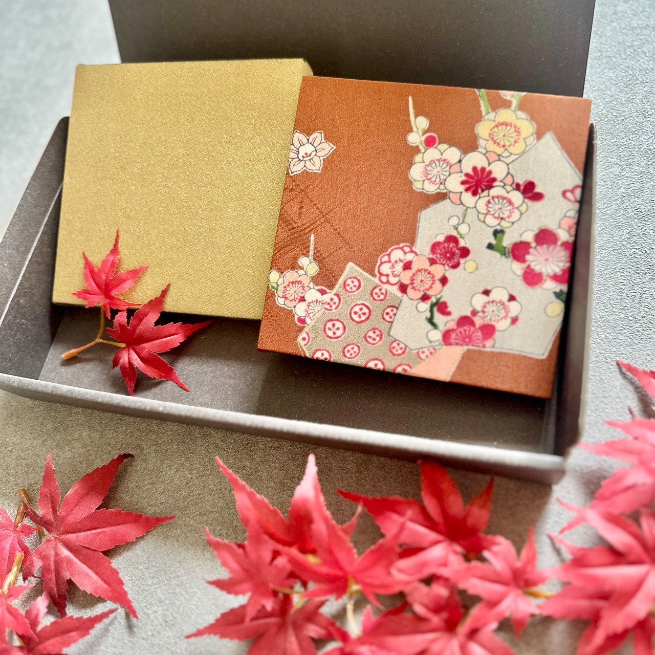 Kimono fabric panel 15×15cm 【神奈月 -イロトリドリ- 彩秋】(2枚 ギフトボックス入り) Japanese Kimono Interior Japanese Style Art Panels Kimono panel Washitsu Japanese interior | koto1946
