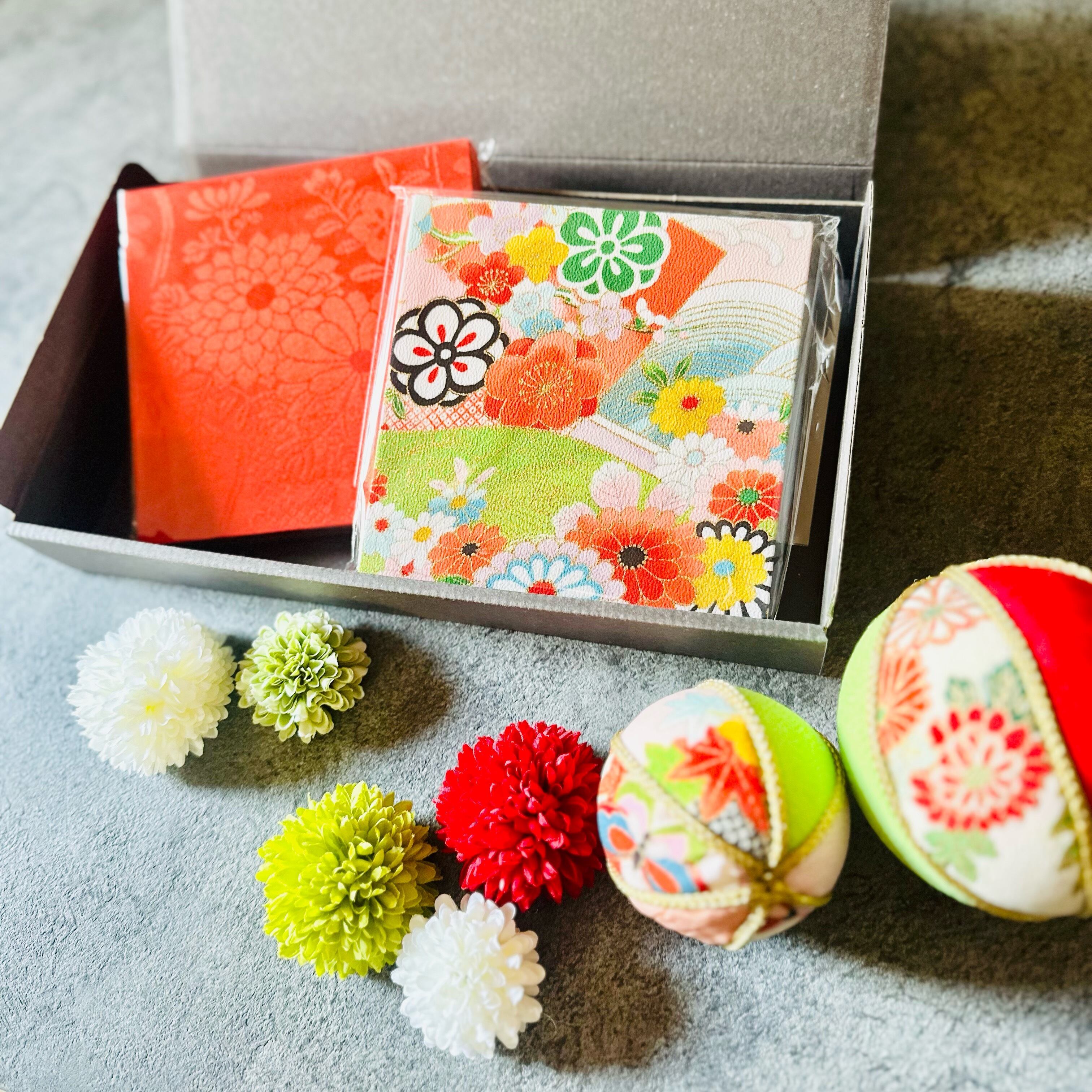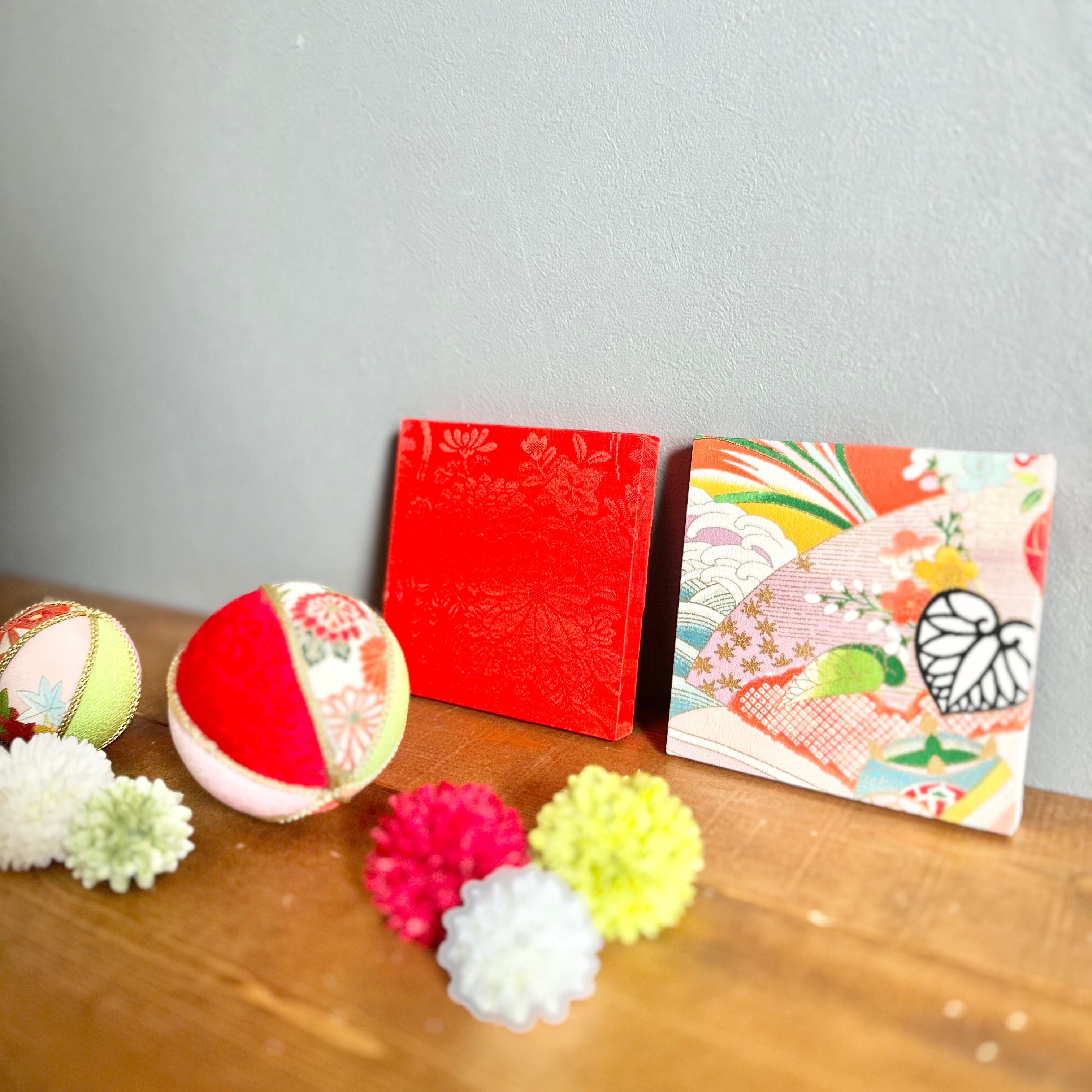 Kimono fabric panel 15×15cm 【霜月 -イロトリドリ- 千歳】(2枚 ギフトボックス入り) Japanese Kimono Interior Japanese Style Art Panels Kimono panel Washitsu Japanese interior | koto1946