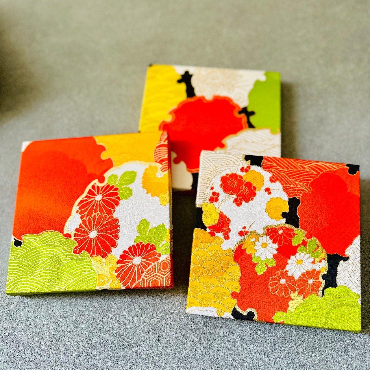 Kimono fabric panel 15×15cm 【師走 -イロトリドリ- 雪輪】(2枚 ギフトボックス入り) Japanese Kimono Interior Japanese Style Art Panels Kimono panel Washitsu Japanese interior | koto1946