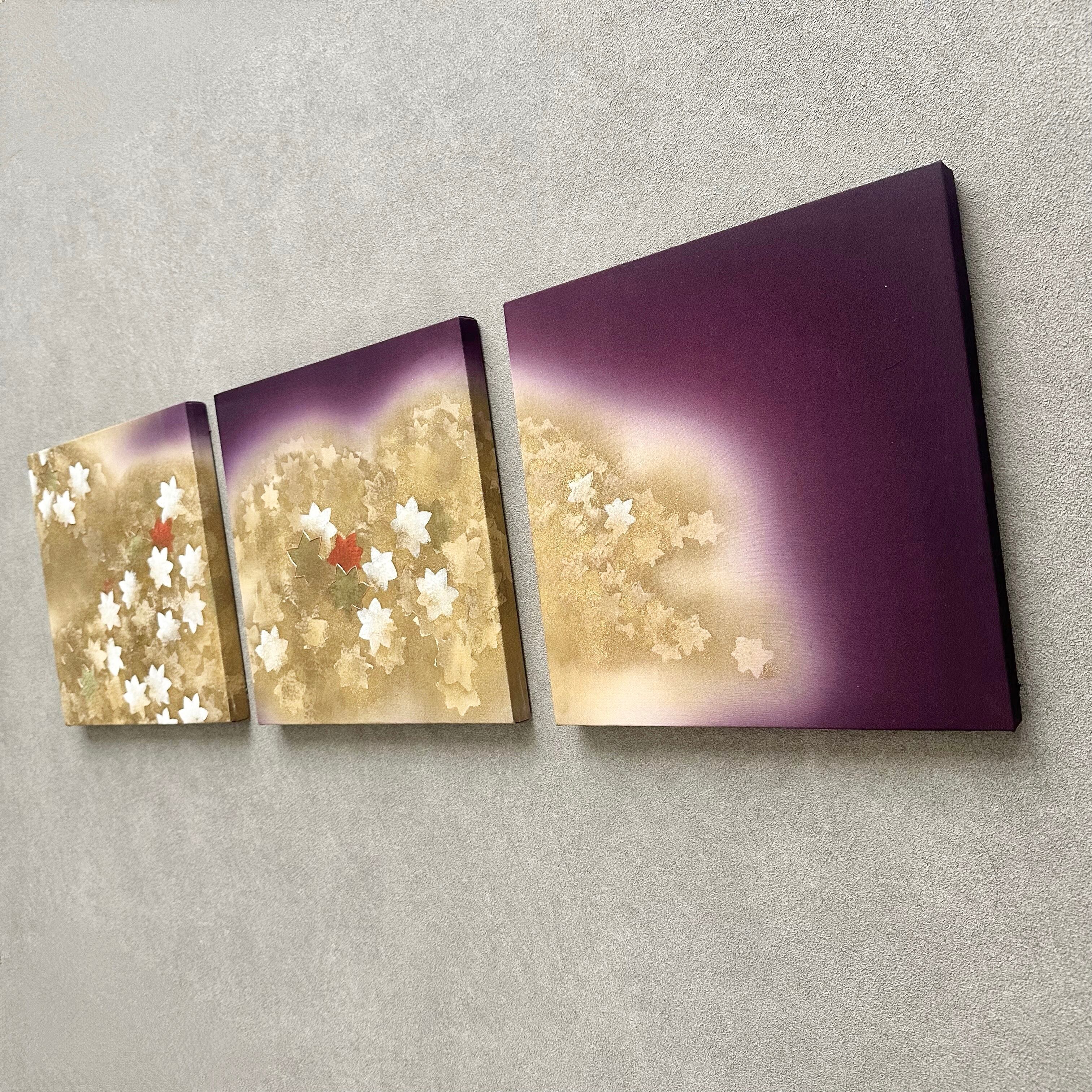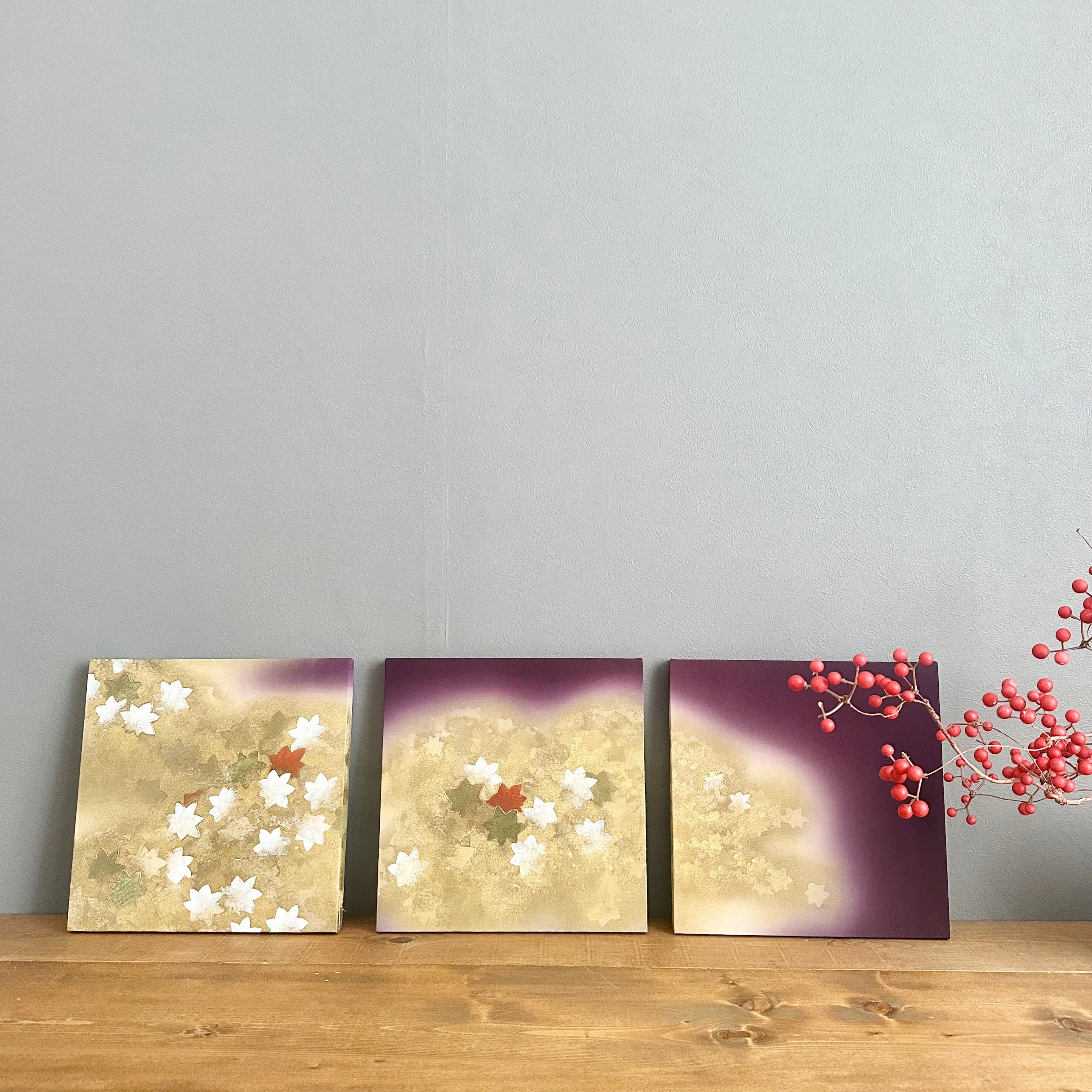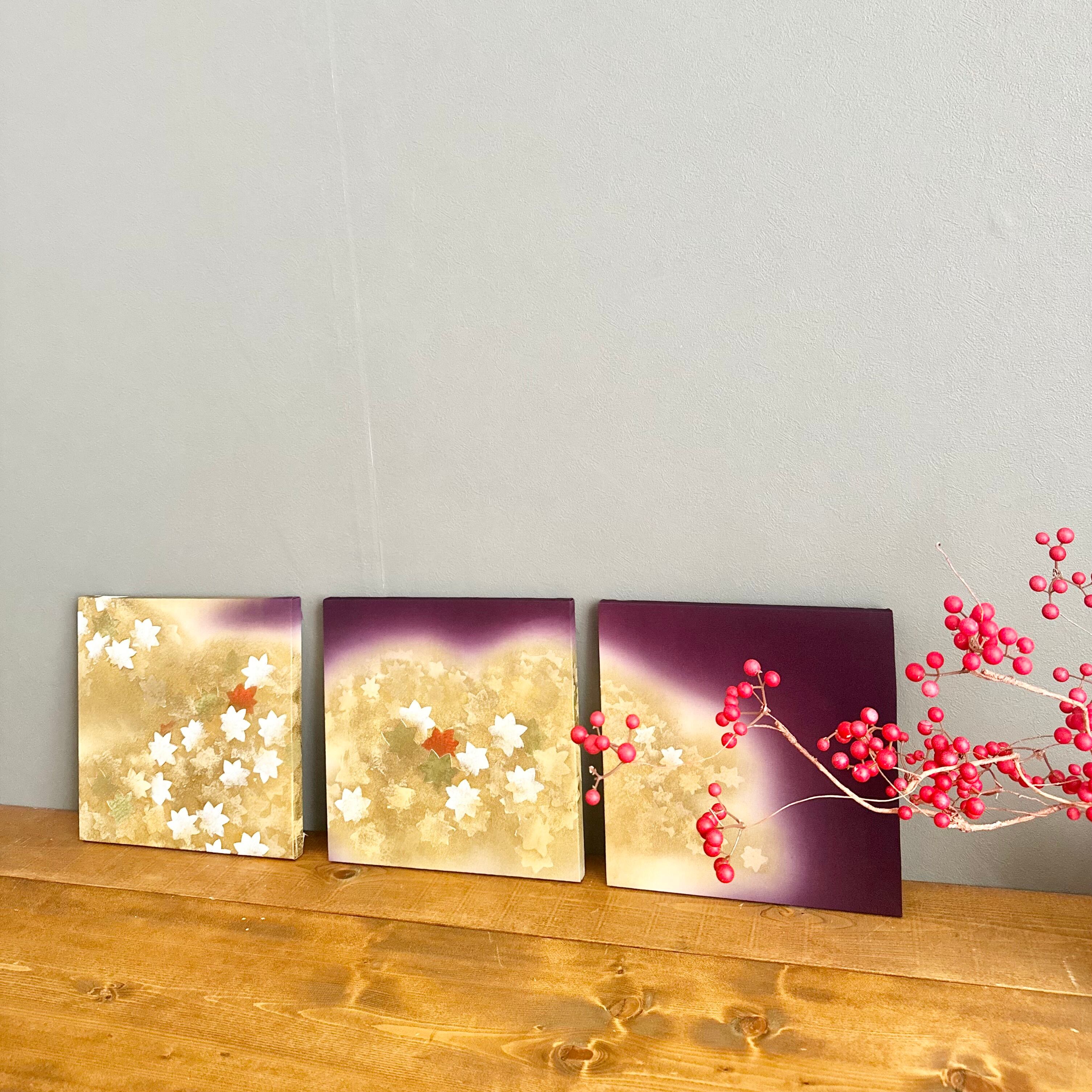 Kimono fabric panel 26×26cm 着物のファブリックパネル 金色の紅葉(3枚セット) Japanese Kimono Interior Japanese Style Art Panels Kimono panel Washitsu Japanese interior | koto1946