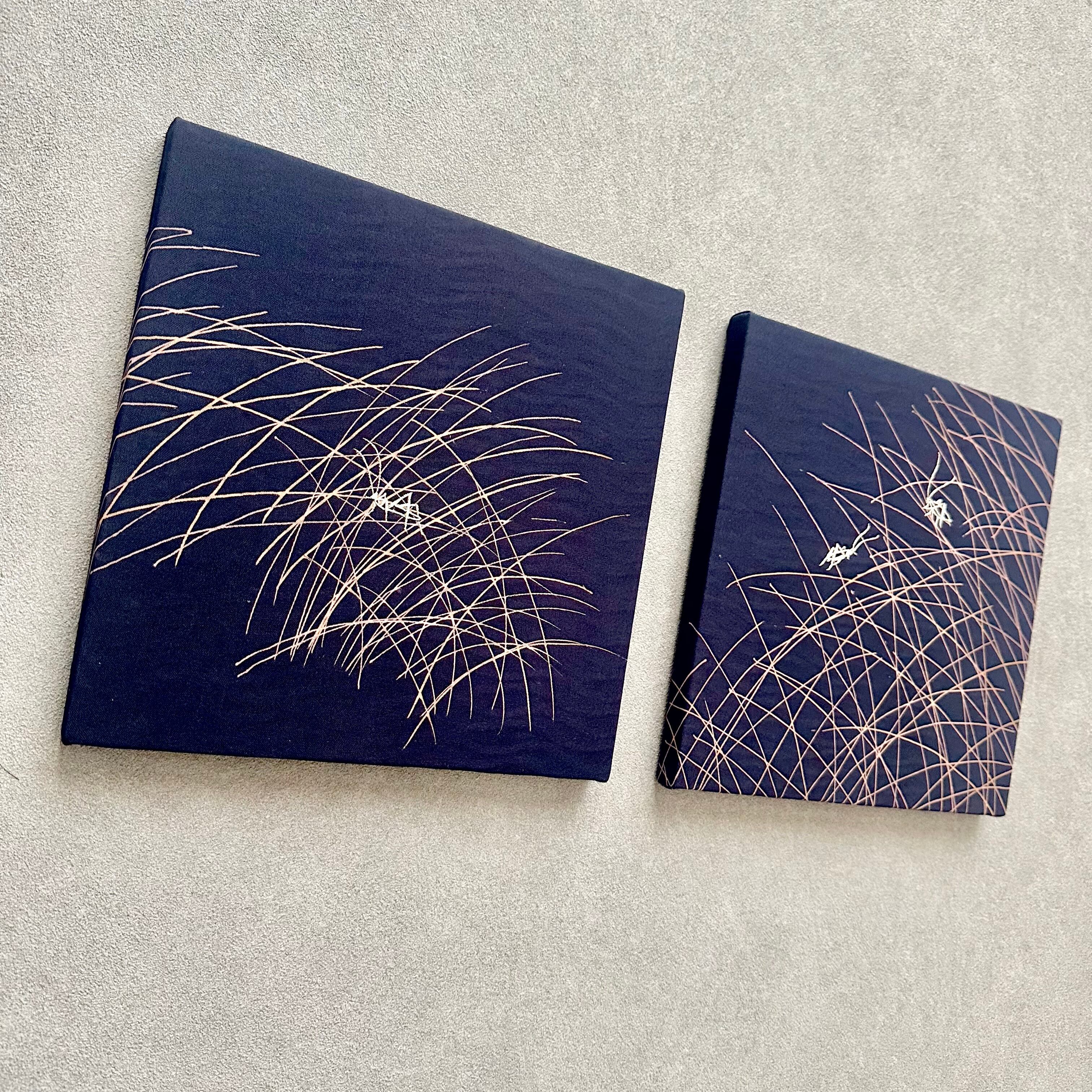 Kimono fabric panel 27×27cm 着物のファブリックパネル 鈴虫の草原(2枚セット) Japanese Kimono Interior Japanese Style Art Panels Kimono panel Washitsu Japanese interior | koto1946
