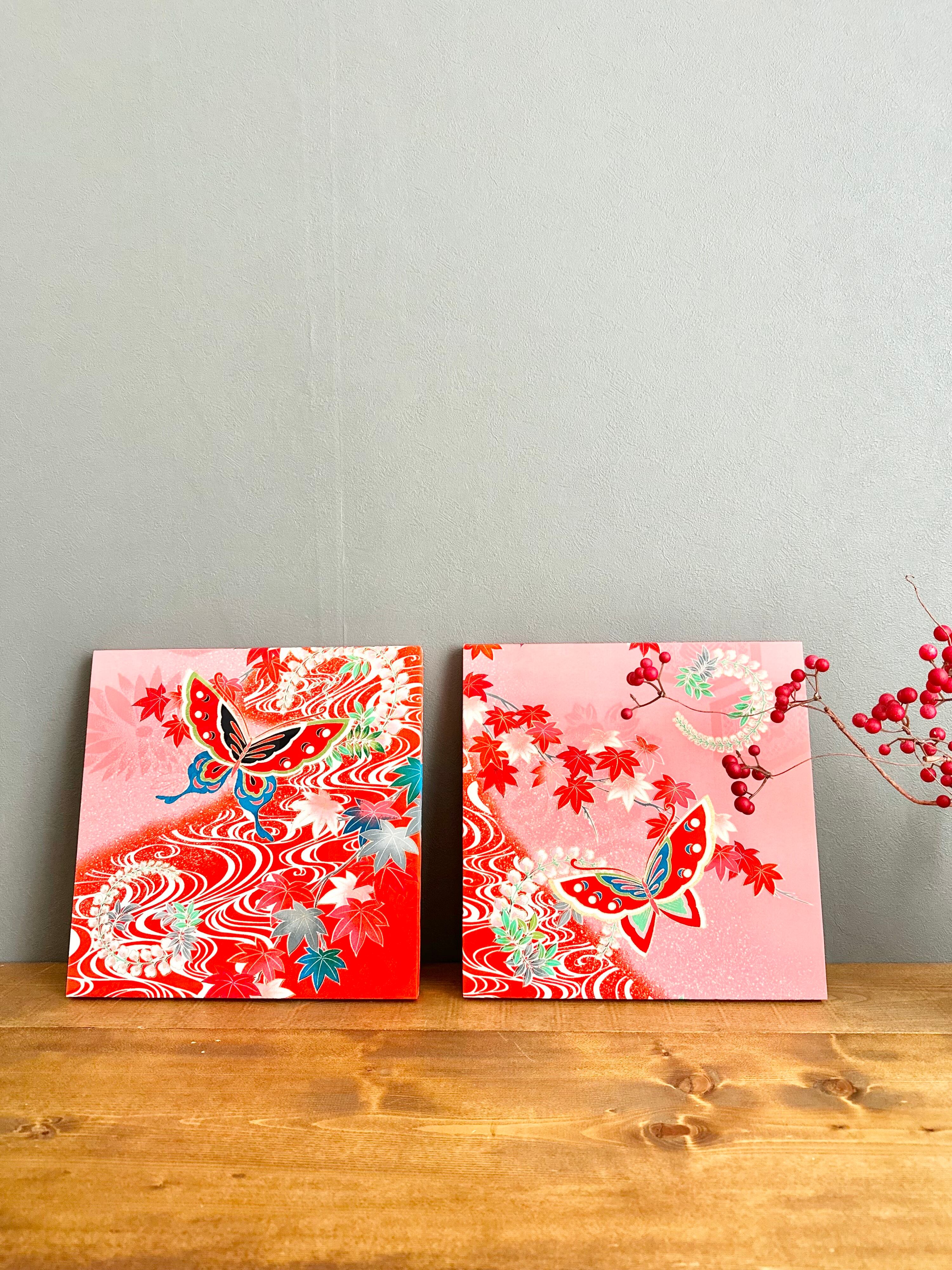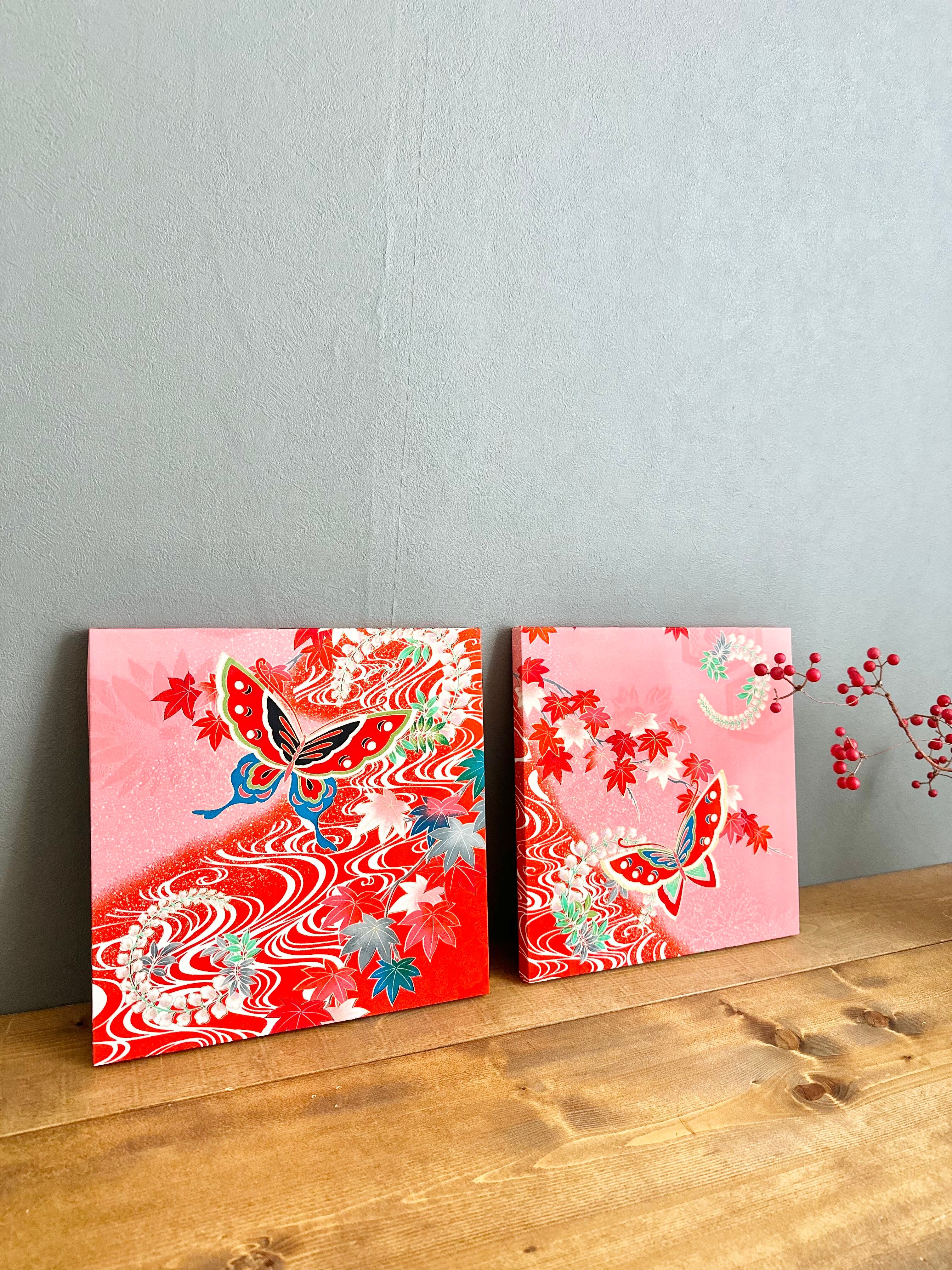 Kimono fabric panel 30×30cm 着物のファブリックパネル 紅葉に舞う蝶(2枚セット) Japanese Kimono Interior Japanese Style Art Panels Kimono panel Washitsu Japanese interior | koto1946