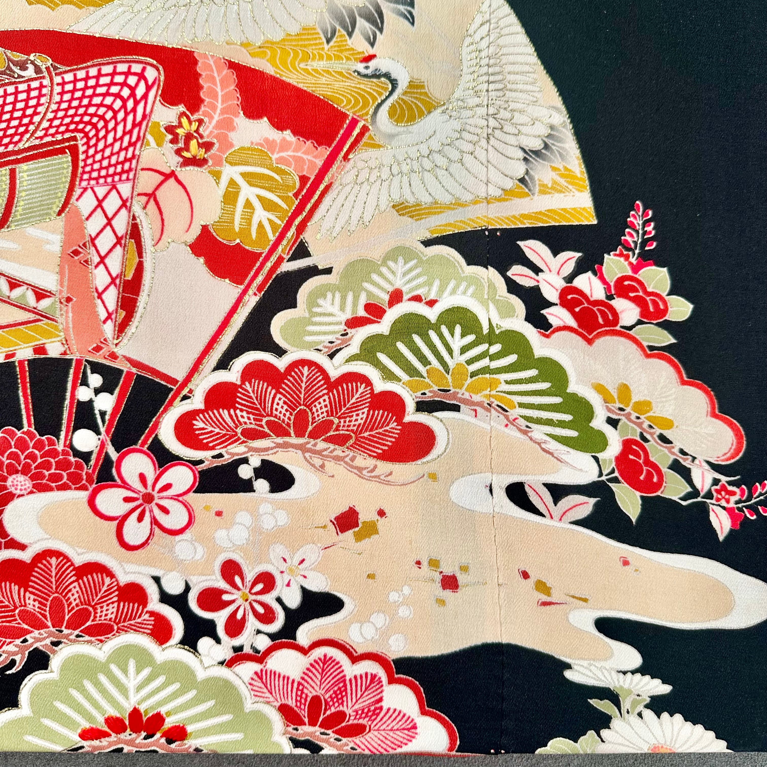 Antiques -漆黒- 50×50cm 大きな着物のファブリックパネル Japanese Kimono Interior Japanese Style Art Panels Kimono panel Washitsu Japanese interior | koto1946