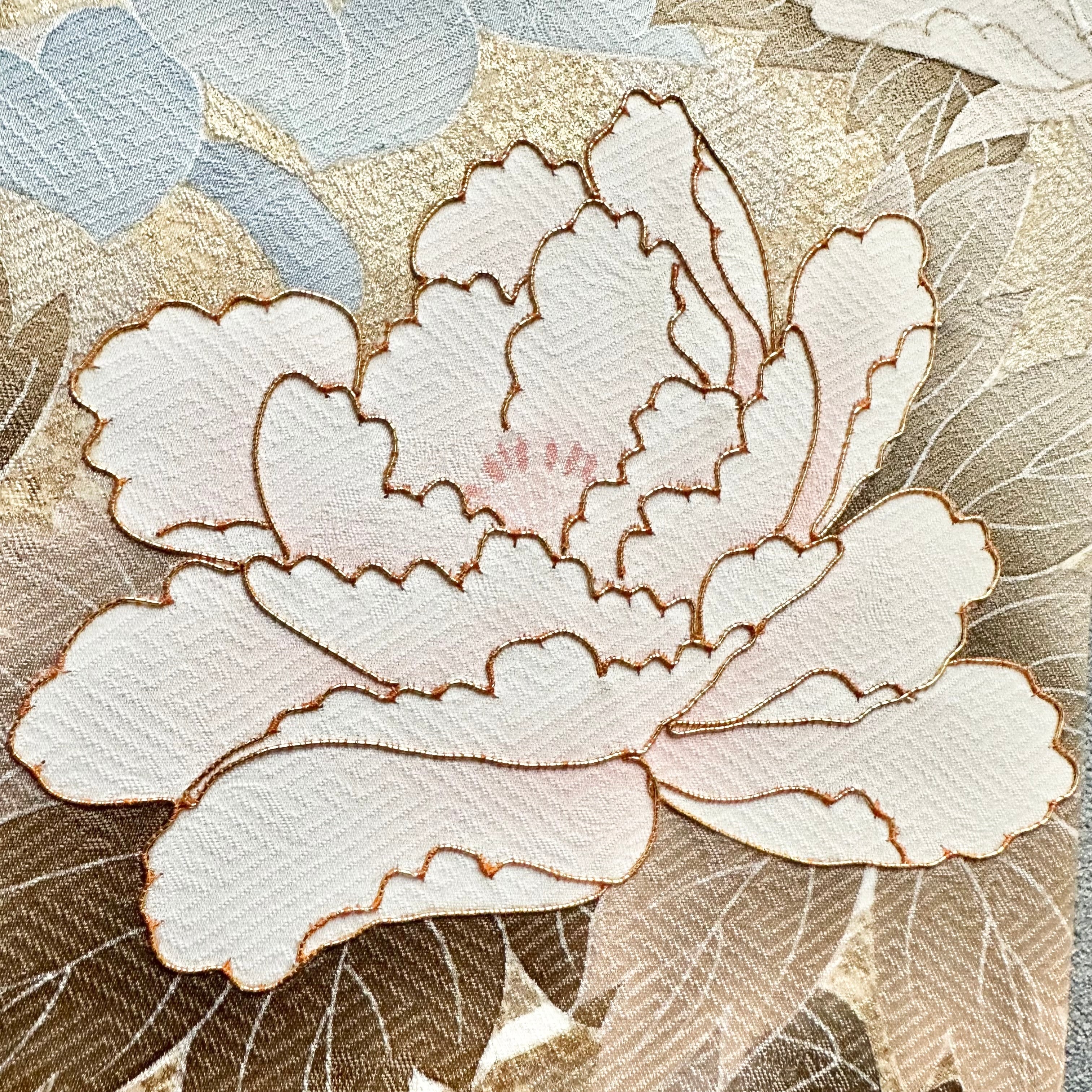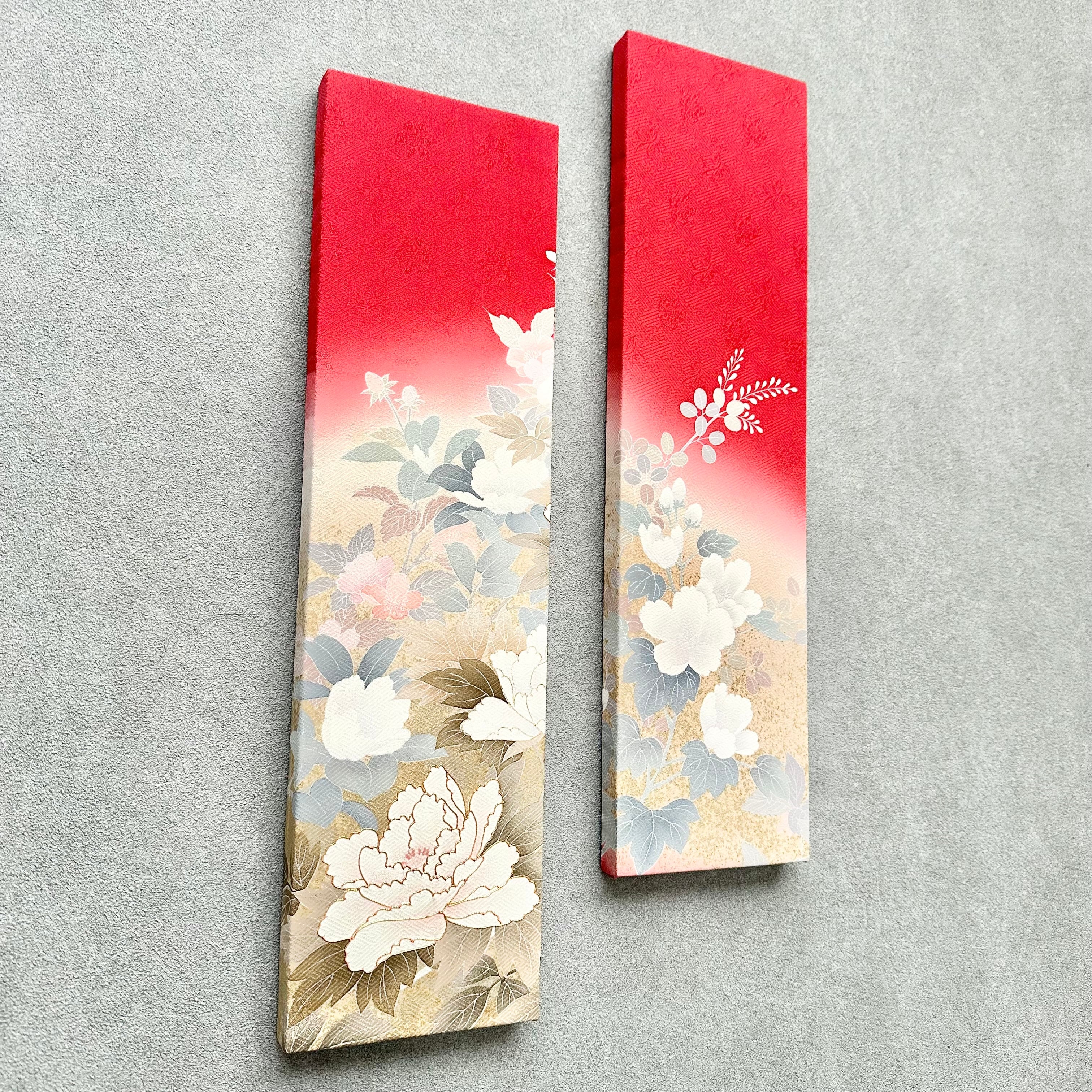 Kimono fabric panel 45×12cm 着物のファブリックパネル 秋の野に金色の牡丹(2枚セット) Japanese Kimono Interior Japanese Style Art Panels Kimono panel Washitsu Japanese interior | koto1946