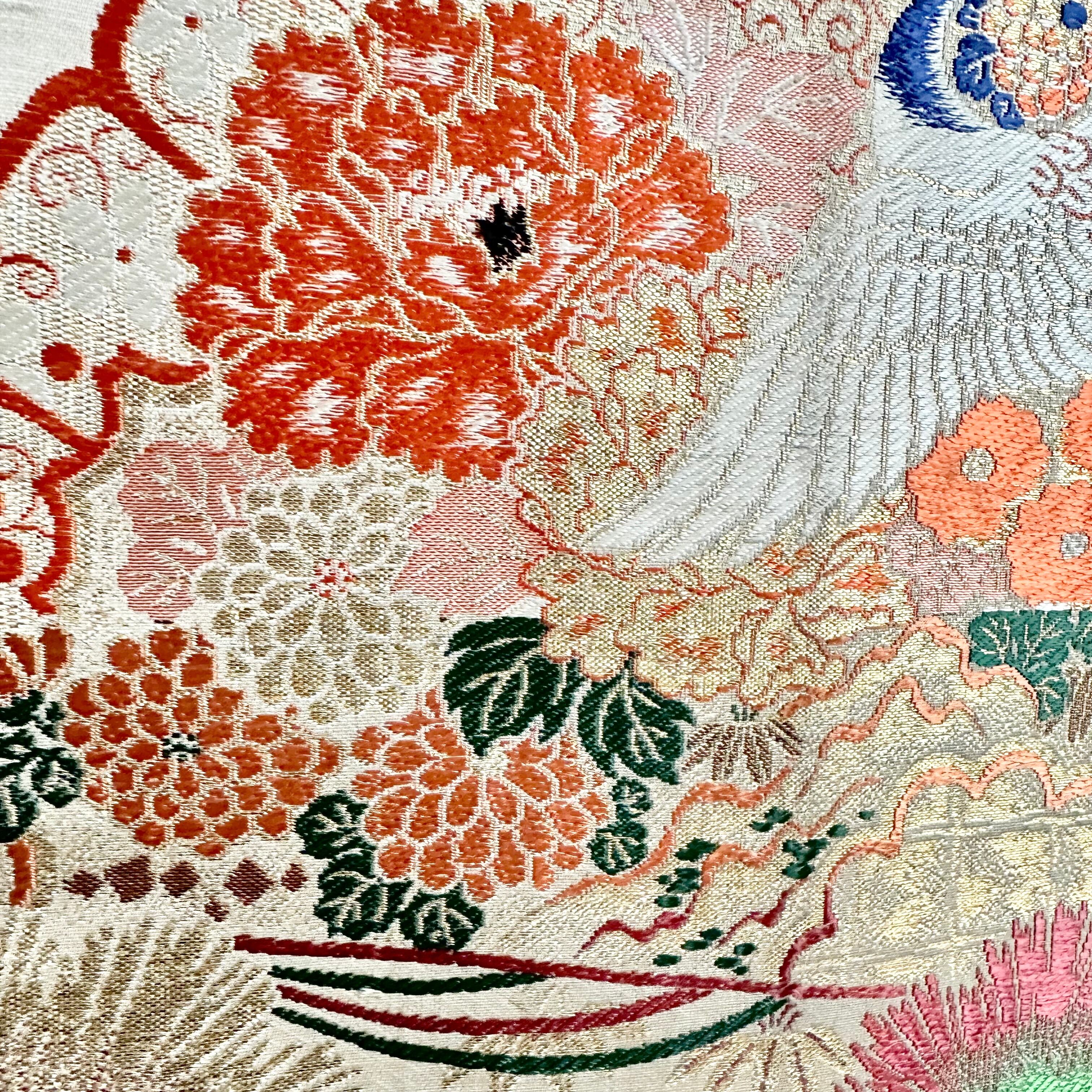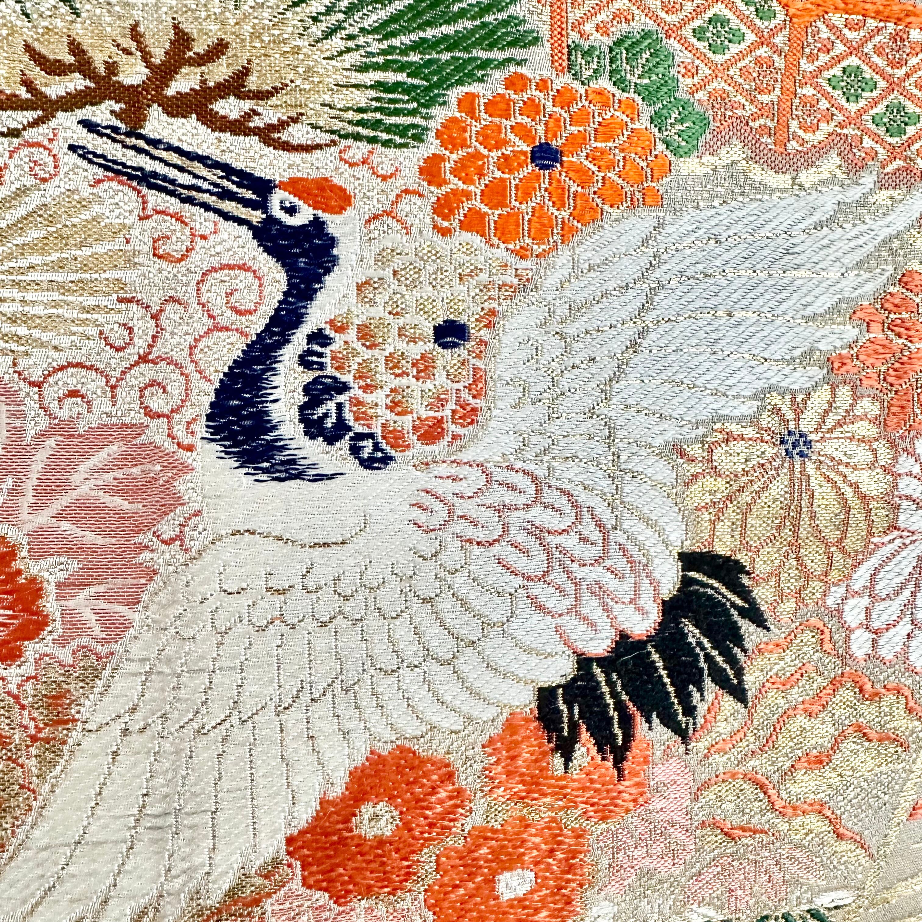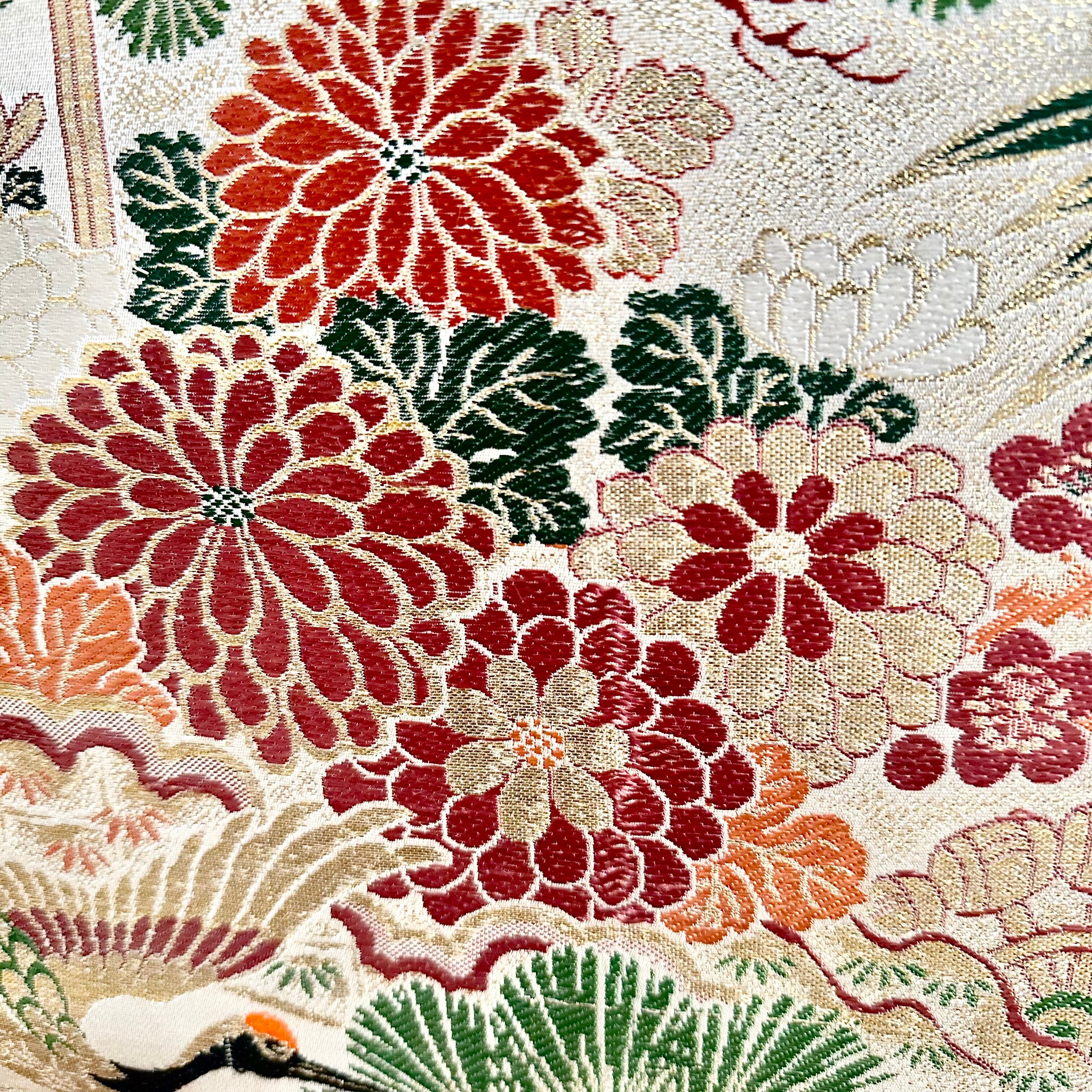 Kimono tapestry 帯のタペストリー ヴィンテージ 花に舞う鶴と鳳凰 Japanese Kimono Interior Art Panel Kakejiku Art Wall Art Kimono Panel | koto1946