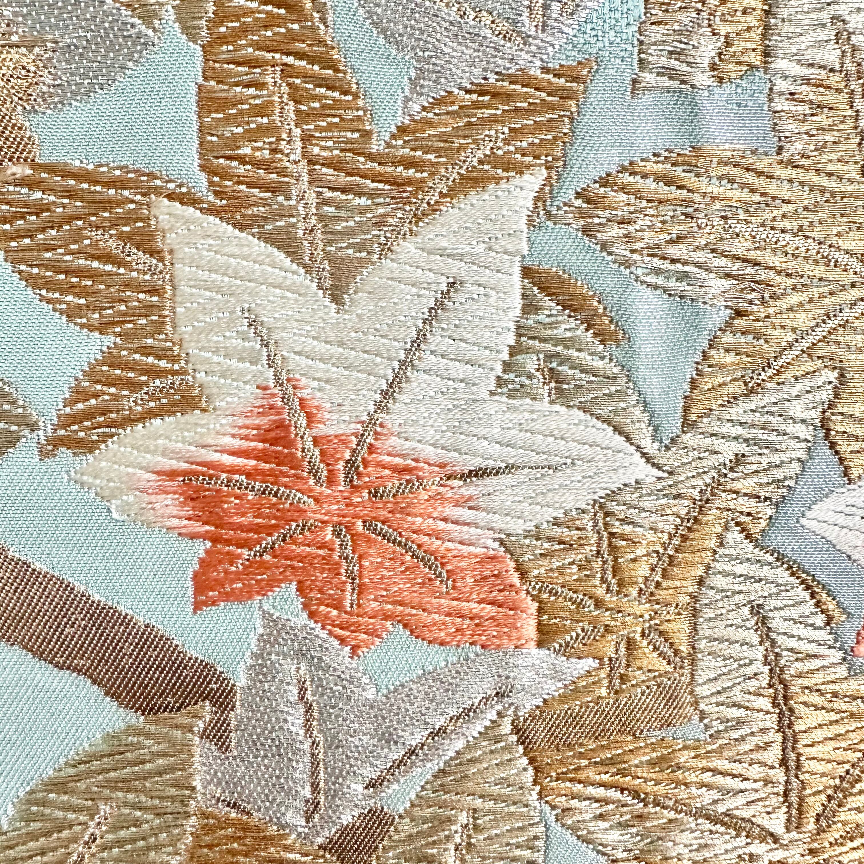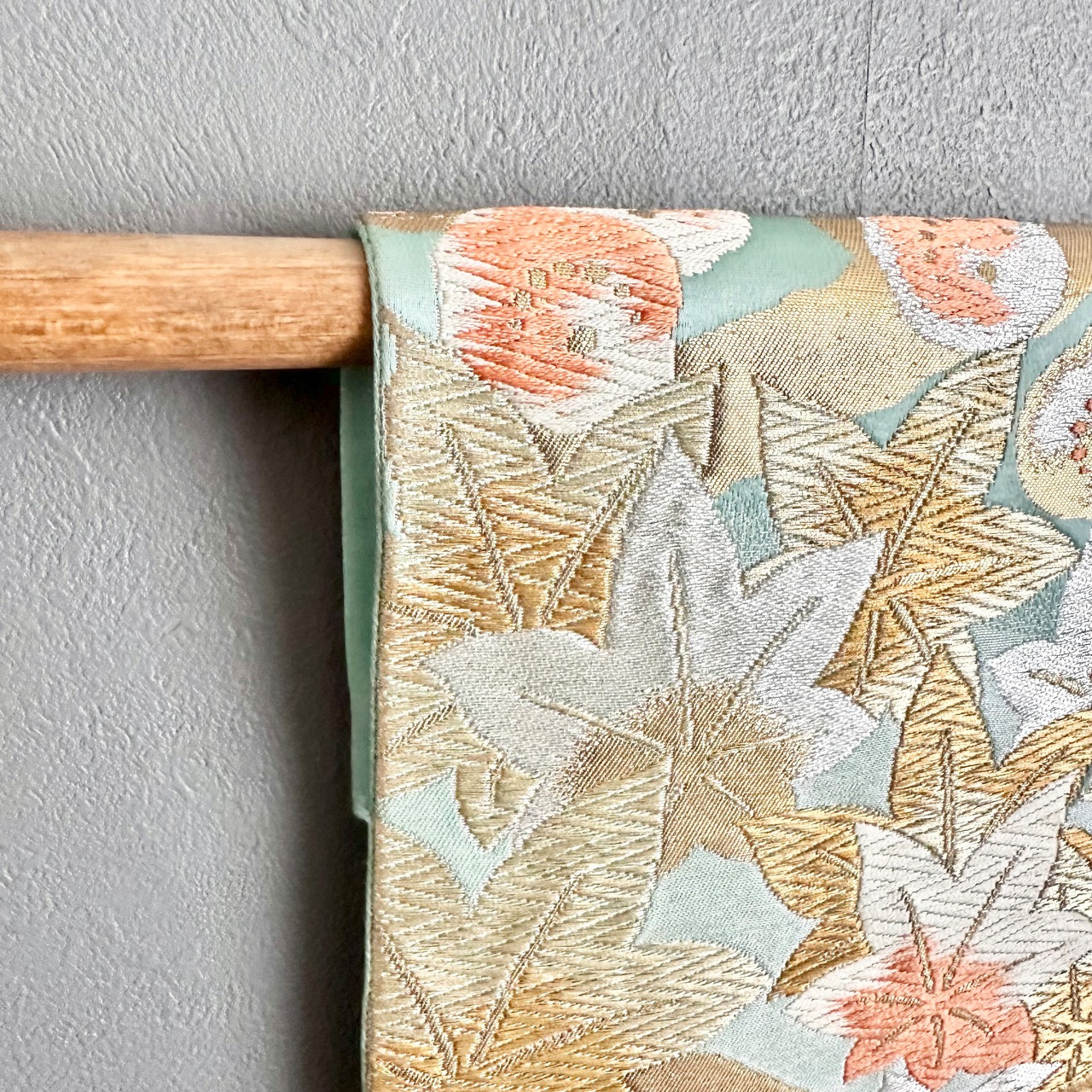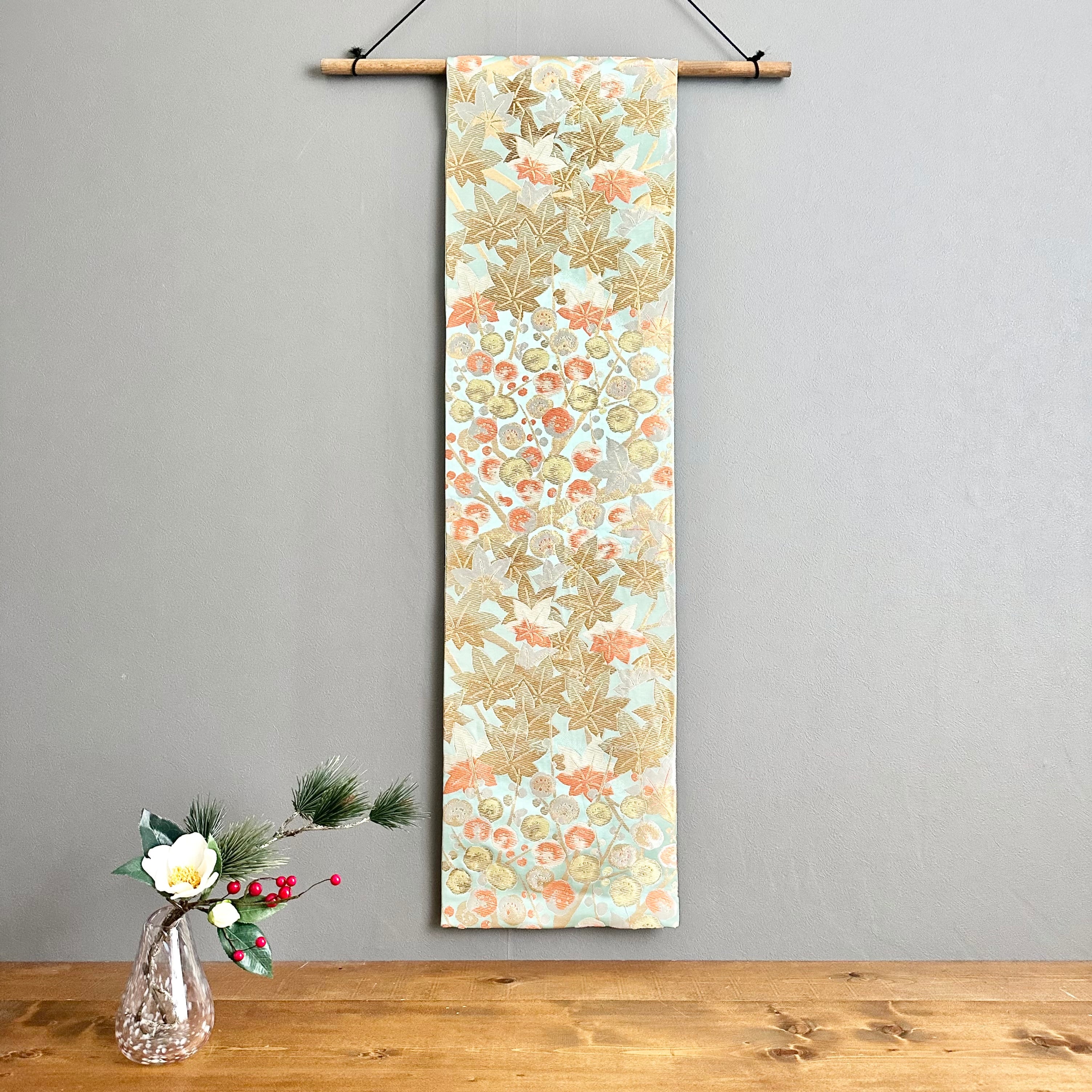 Kimono tapestry 帯のタペストリー 水色に咲く梅と紅葉 Japanese Kimono Interior Art Panel Kakejiku Art Wall Art Kimono Panel | koto1946