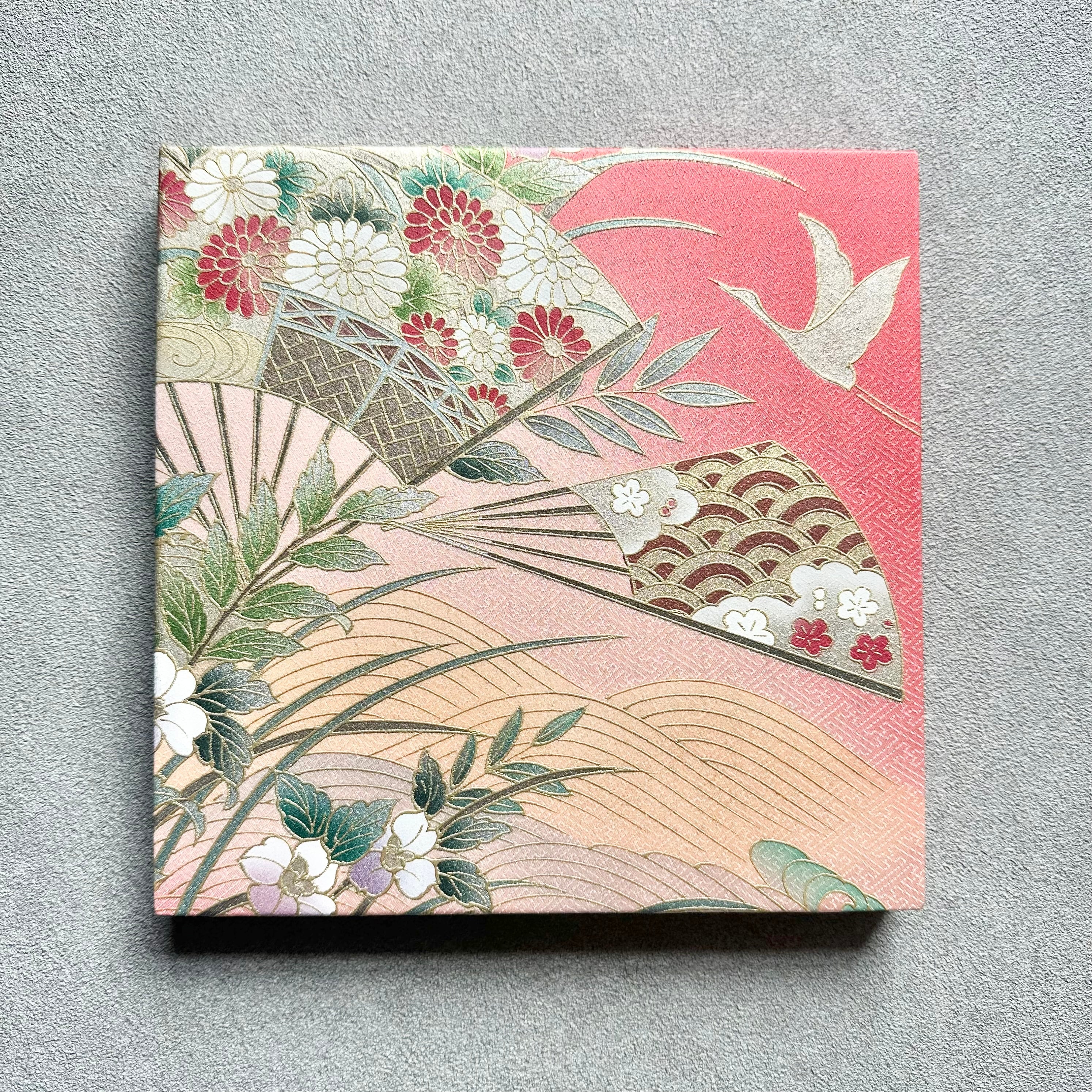 Kimono fabric panel 22×22cm 着物のファブリックパネル 菊花の扇 Japanese Kimono Interior Japanese Style Art Panels Kimono panel Washitsu Japanese interior | koto1946
