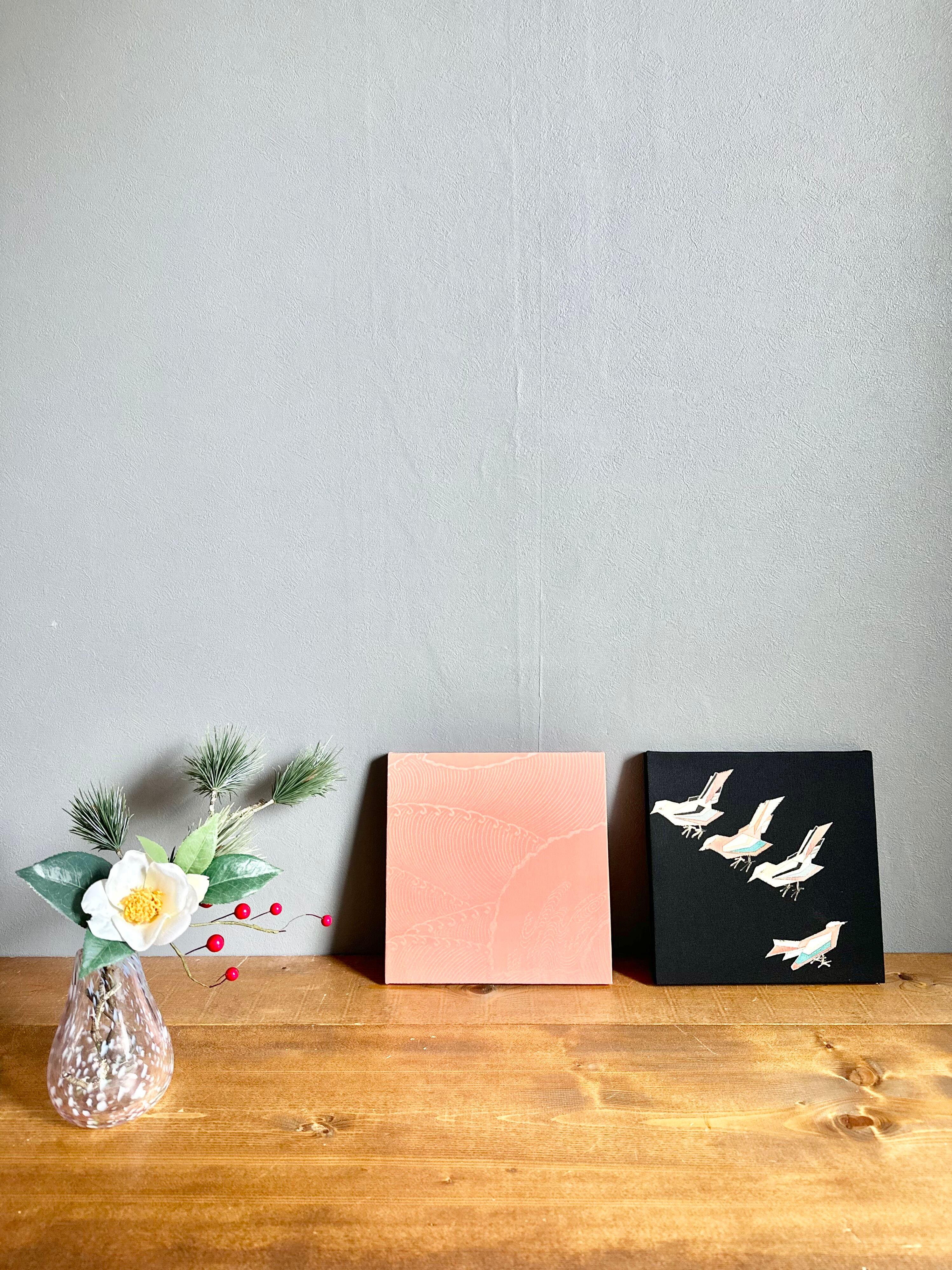 Kimono fabric panel 22×22cm 着物のファブリックパネル 桜色と遊ぶ小鳥(2枚セット) Japanese Kimono Interior Japanese Style Art Panels Kimono panel Washitsu Japanese interior | koto1946