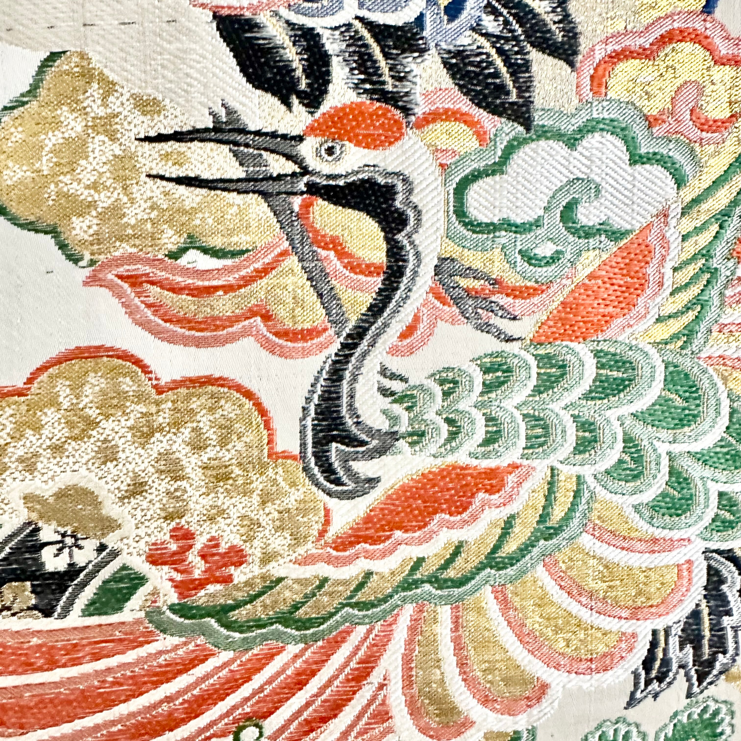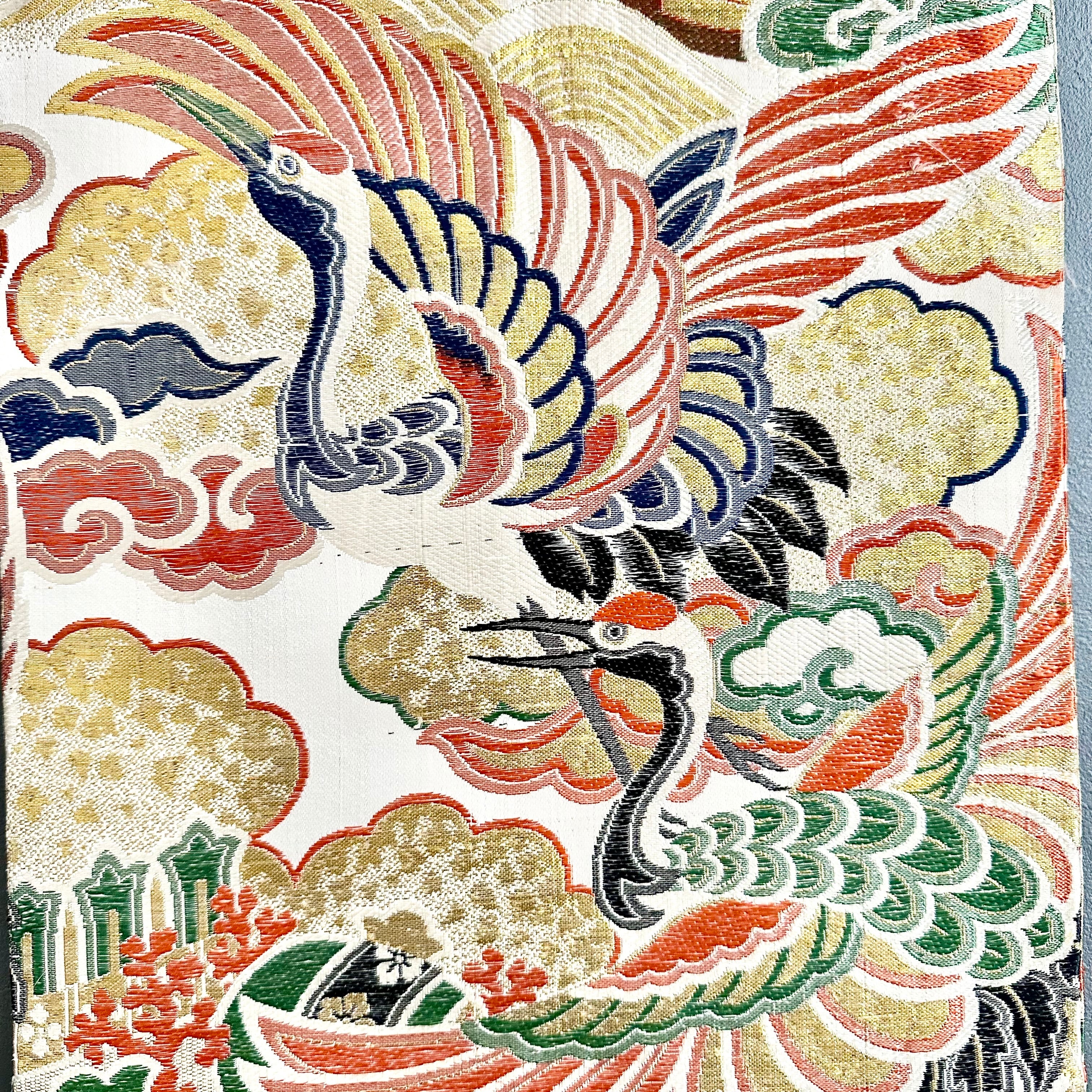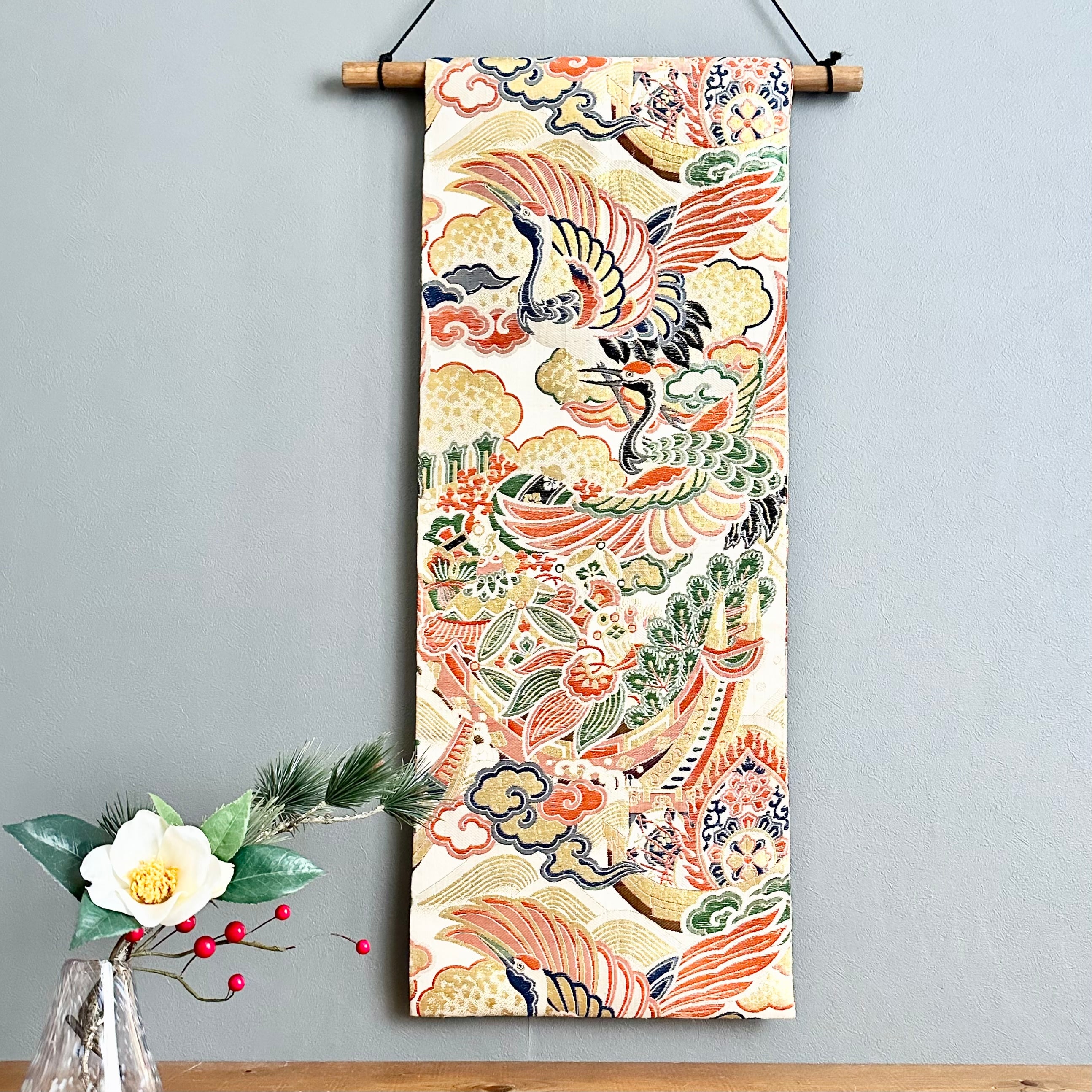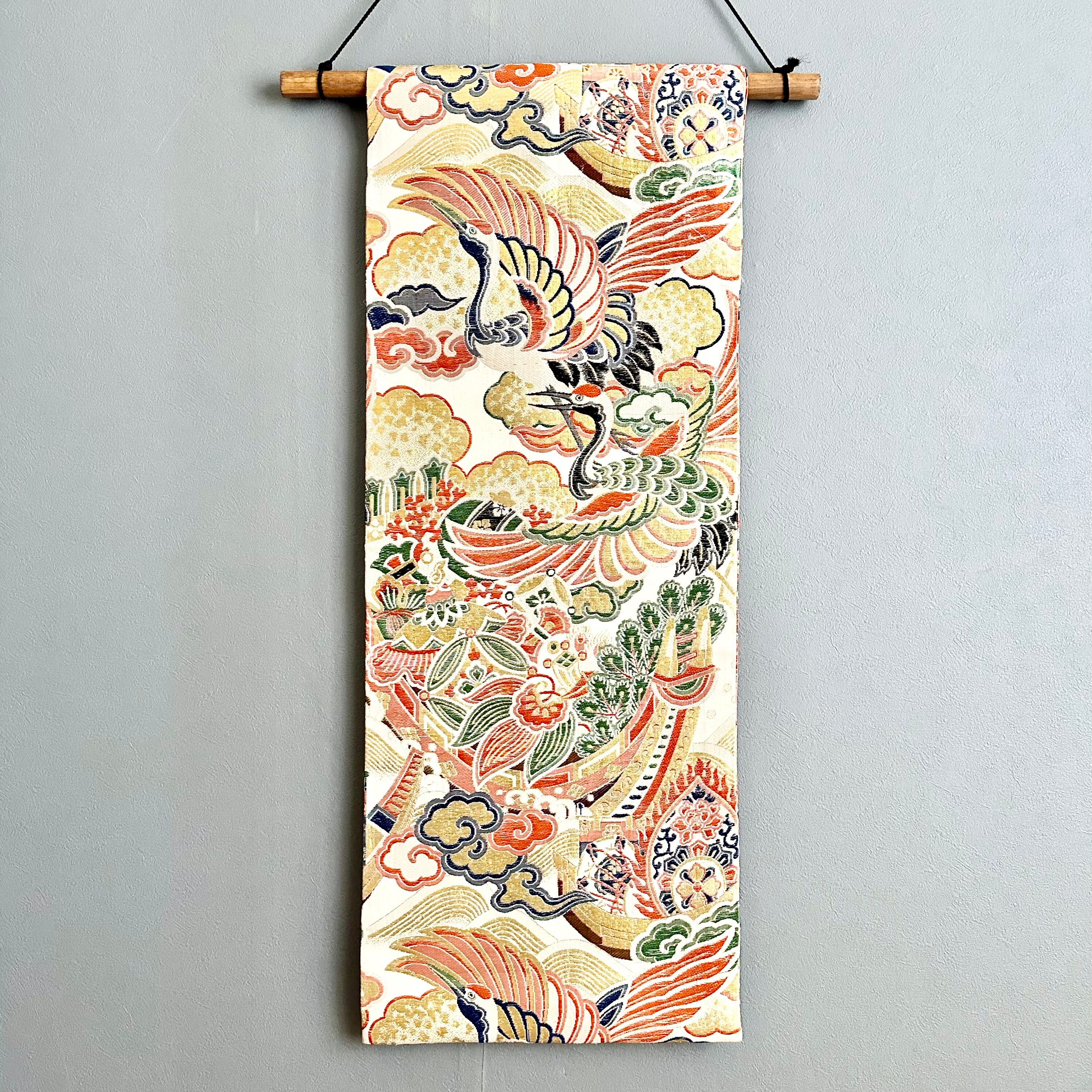 Kimono tapestry 帯のタペストリー ヴィンテージ 宝船と鶴 Japanese Kimono Interior Art Panel Kakejiku Art Wall Art Kimono Panel | koto1946