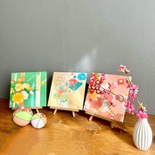 牡丹や菊花、橘など様々な花々のモチーフを集めた、春が来たような華やかなファブリックパネルセットです。