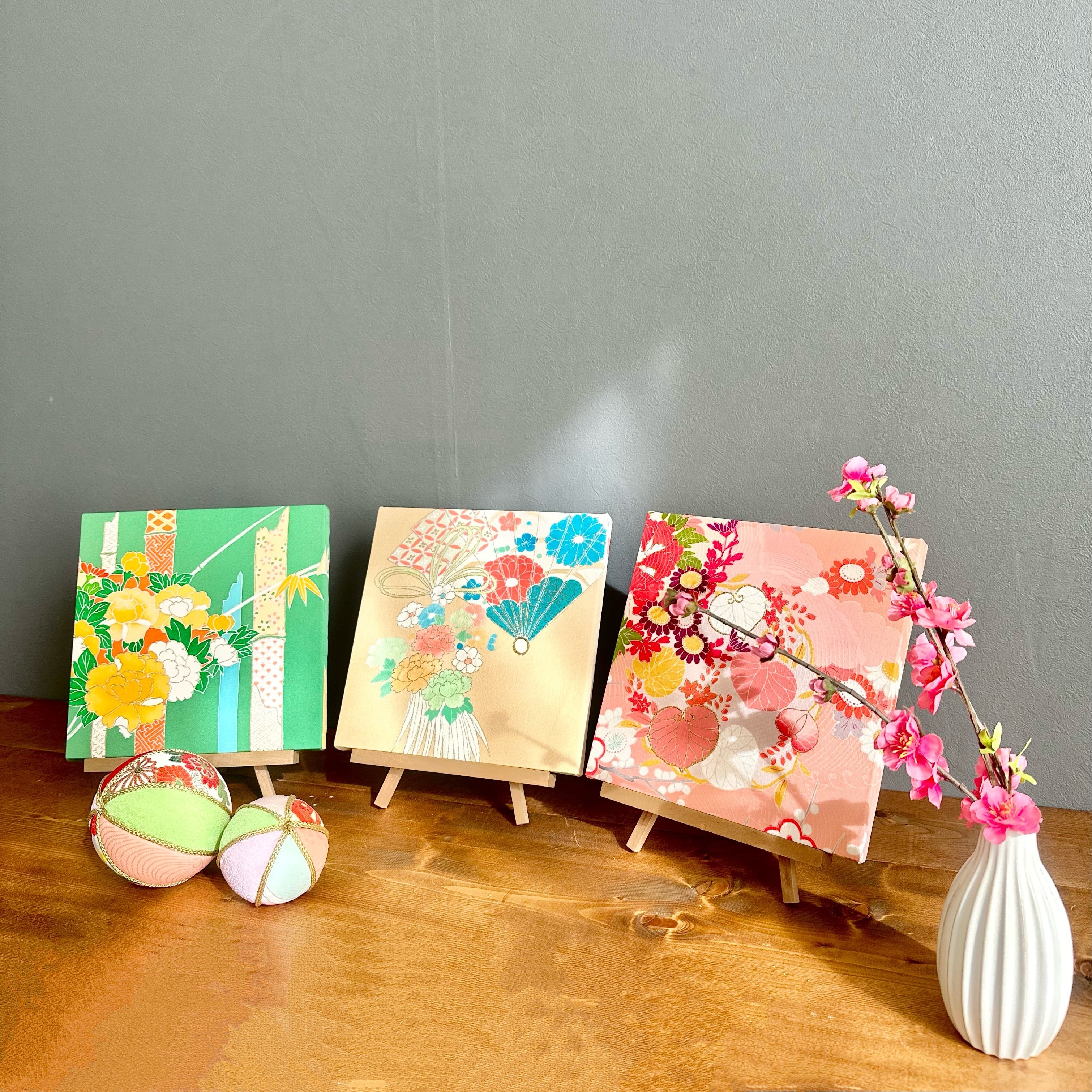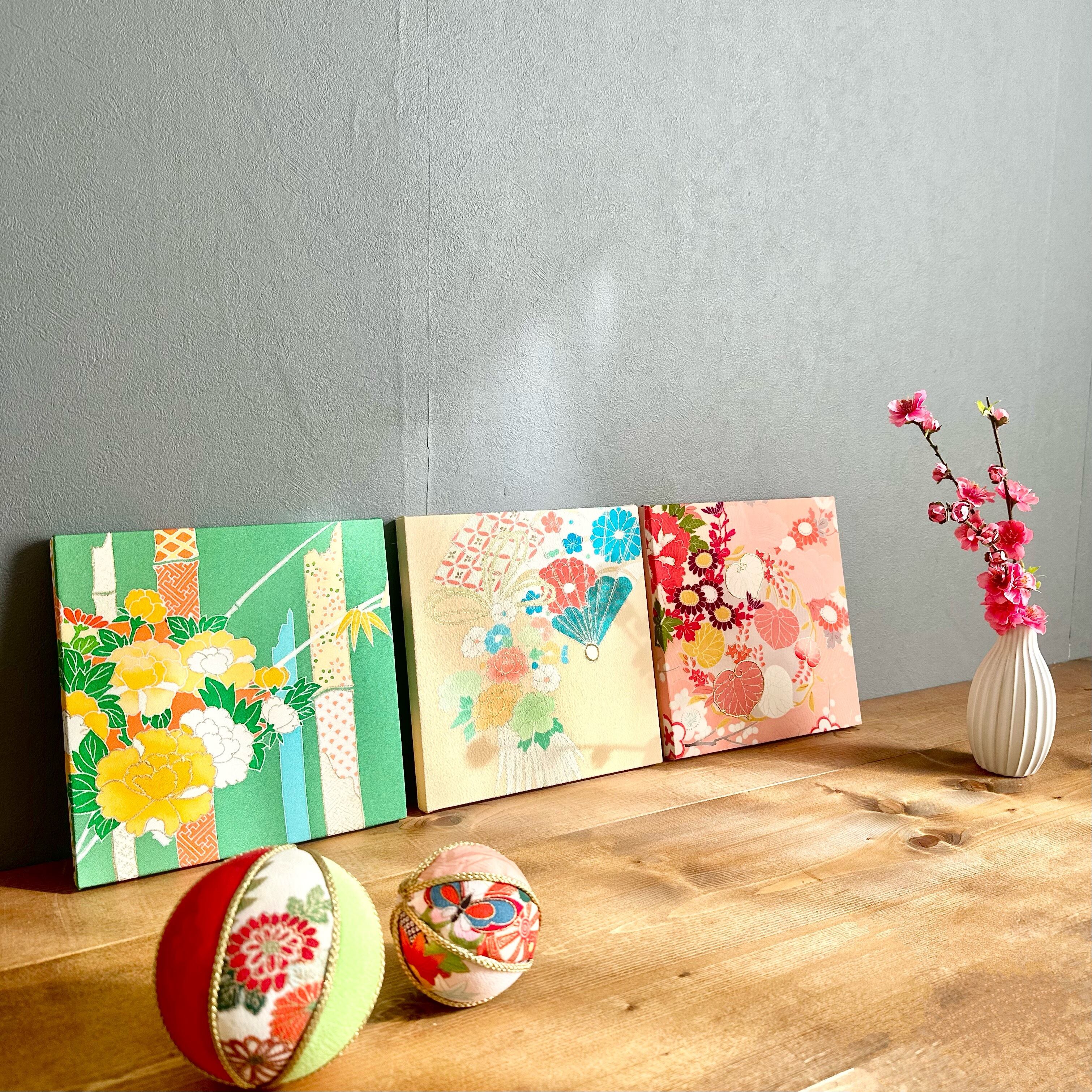 Kimono fabric panel 22×22cm 帯のファブリックパネル カラフルヴィンテージ(3枚セット) Japanese Kimono Interior Japanese Style Art Panels Kimono panel Washitsu Japanese interior
