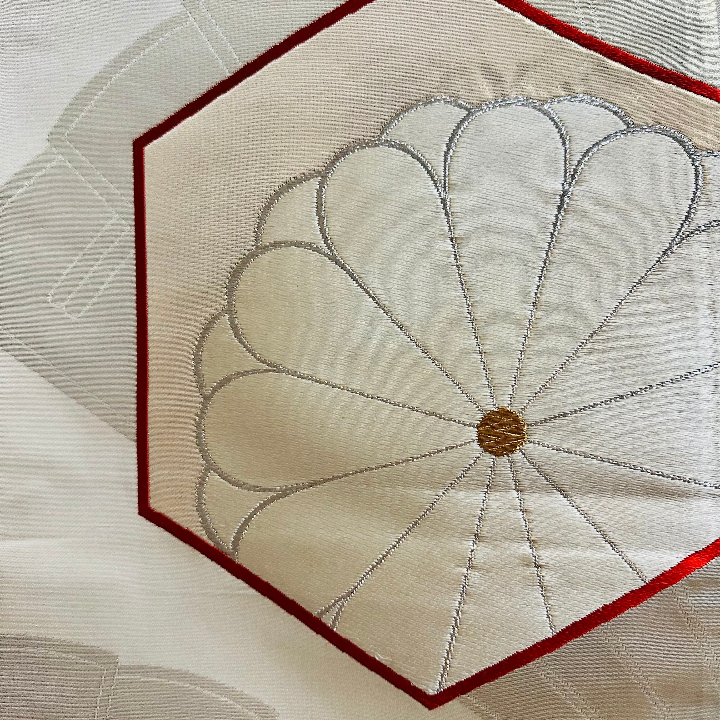 Kimono Table Runner 帯のテーブルランナー 赤の亀甲に白梅と菊花 撥水加工 Japanese Kimono Interior Art Panel Kakejiku Art Wall Art Kimono Panel | koto1946