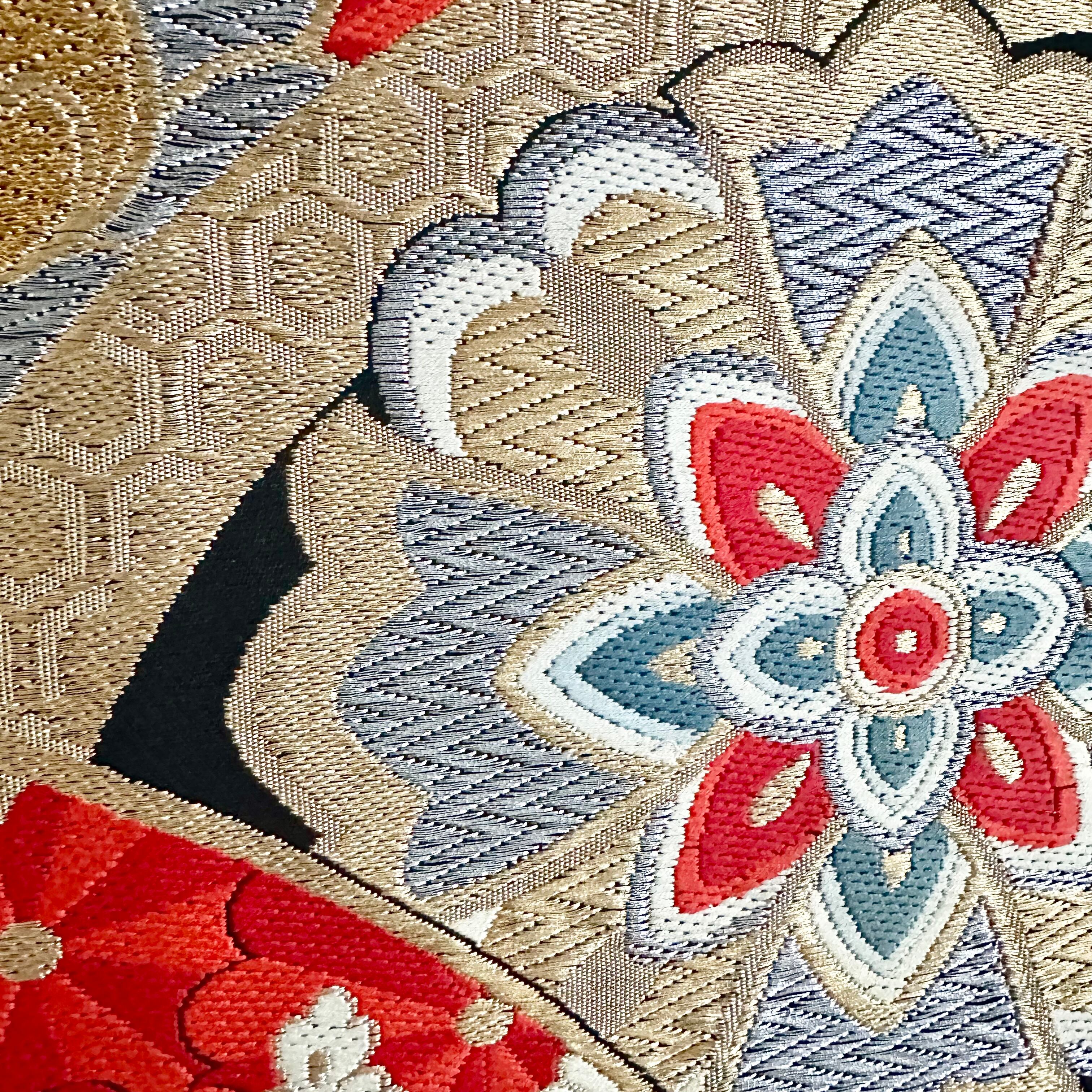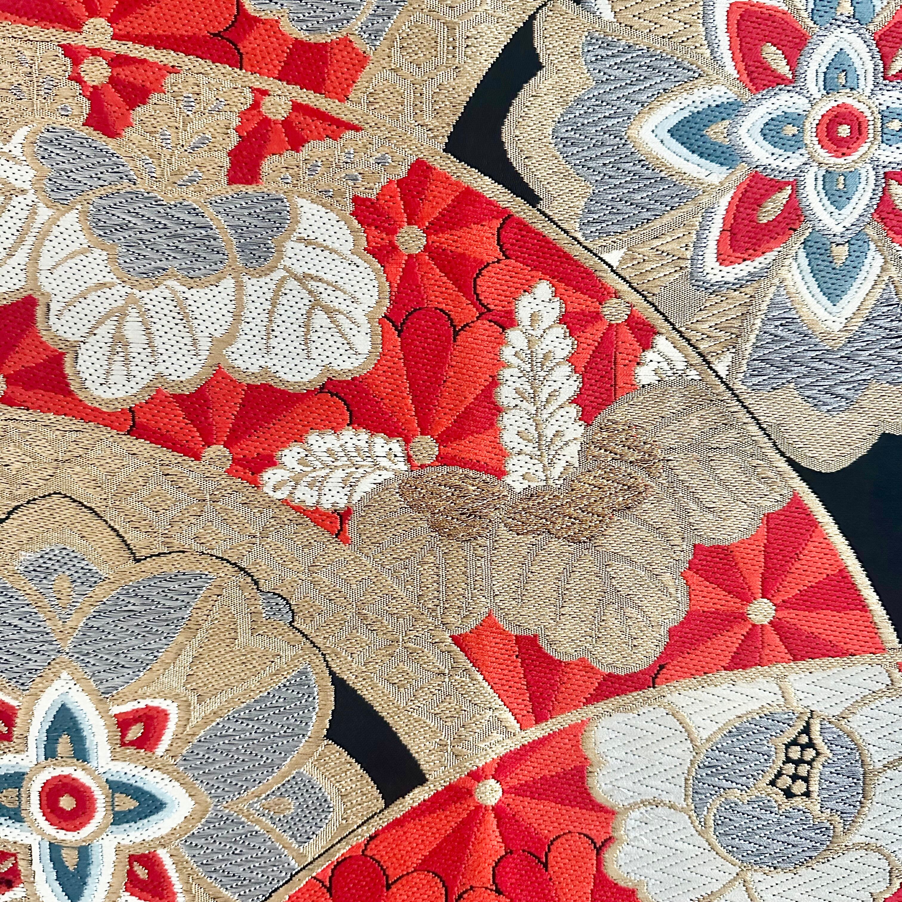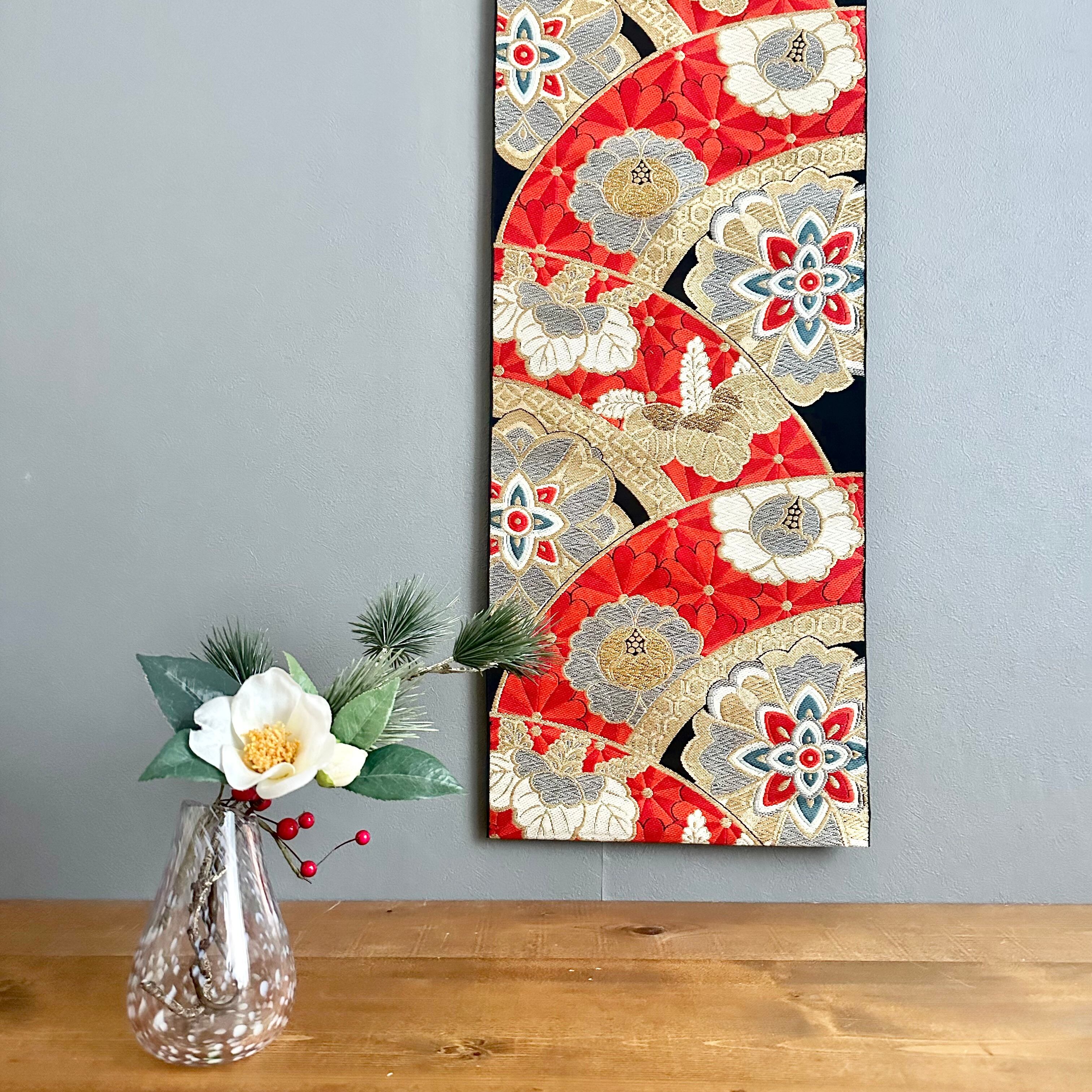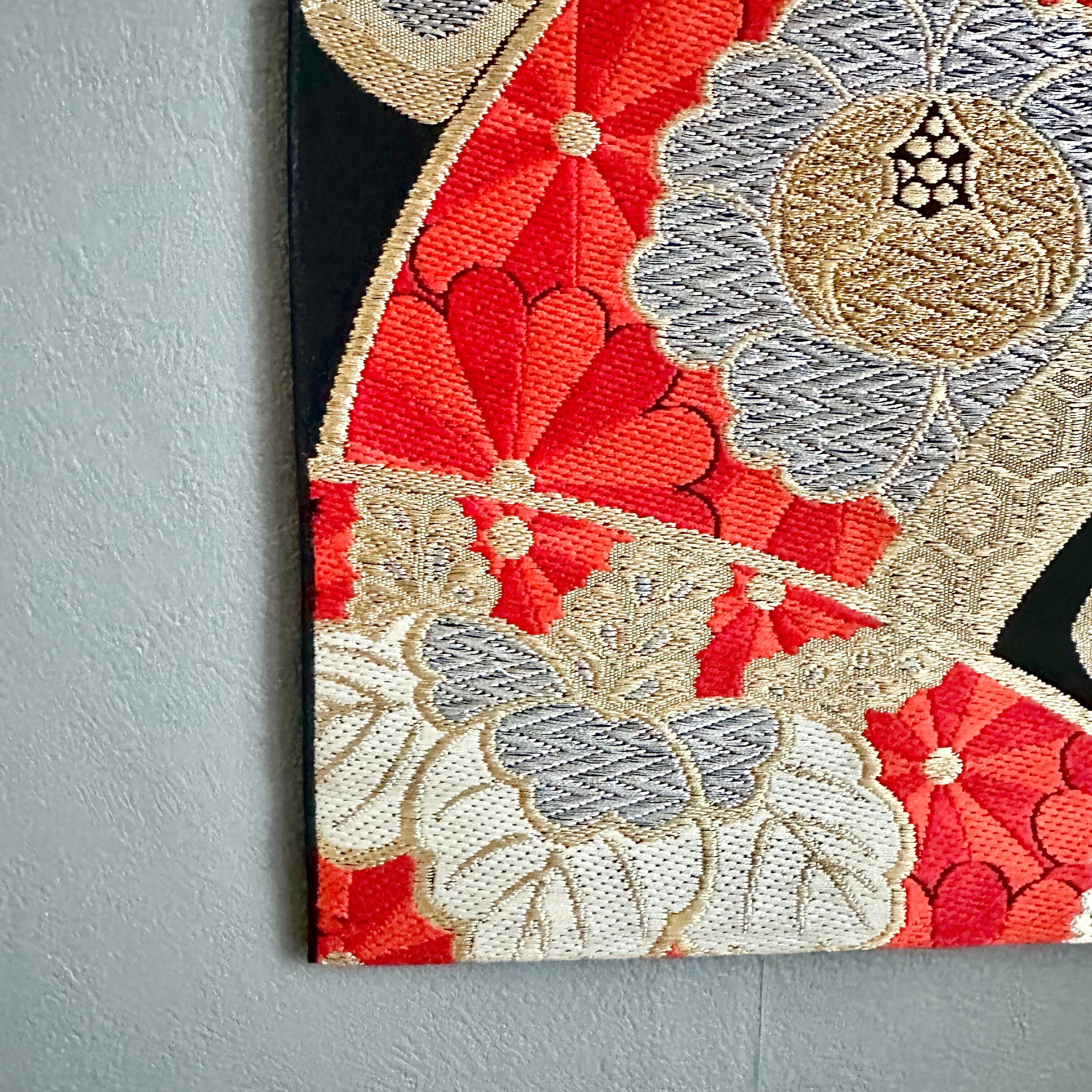 Kimono tapestry 帯のタペストリー 菊の扇の青海波 Japanese Kimono Interior Art Panel Kakejiku Art Wall Art Kimono Panel | koto1946