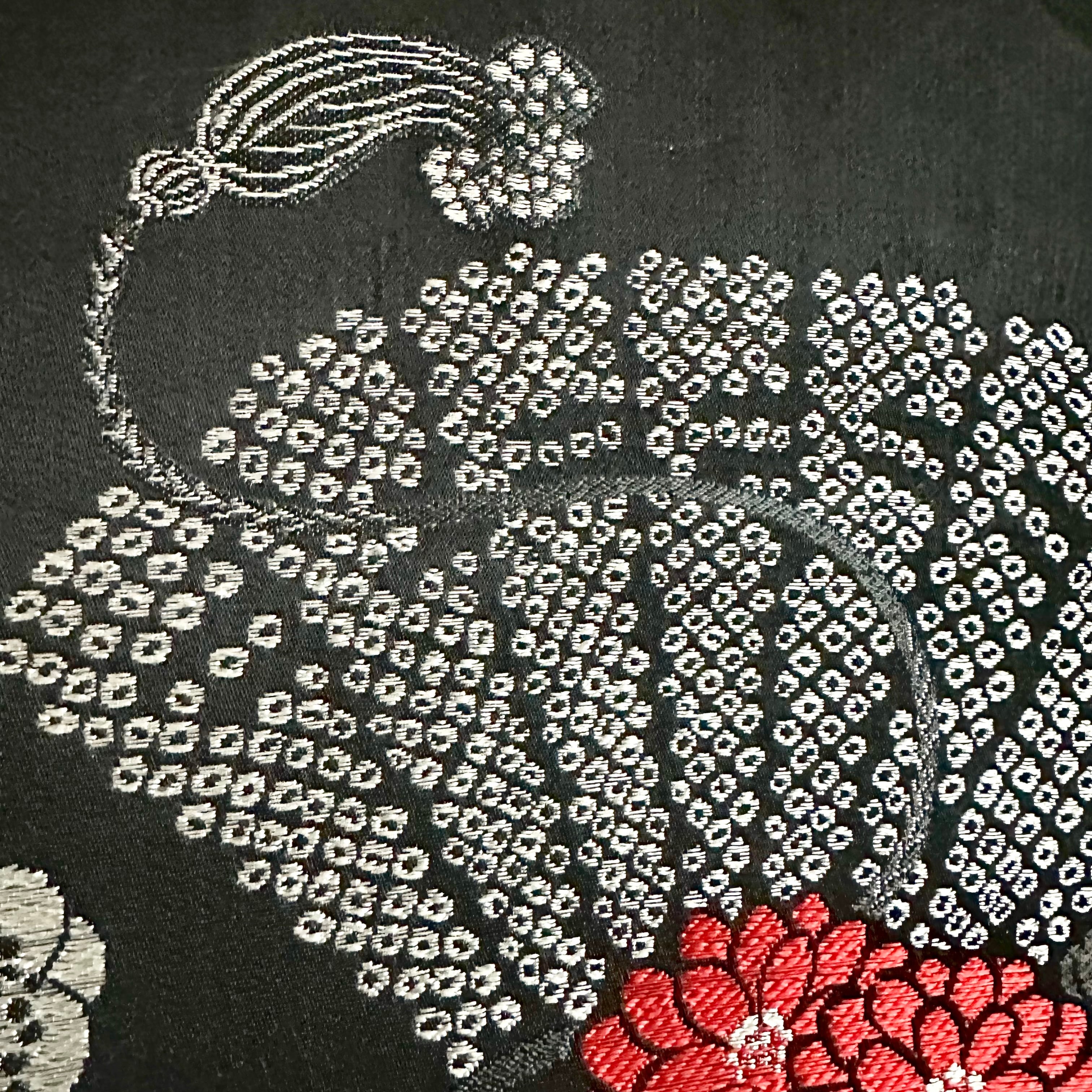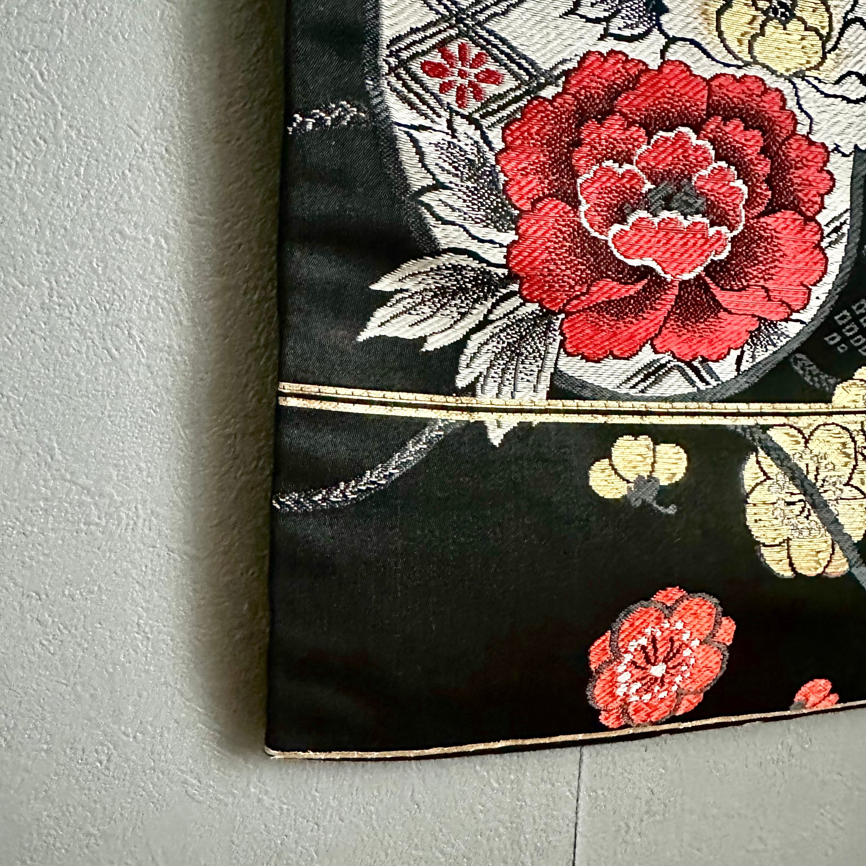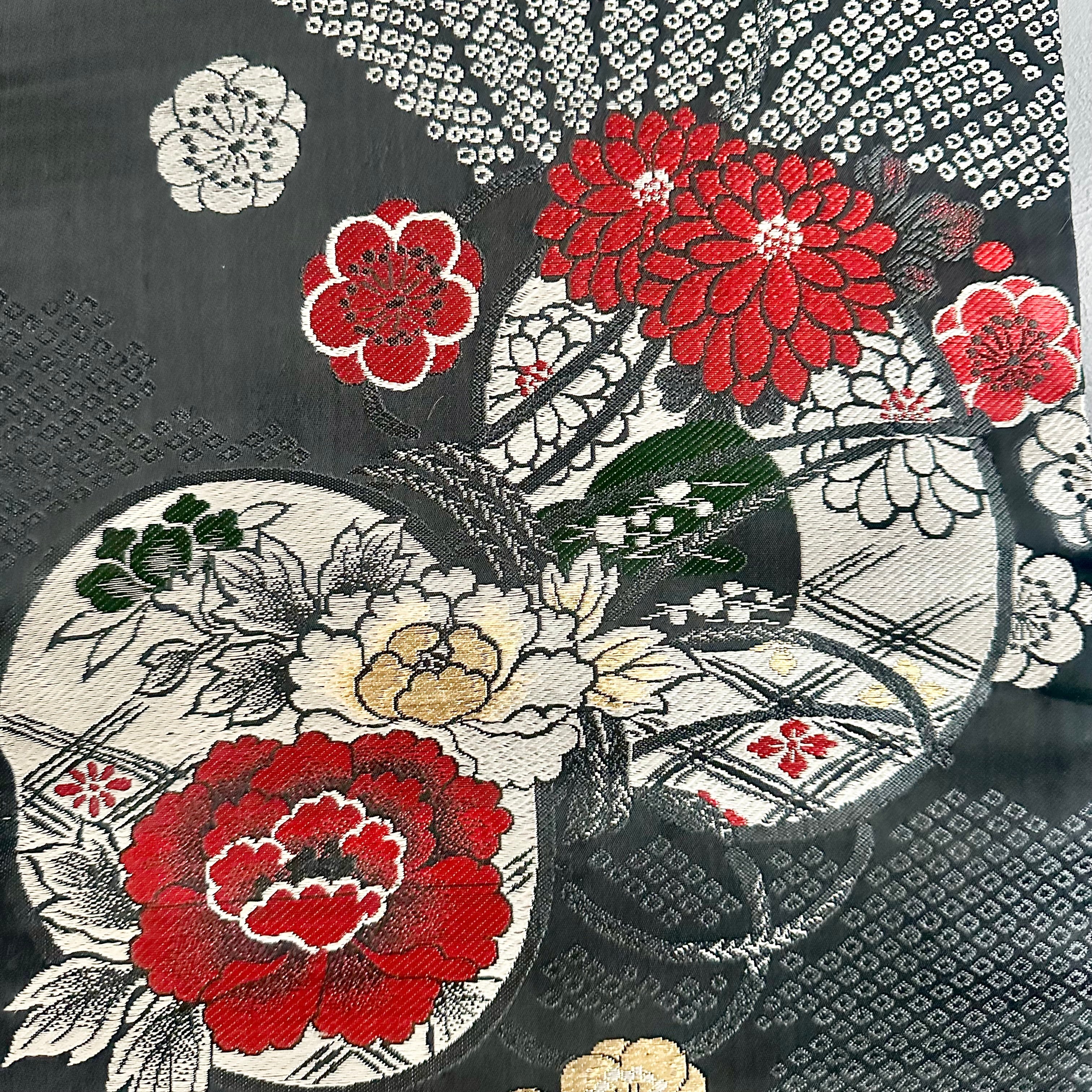 Kimono tapestry 帯のタペストリー ヴィンテージ 花々の咲く鼓 Japanese Kimono Interior Art Panel Kakejiku Art Wall Art Kimono Panel | koto1946