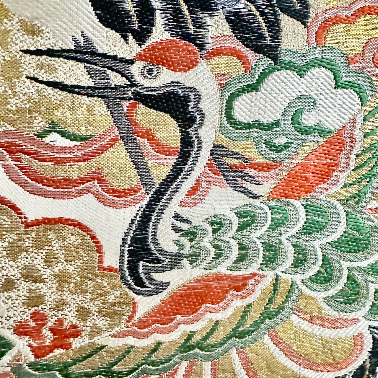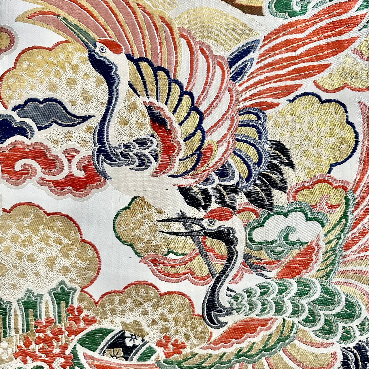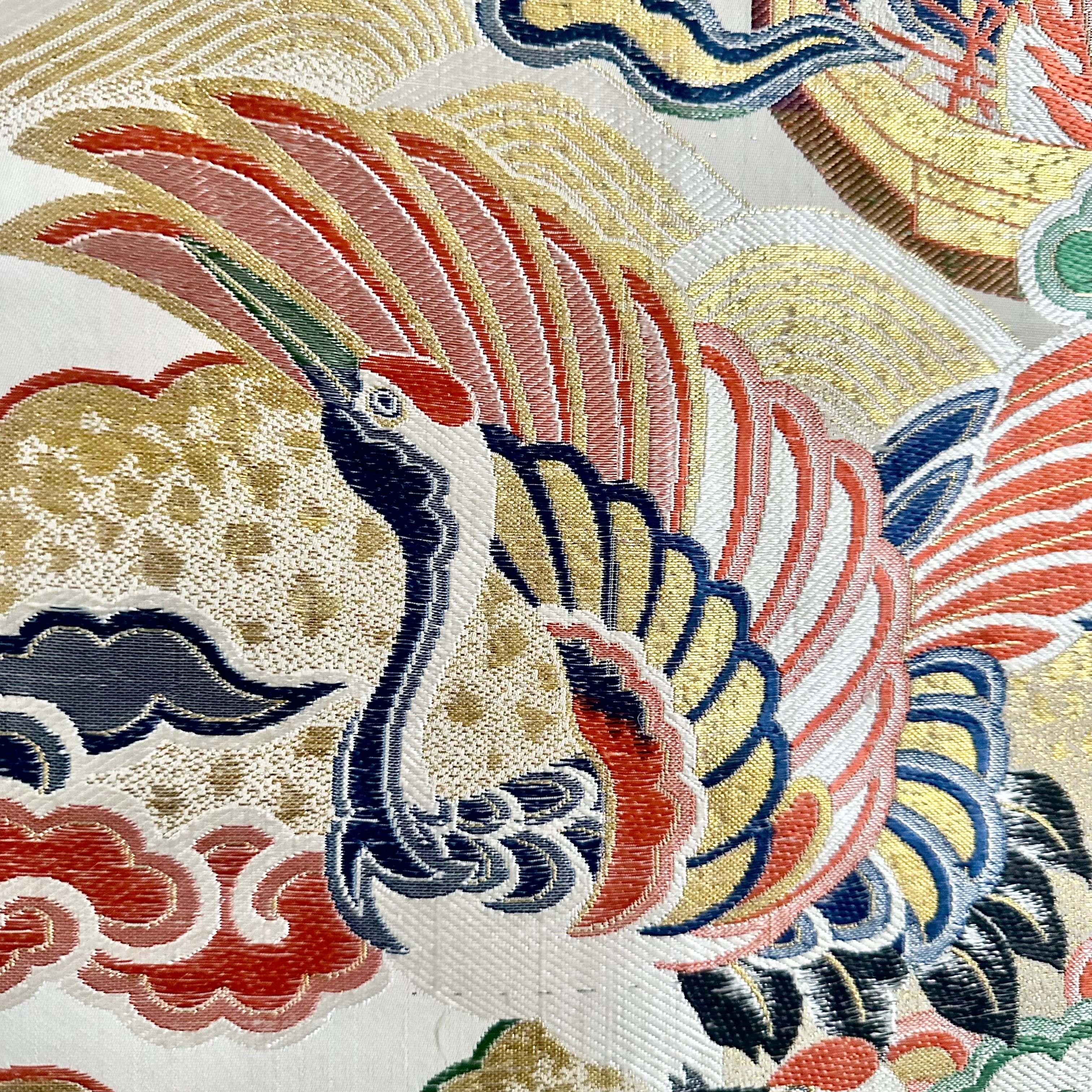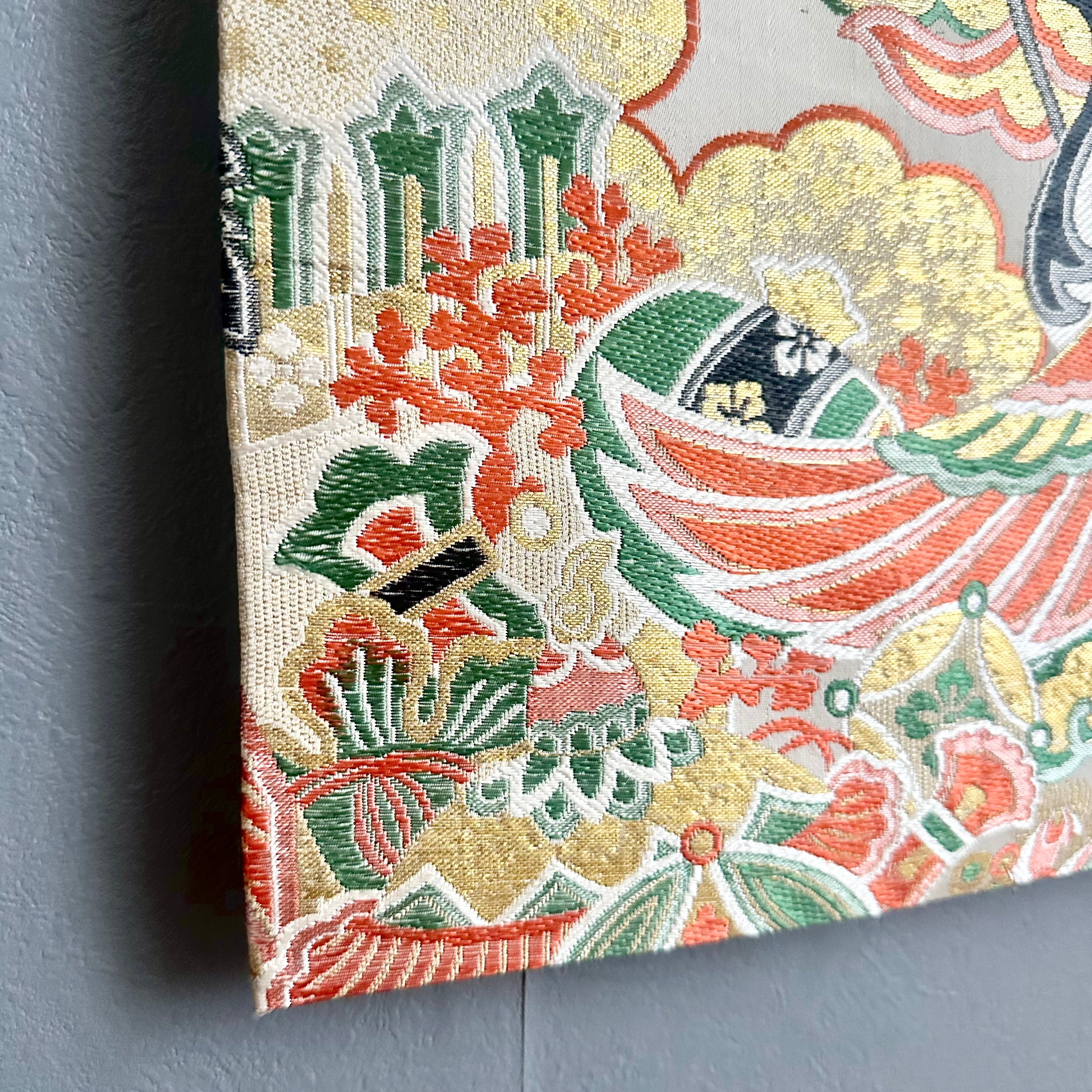 Kimono tapestry 帯のタペストリー ヴィンテージ 鶴と宝船 Japanese Kimono Interior Art Panel Kakejiku Art Wall Art Kimono Panel | koto1946