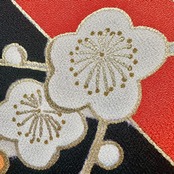 漆黒と朱色の美しいヴィンテージ黒留袖に咲く梅。