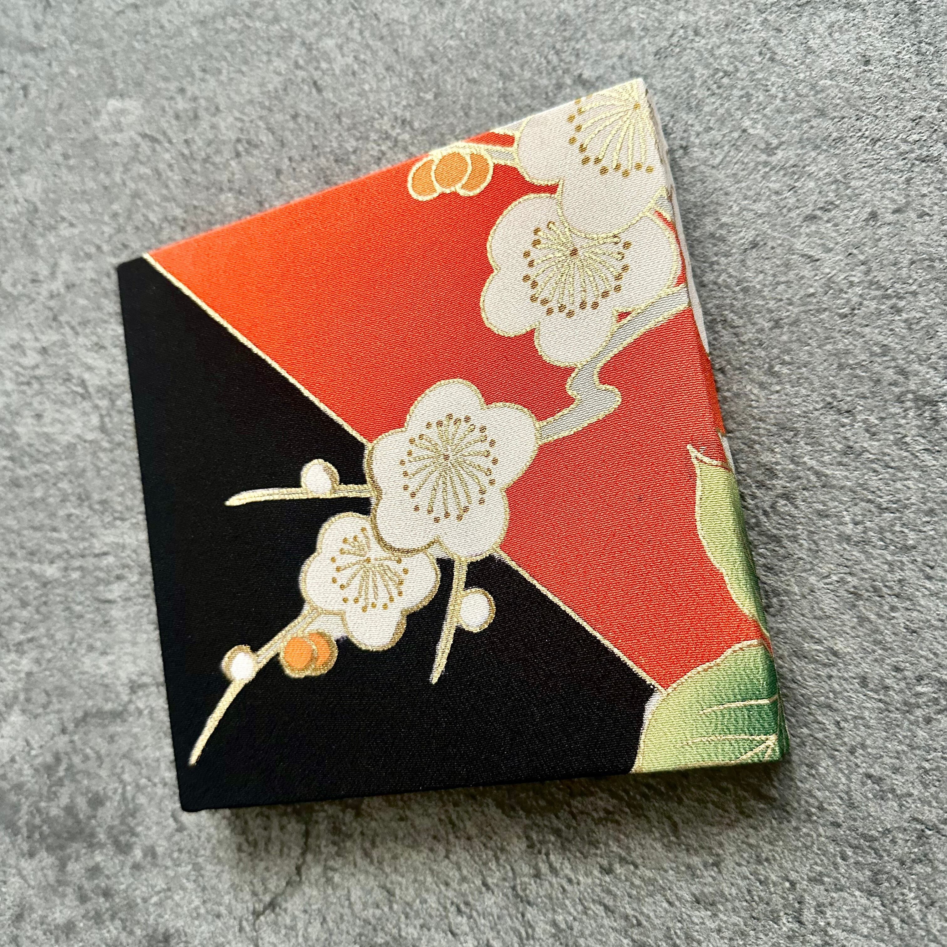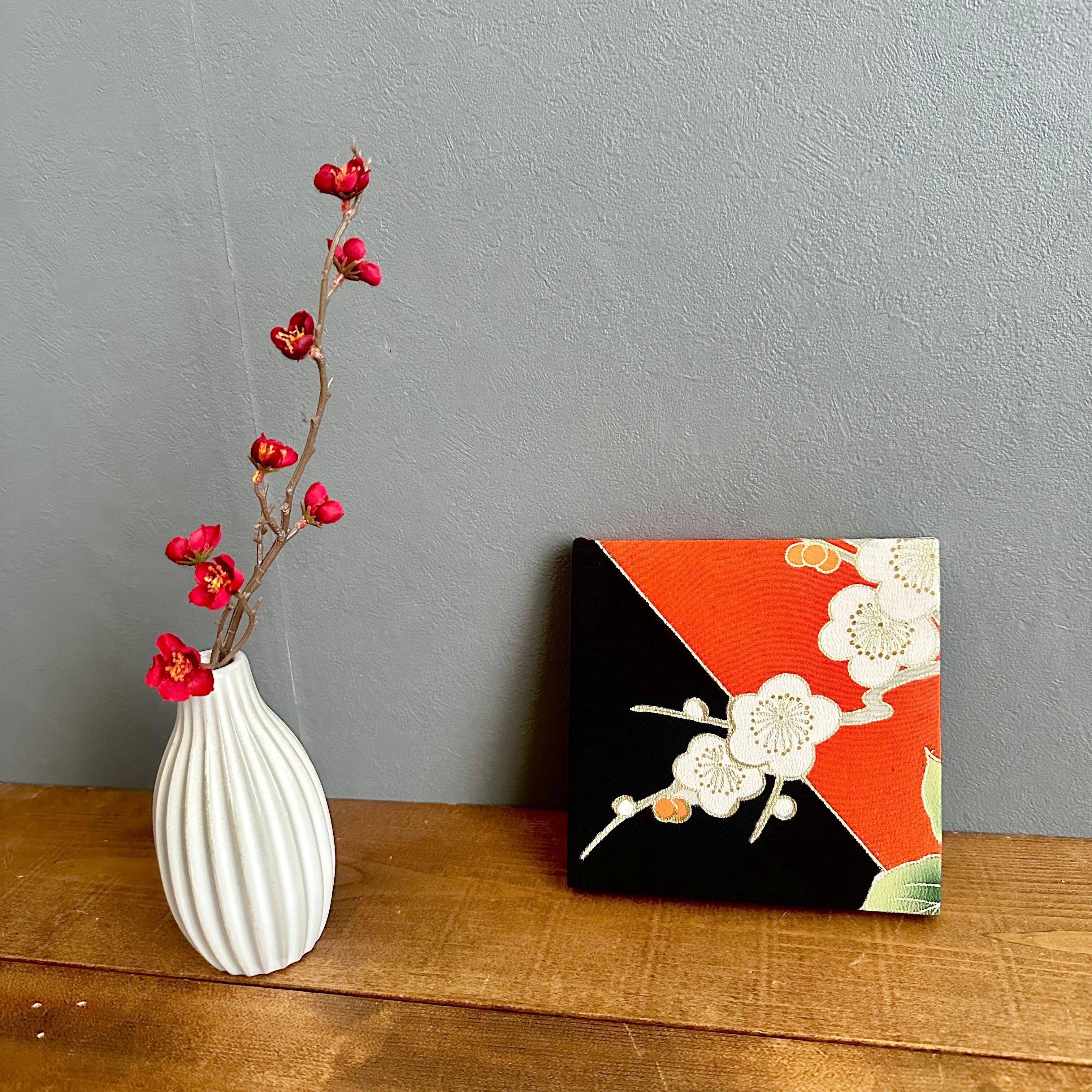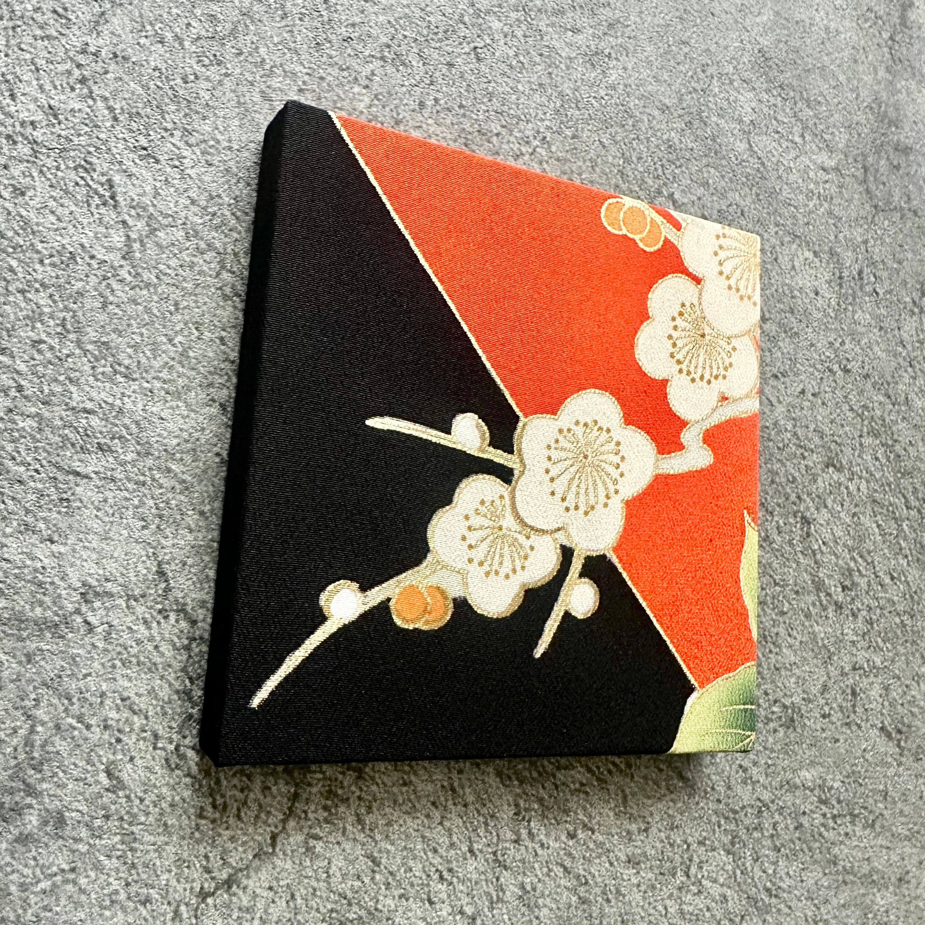 Kimono fabric panel 15×15cm 着物のファブリックパネル 漆黒と朱色に咲く梅の花 Japanese Kimono Interior Japanese Style Art Panels Kimono panel Washitsu Japanese interior