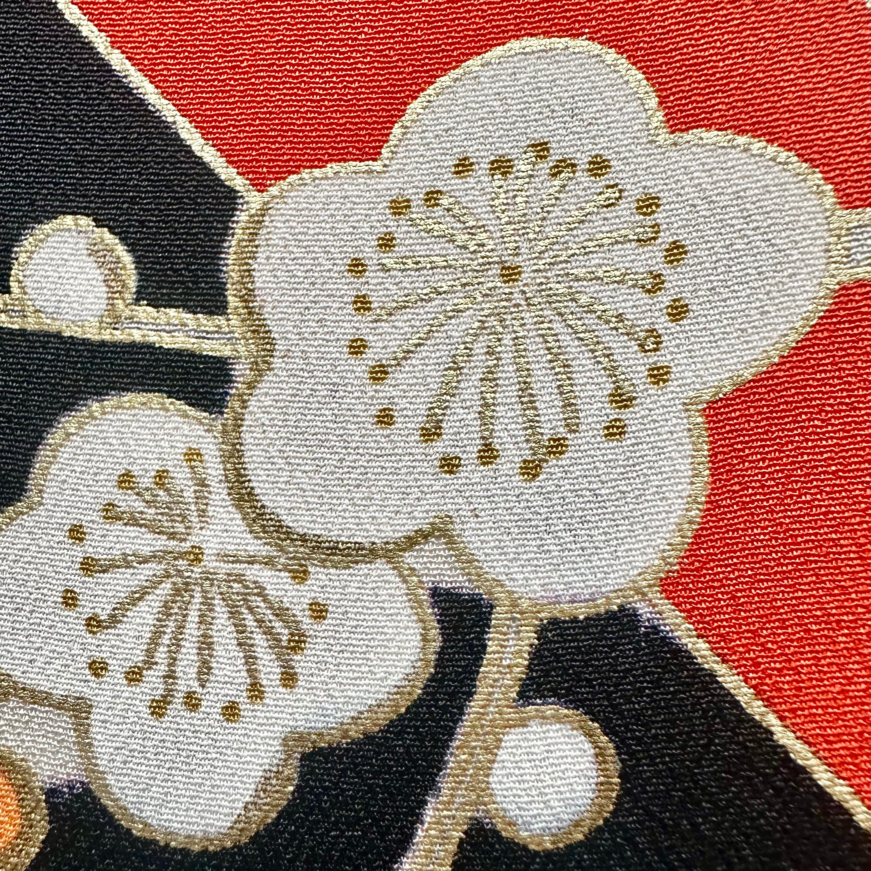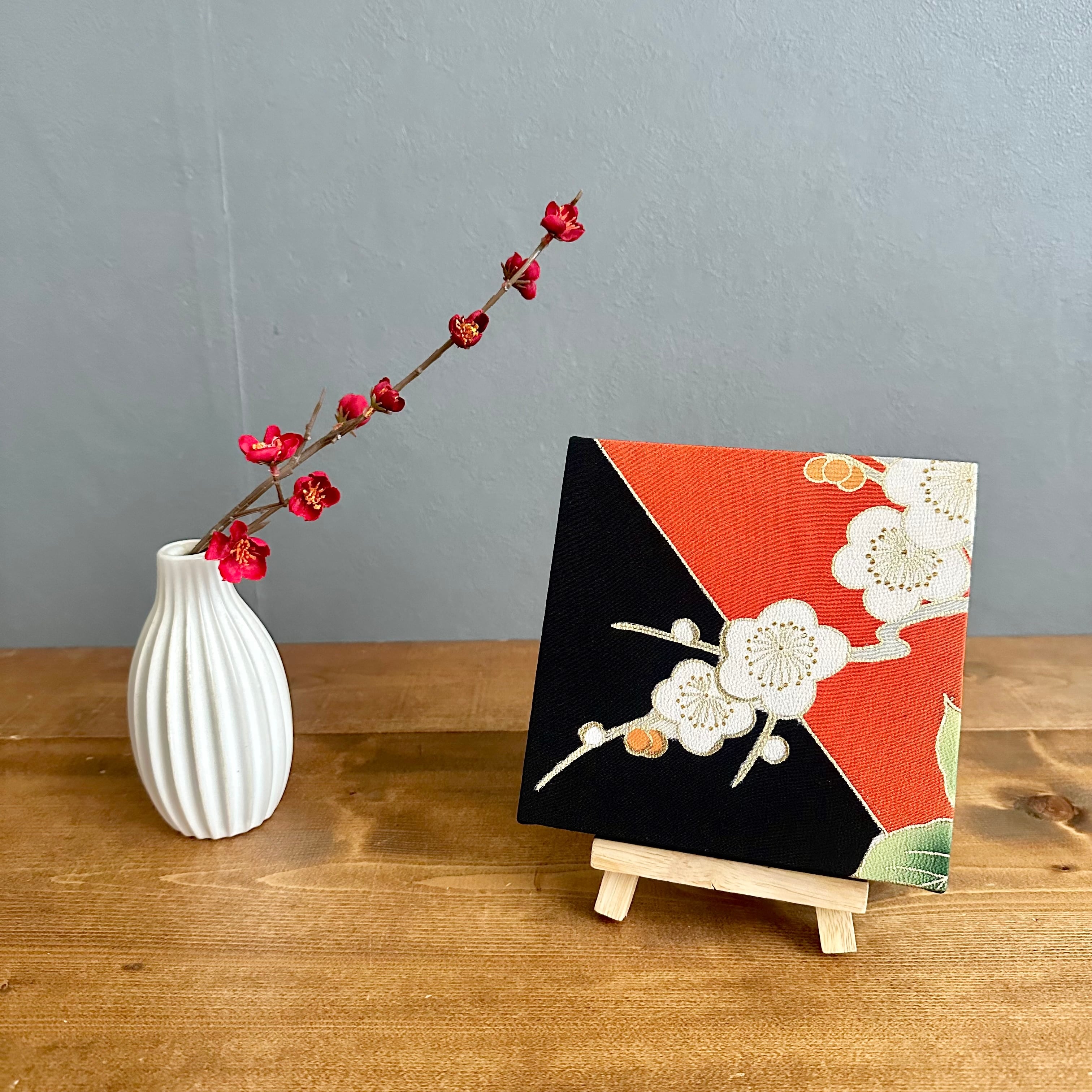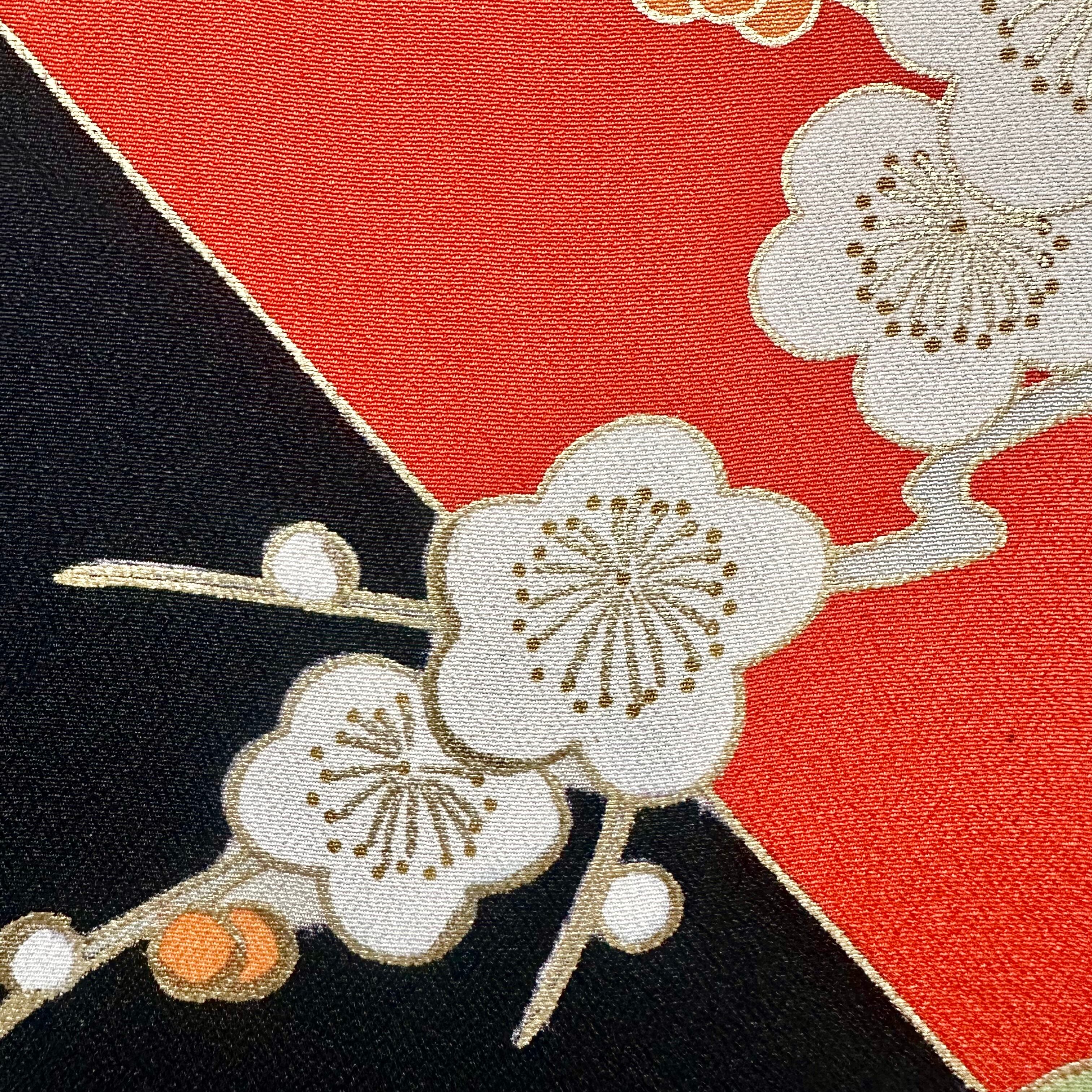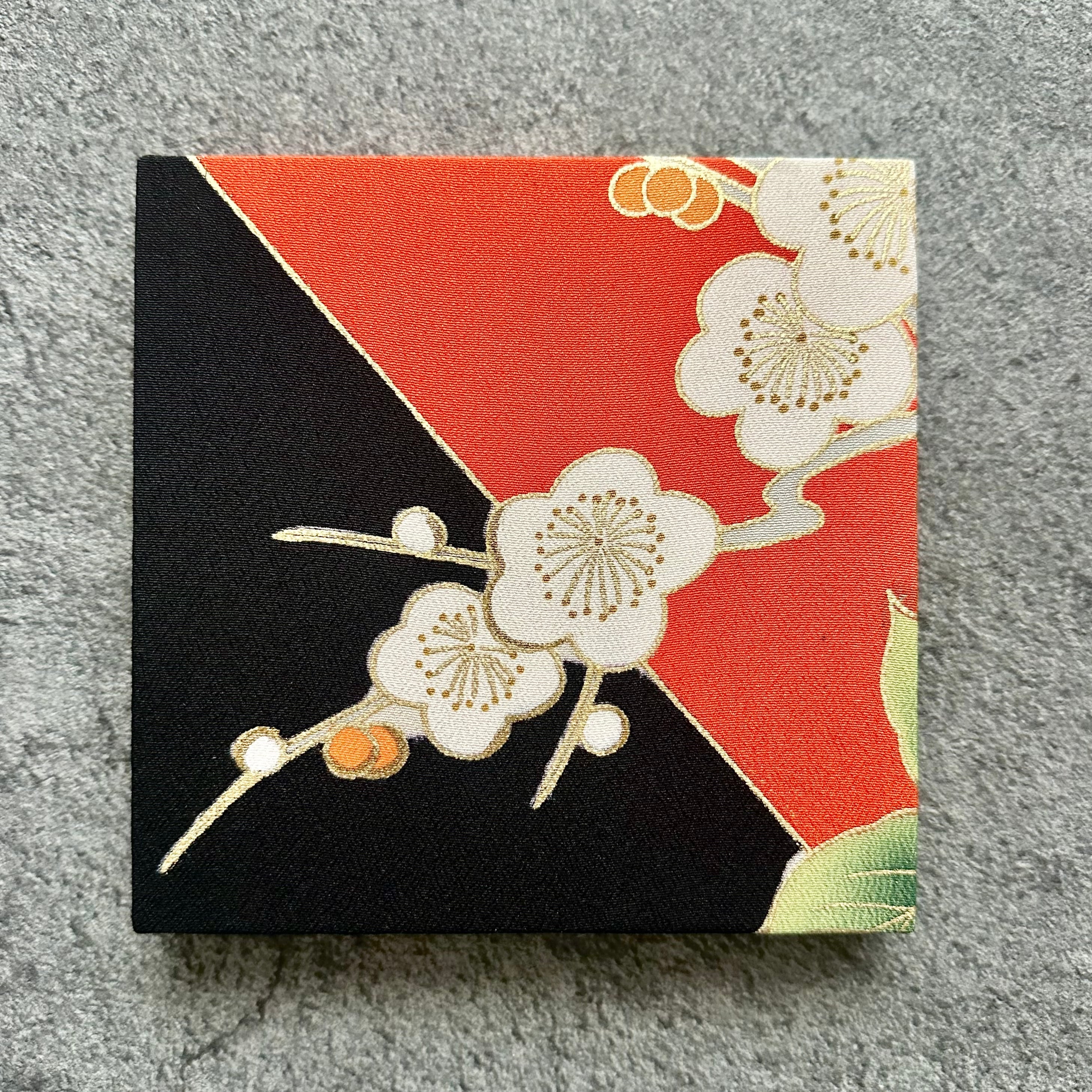 Kimono fabric panel 15×15cm 着物のファブリックパネル 漆黒と朱色に咲く梅の花 Japanese Kimono Interior Japanese Style Art Panels Kimono panel Washitsu Japanese interior