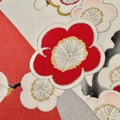 アンティークの着物に描かれた梅の花と菊の花をファブリックパネルとして仕立てました。