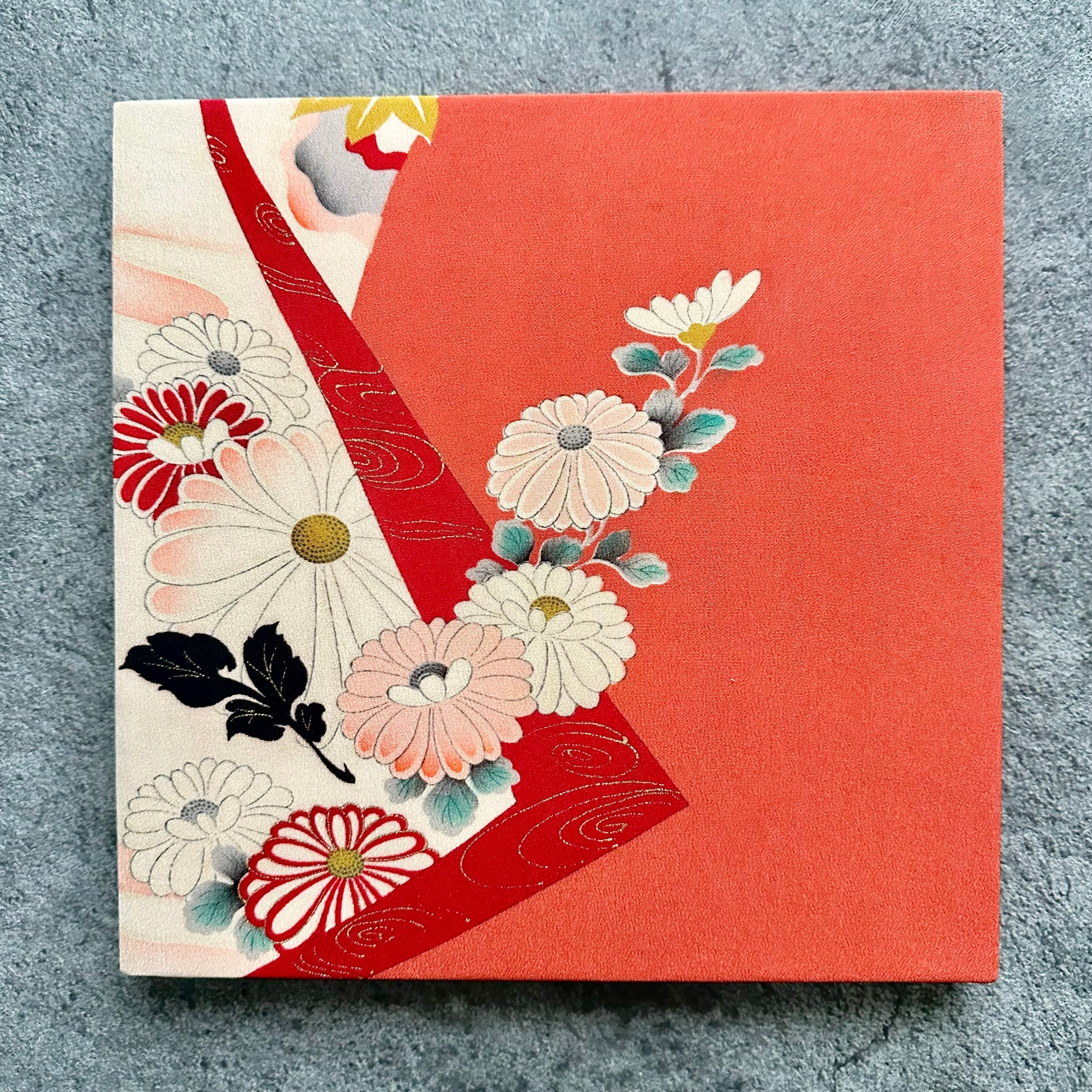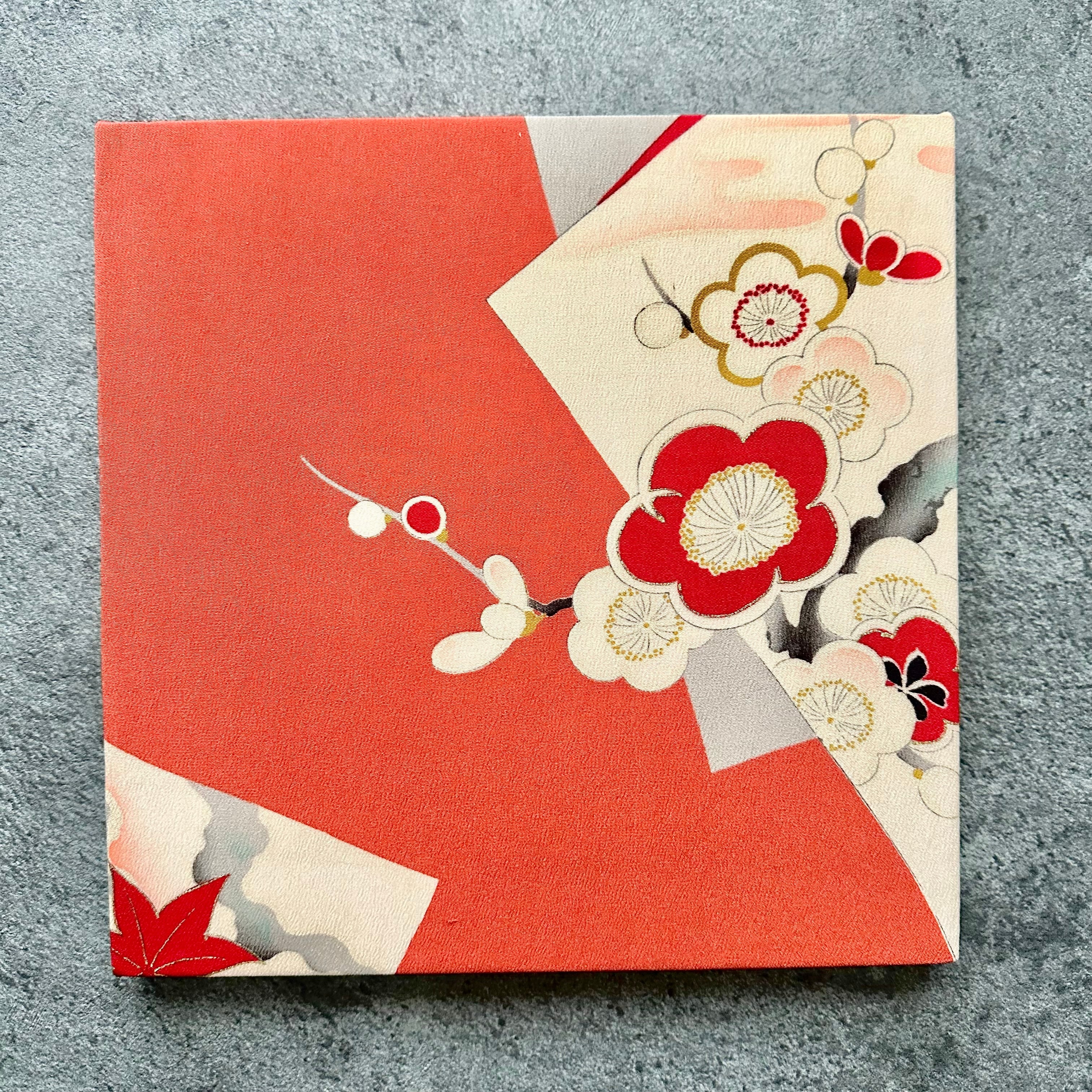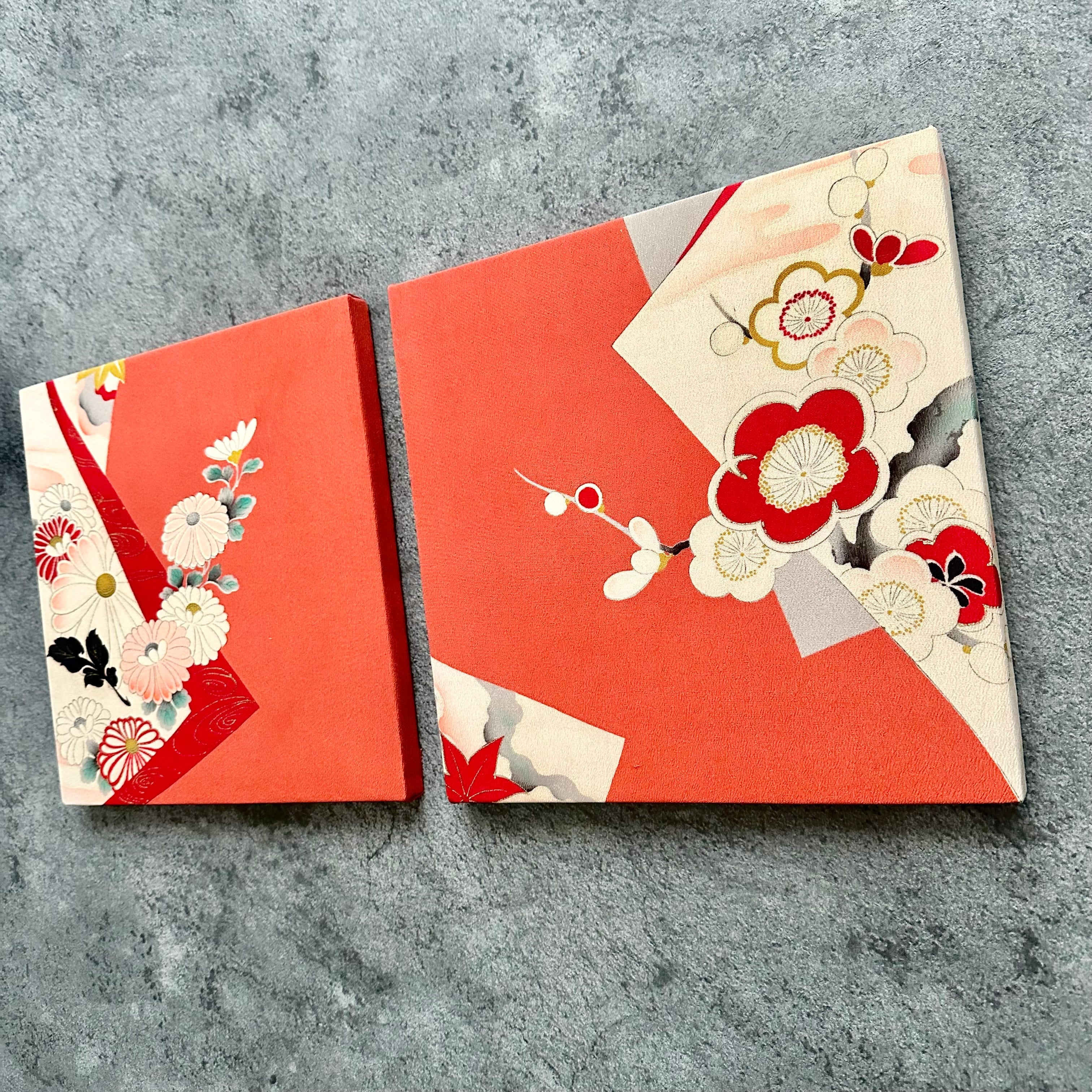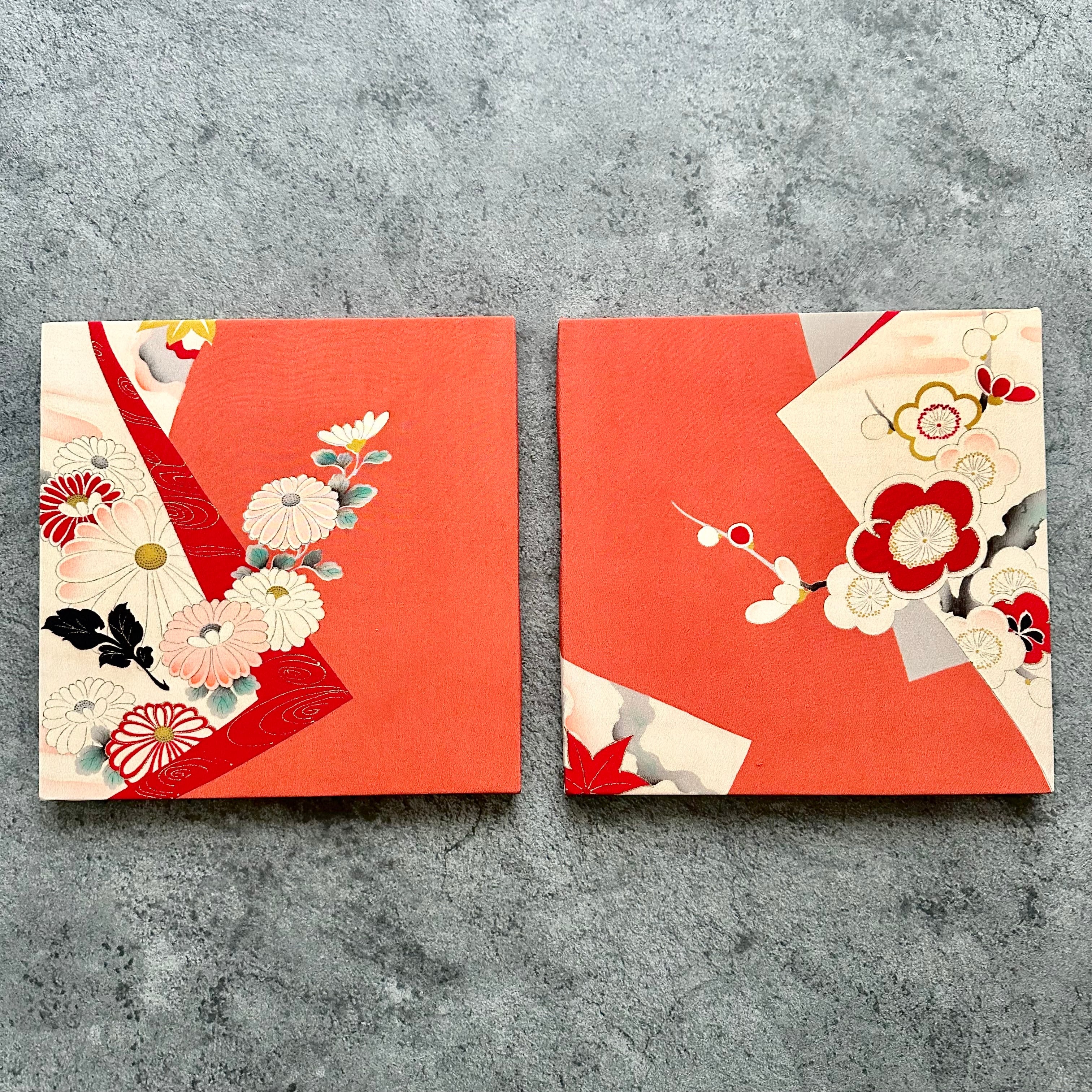 Kimono fabric panel 27×27cm 着物のファブリックパネル アンティーク 梅と菊(2枚組) Japanese Kimono Interior Japanese Style Art Panels Kimono panel Washitsu Japanese interior