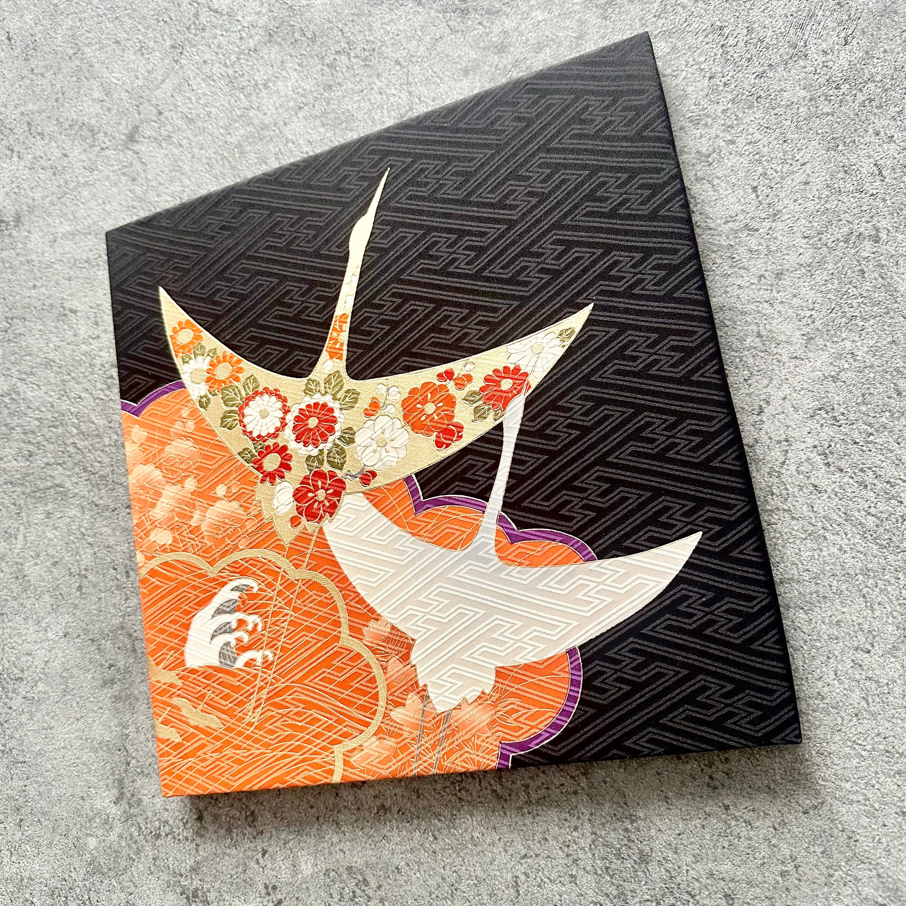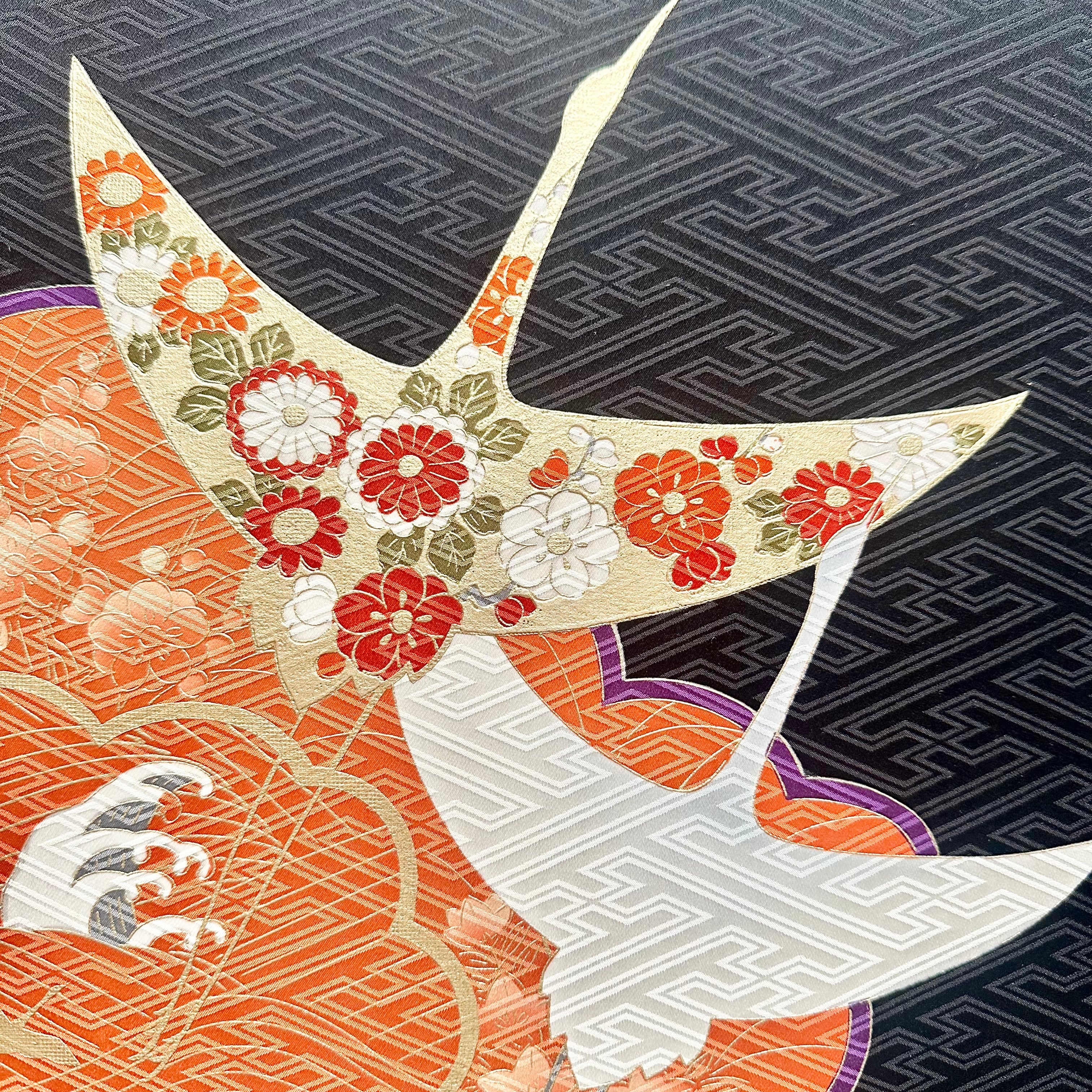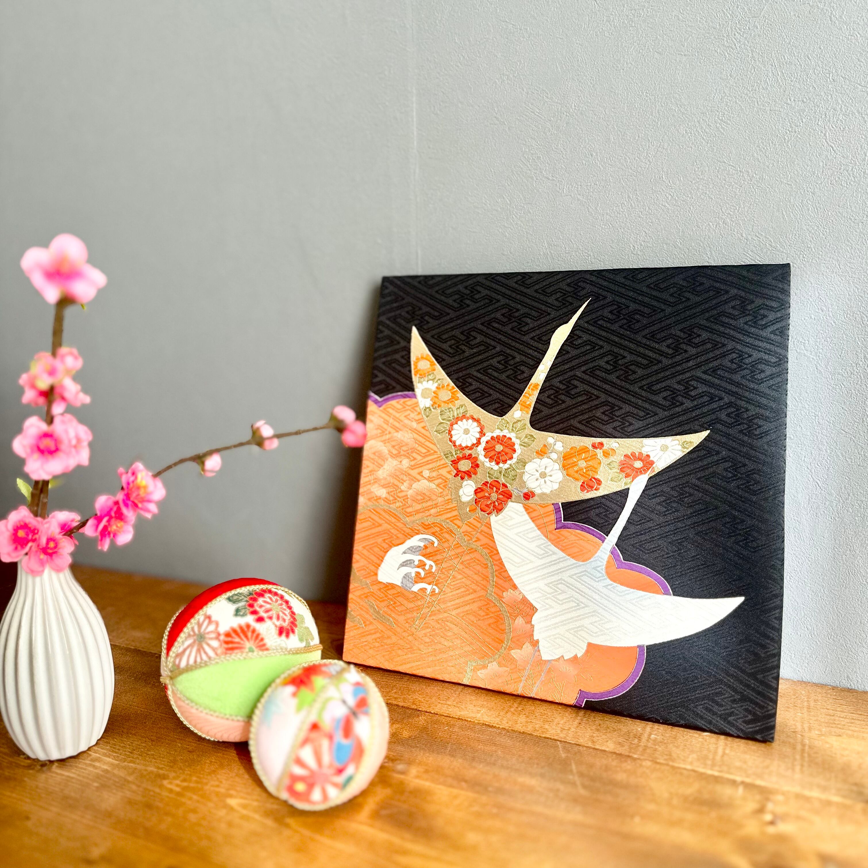 Kimono fabric panel 30×30cm 着物のファブリックパネル ハレノヒ 金色の鶴 Japanese Kimono Interior Japanese Style Art Panels Kimono panel Washitsu Japanese interior | koto1946