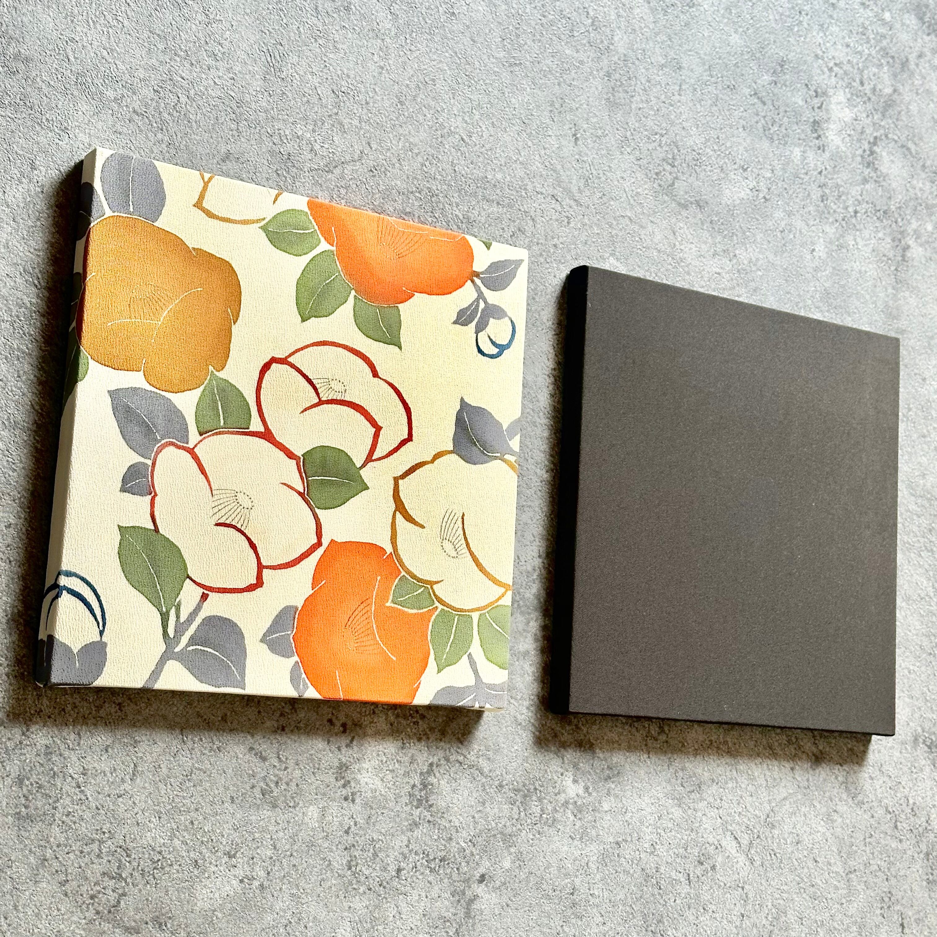 Kimono fabric panel 27×27cm 着物のファブリックパネル レトロ椿 白(2枚組) Japanese Kimono Interior Japanese Style Art Panels Kimono panel Washitsu Japanese interior | koto1946