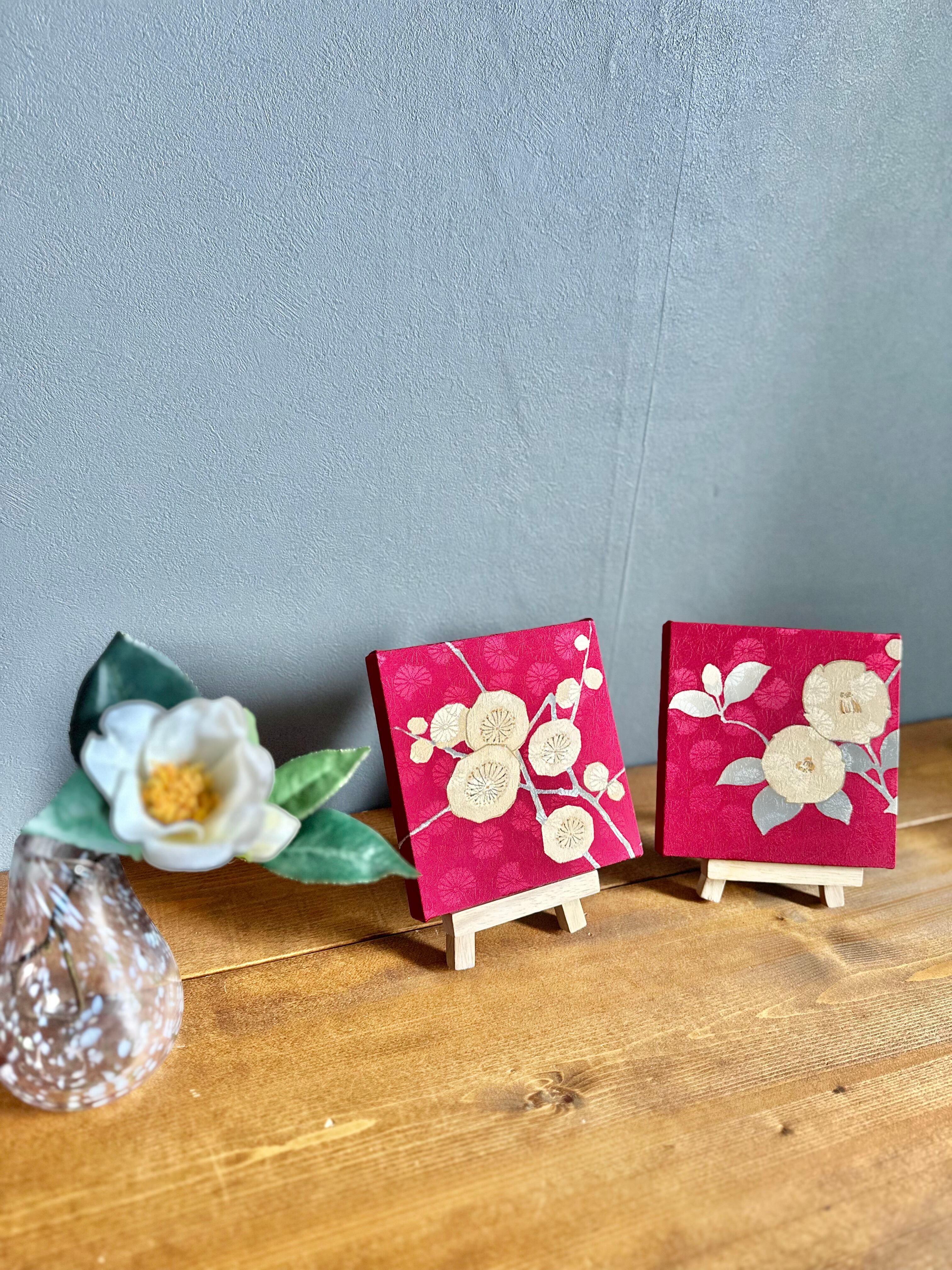 Kimono fabric panel 15×15cm 着物のファブリックパネル レトロ椿 燕児(2枚組) Japanese Kimono Interior Japanese Style Art Panels Kimono panel Washitsu Japanese interior | koto1946