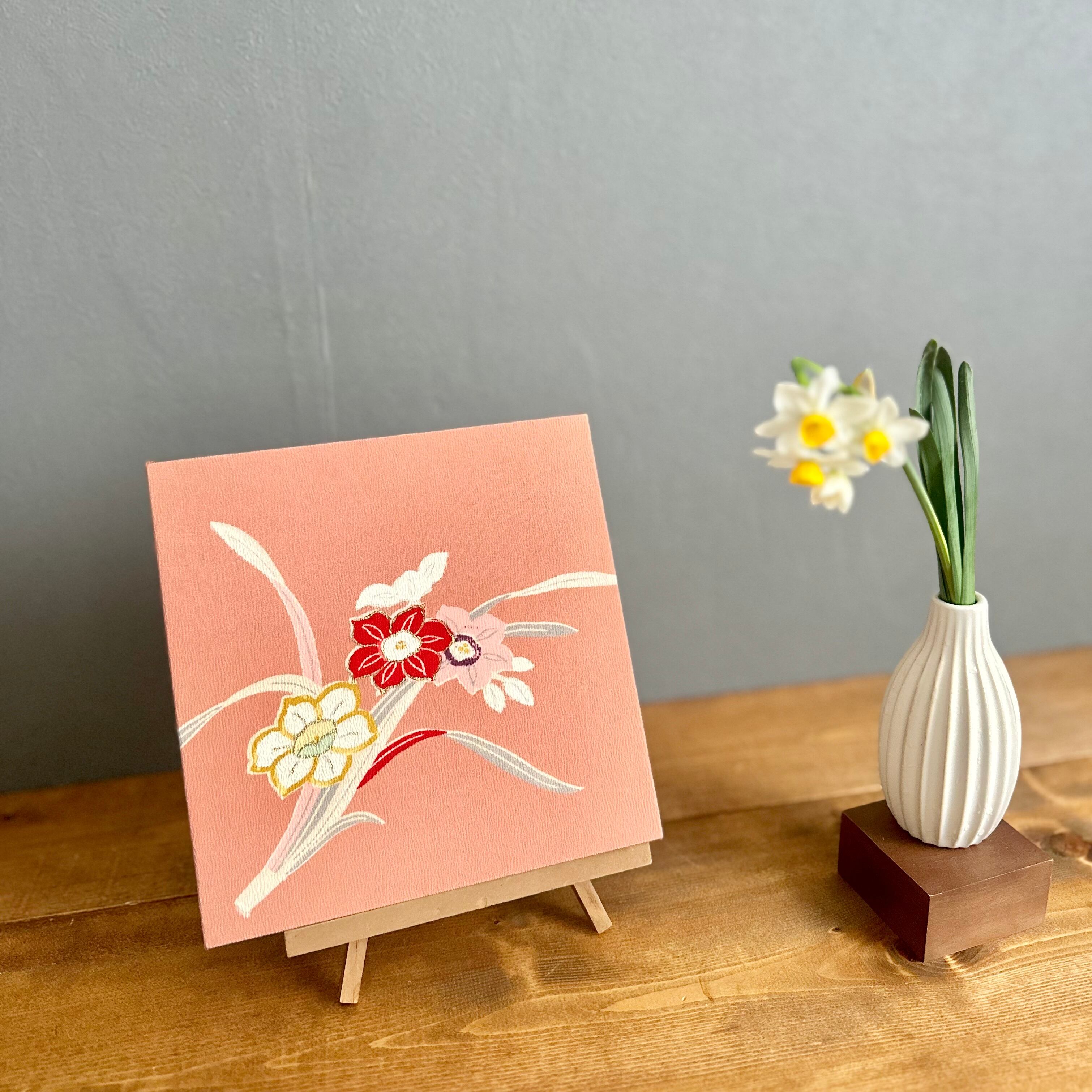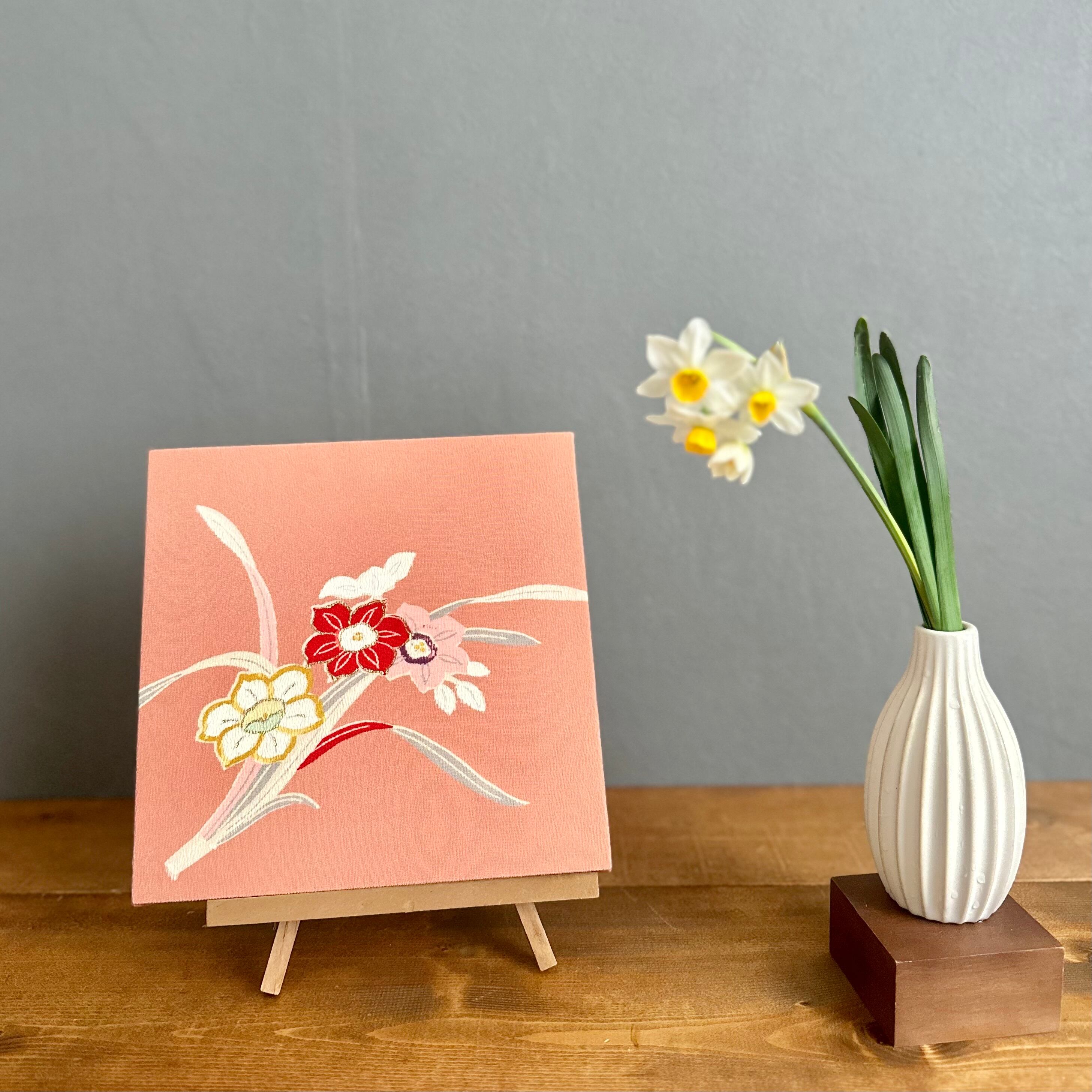 Kimono fabric panel 22×22cm 着物のファブリックパネル アンティーク水仙 Japanese Kimono Interior Japanese Style Art Panels Kimono panel Washitsu Japanese interior | koto1946