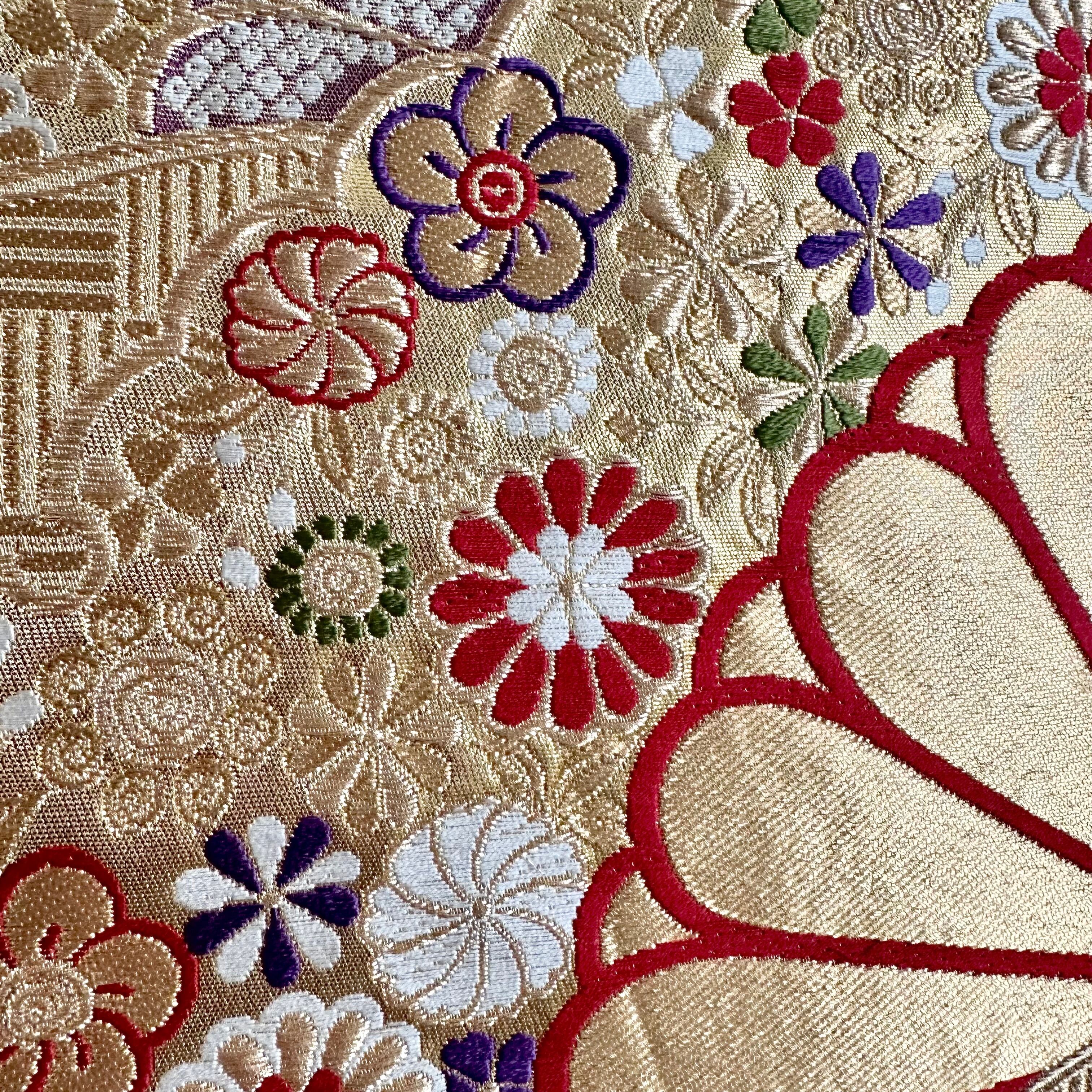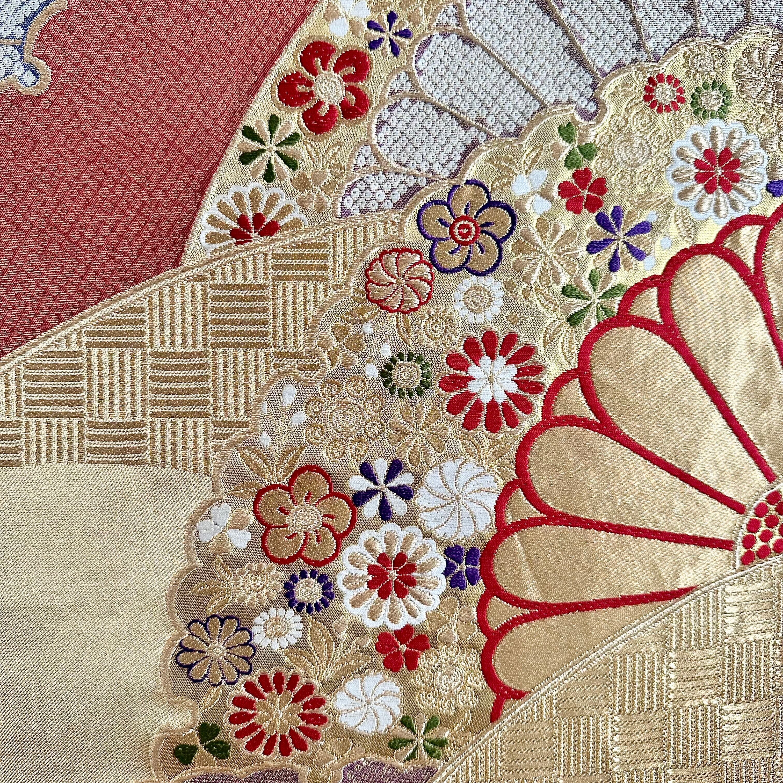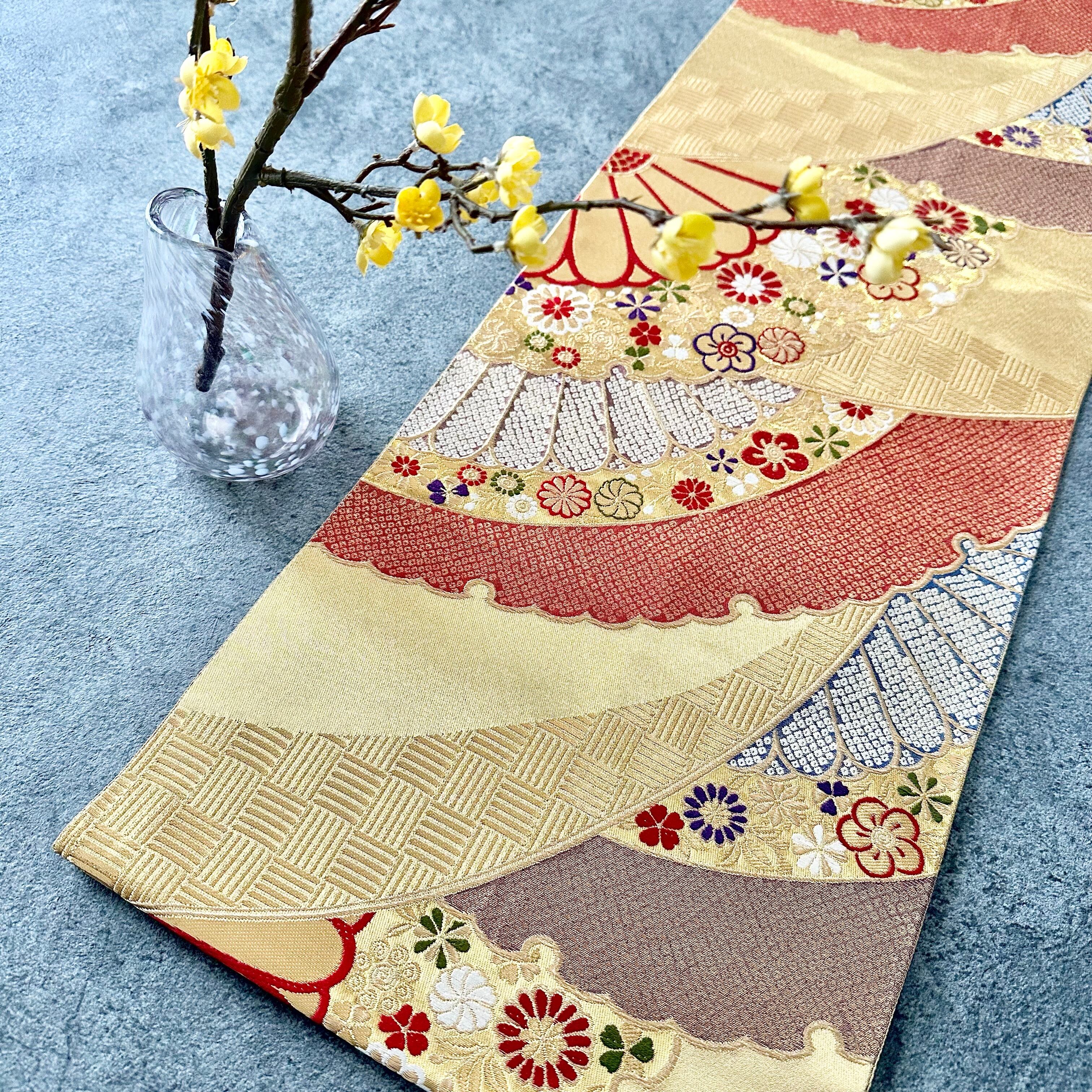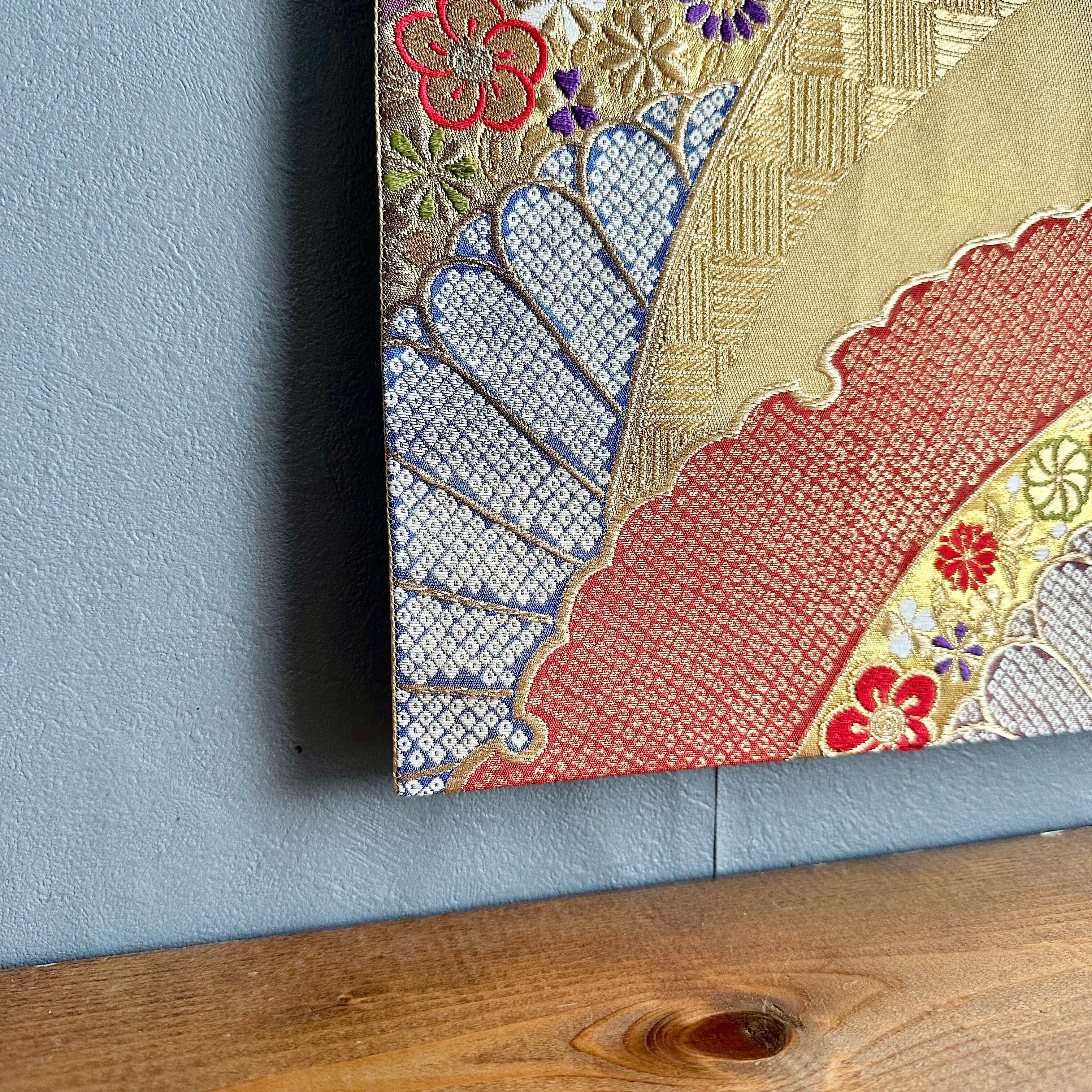 Kimono tapestry 帯のタペストリー ヴィンテージ 金色の扇 Japanese Kimono Interior Art Panel Kakejiku Art Wall Art Kimono Panel | koto1946