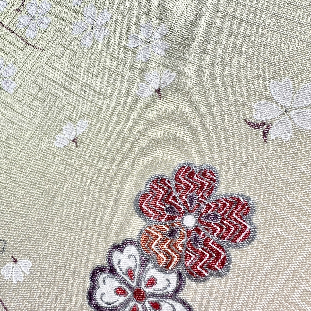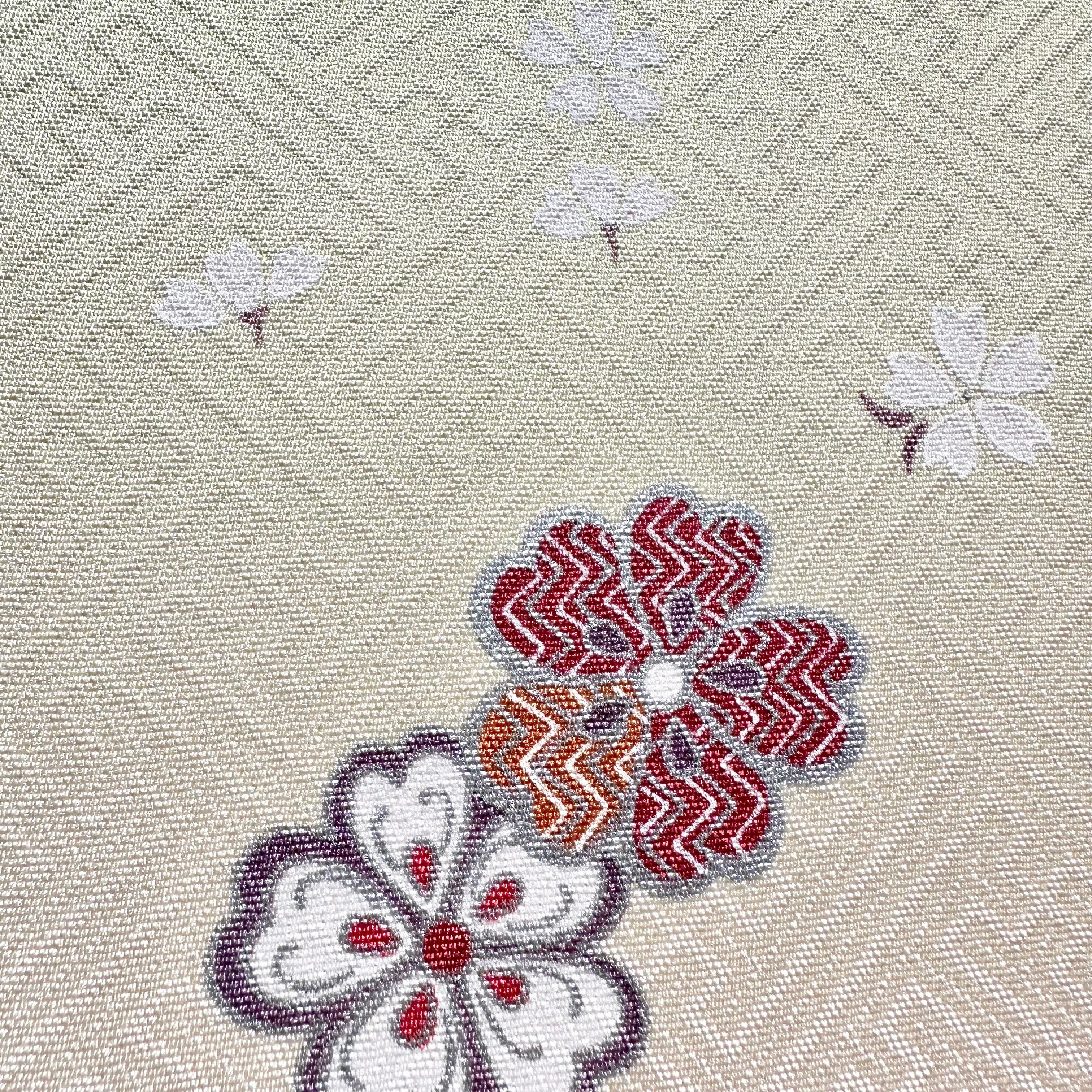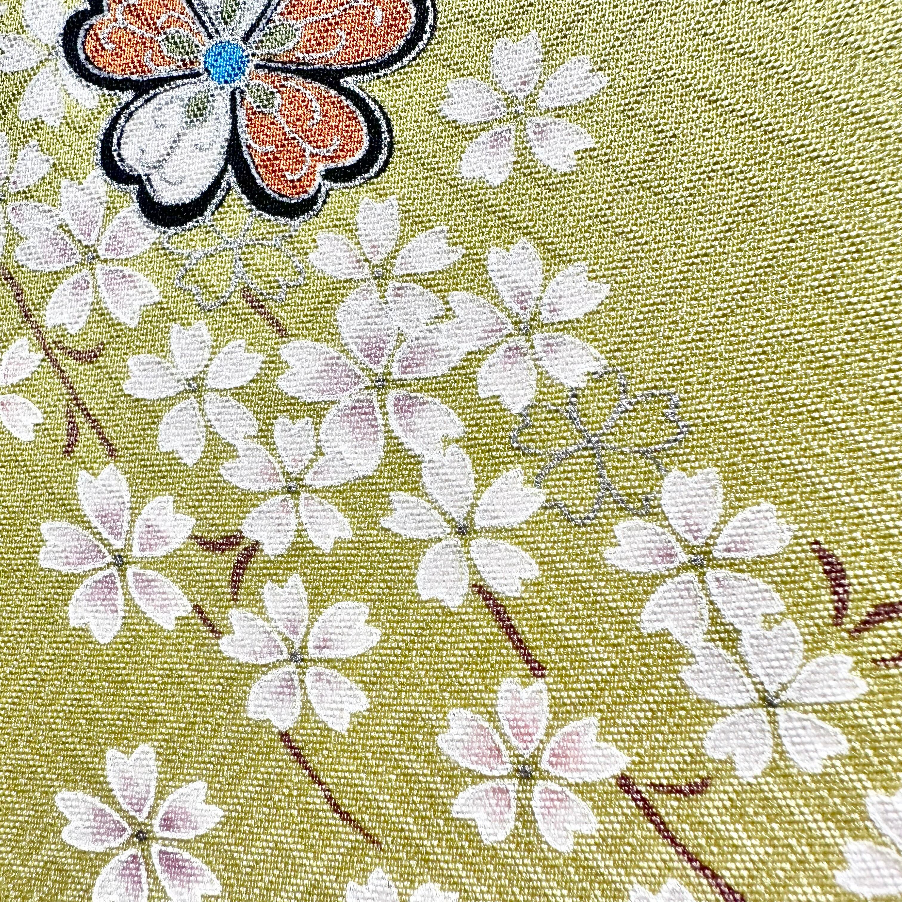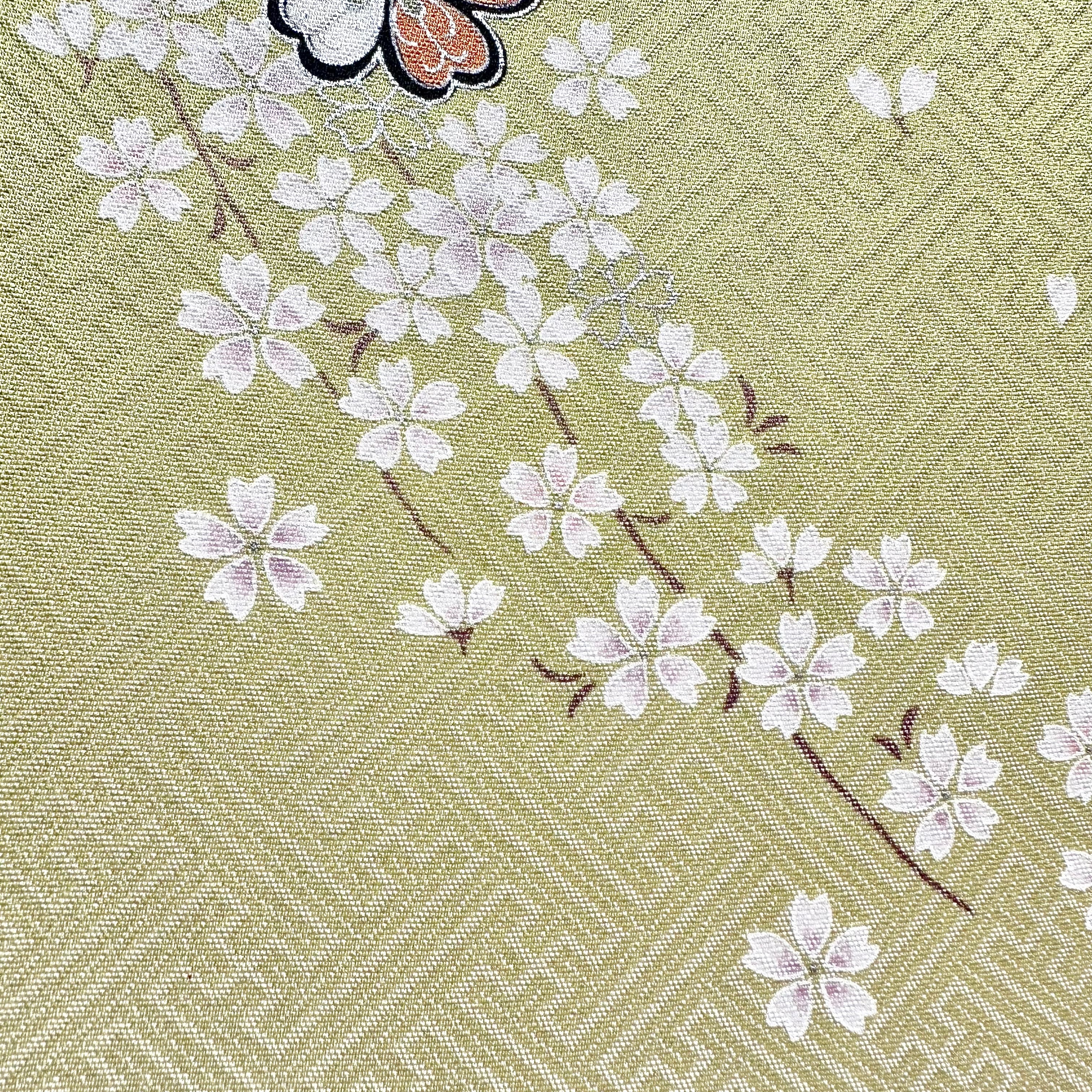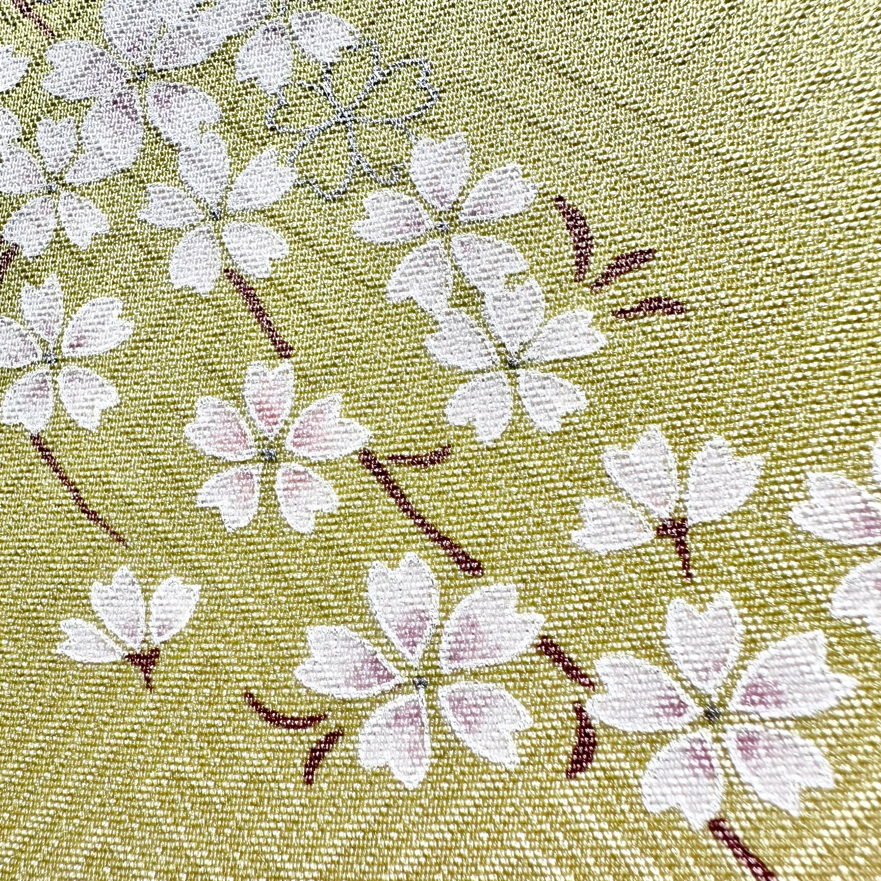 アンティーク着物ならではのやわらかな色合いと、日本の春を象徴する桜モチーフが、お部屋に上品でやさしい彩りを添えます。