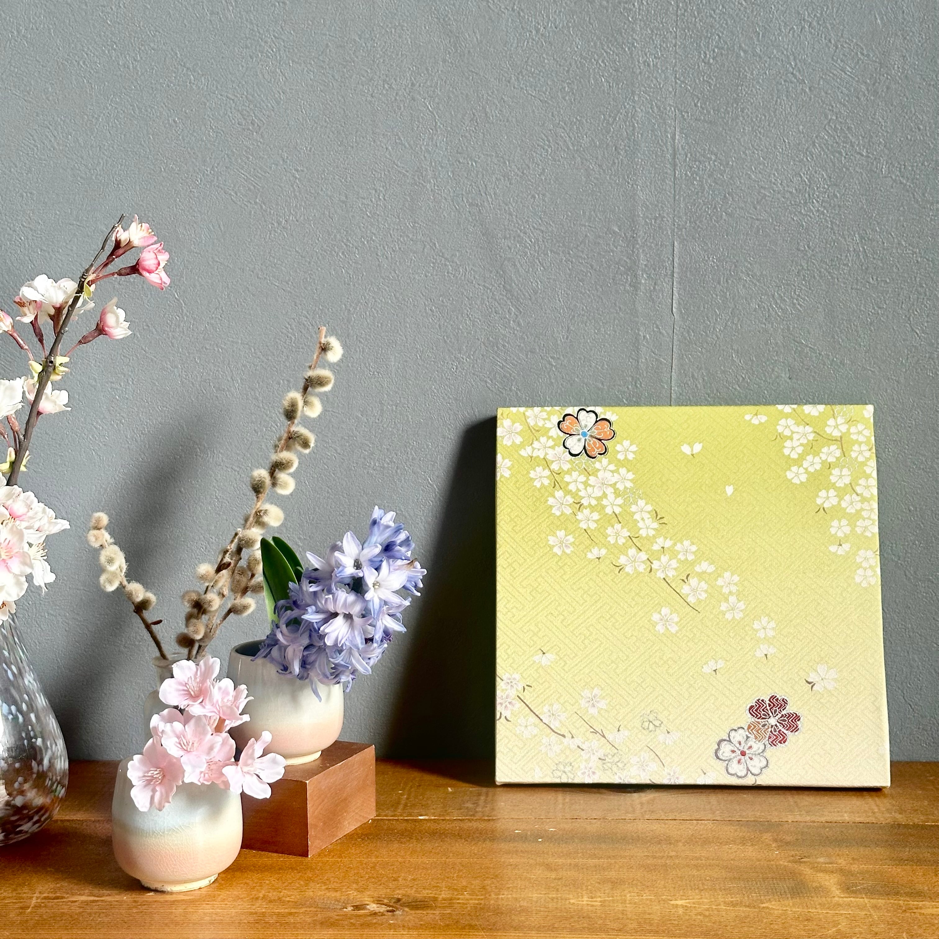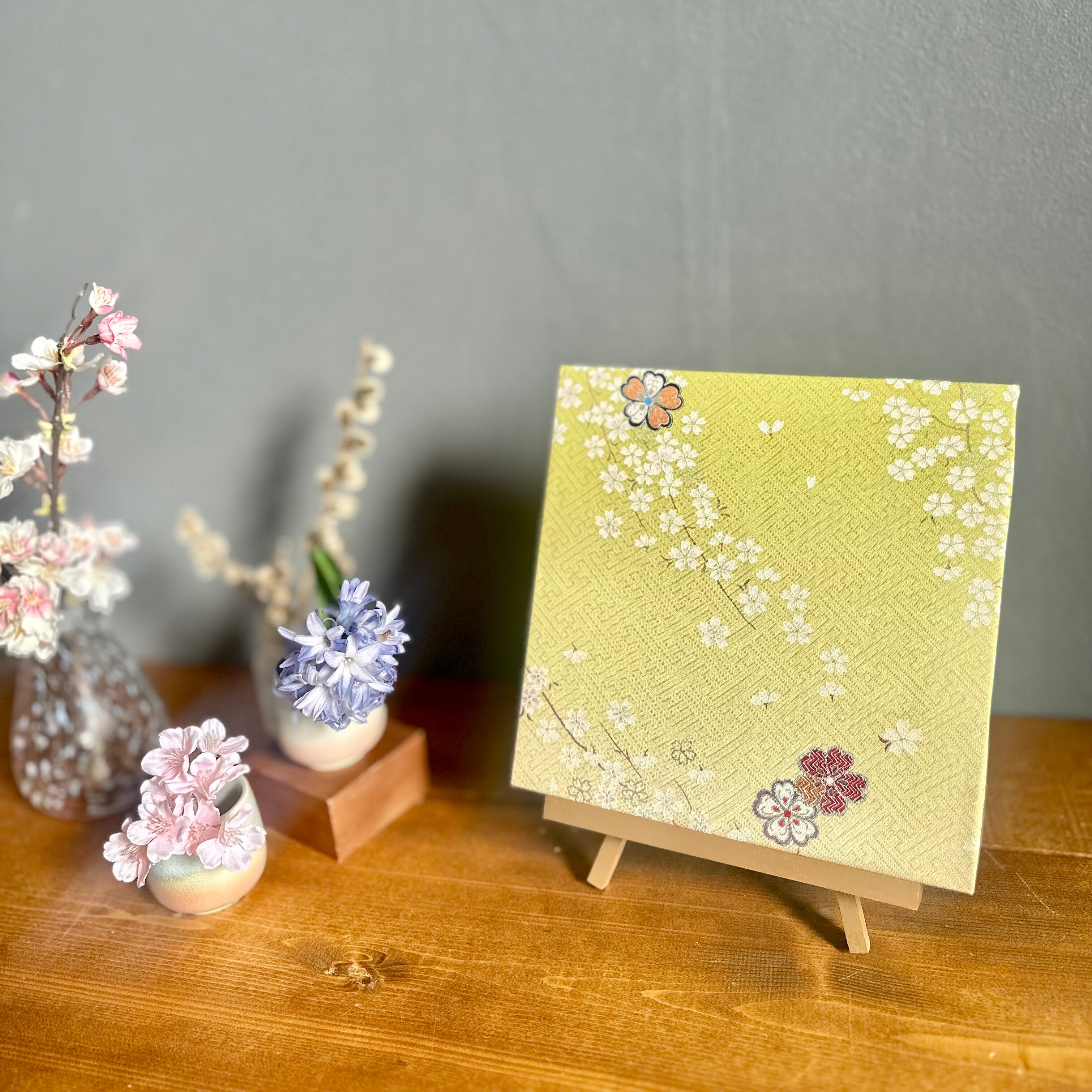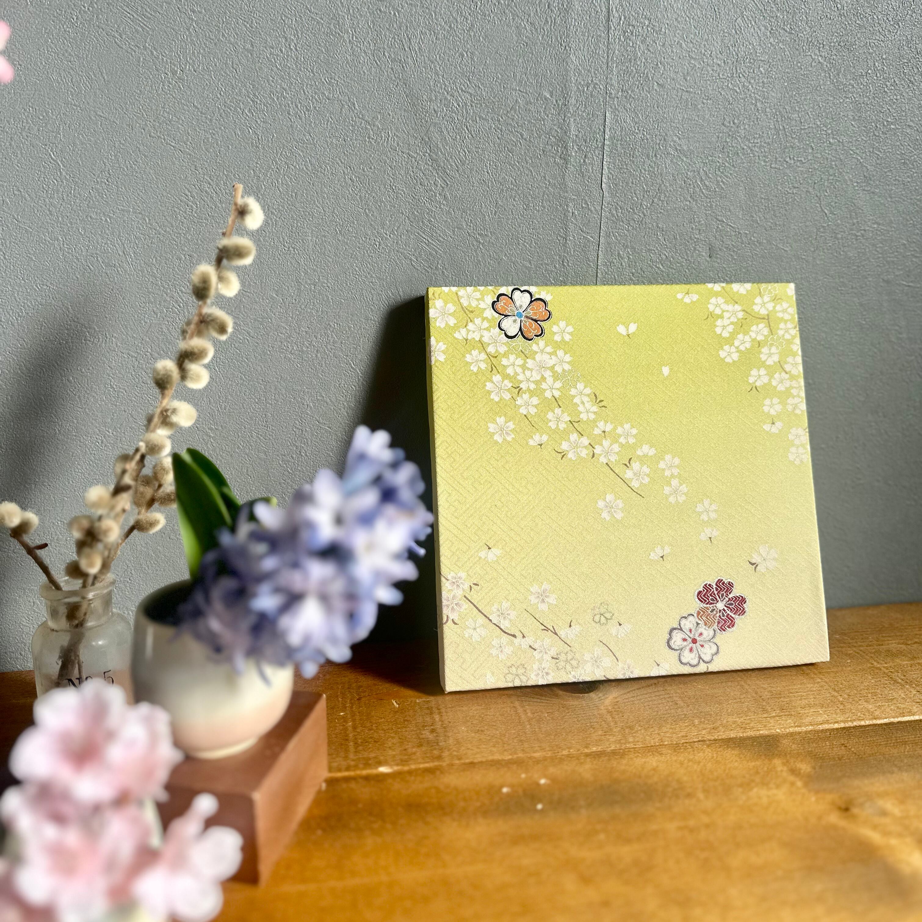 Vintage Kimono Fabric Panel ヴィンテージ着物 ファブリックパネル 春色の桜 22×22cm Japanese Wall Art