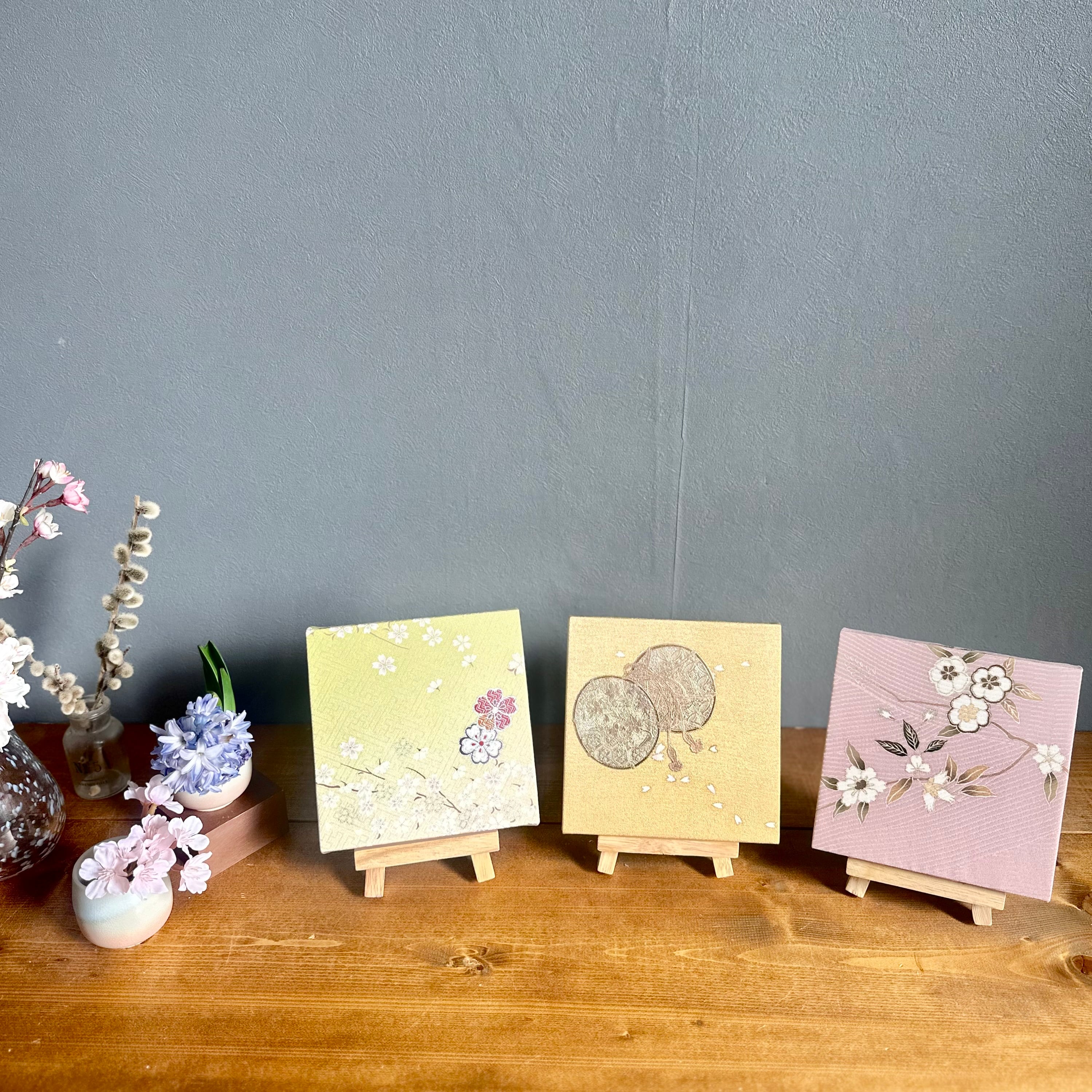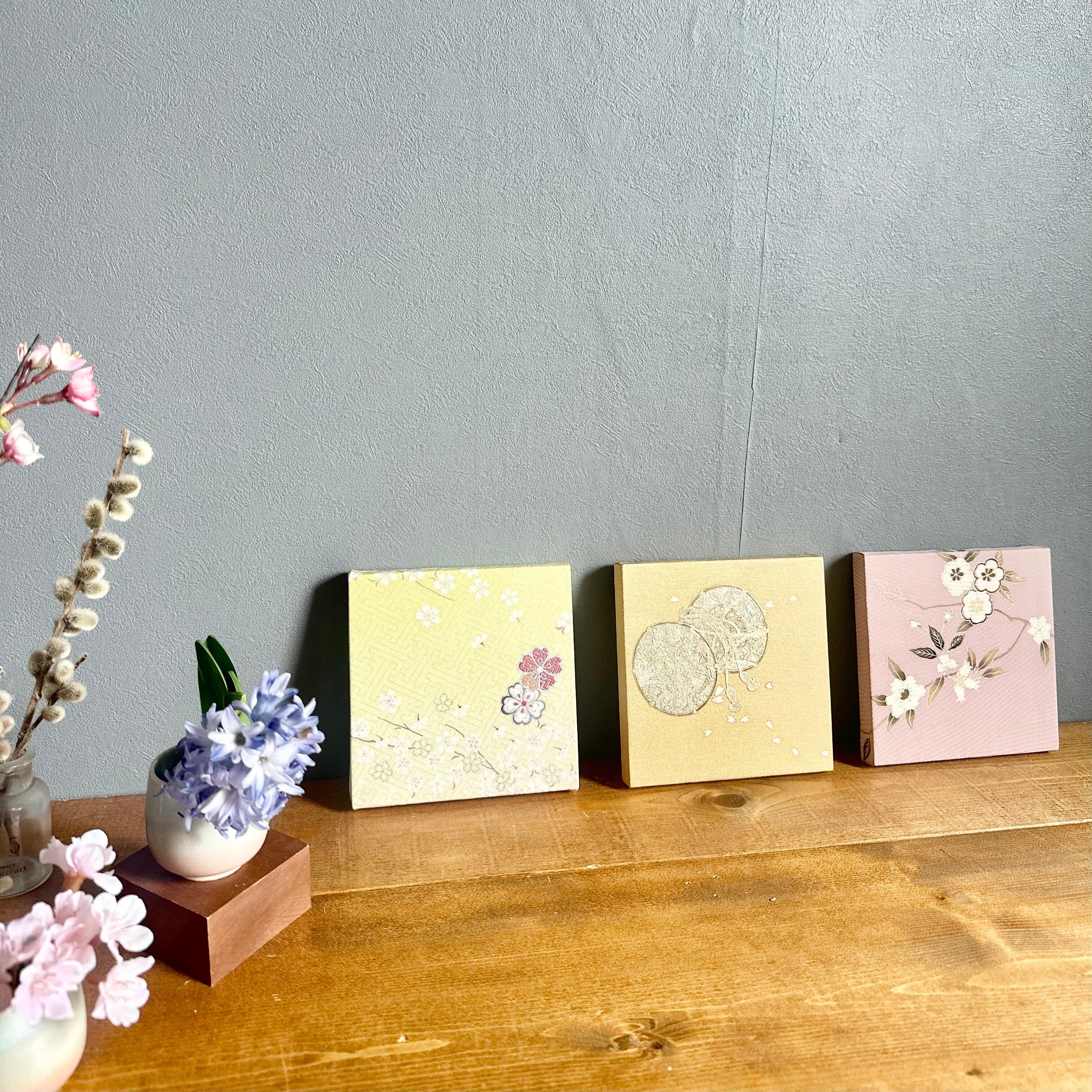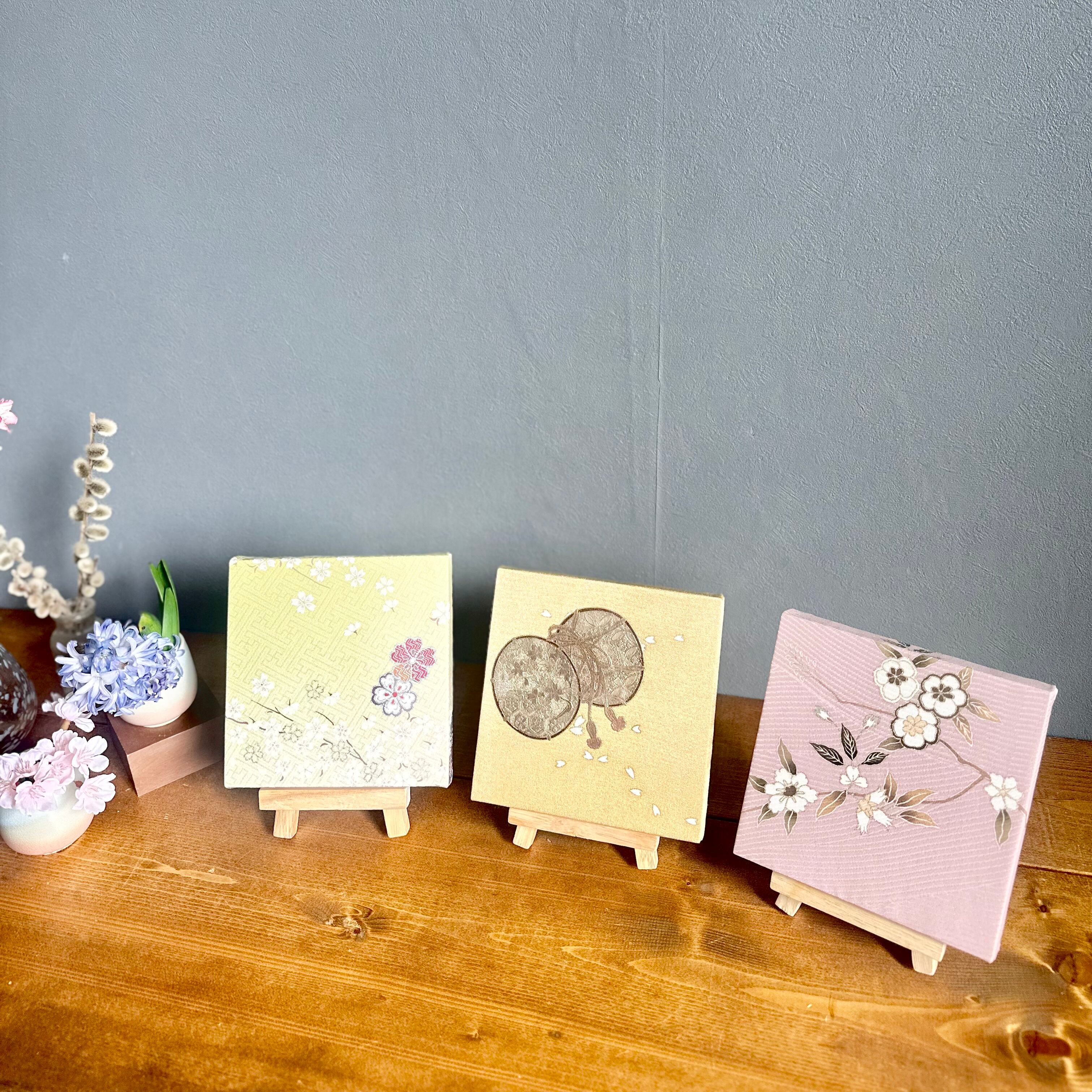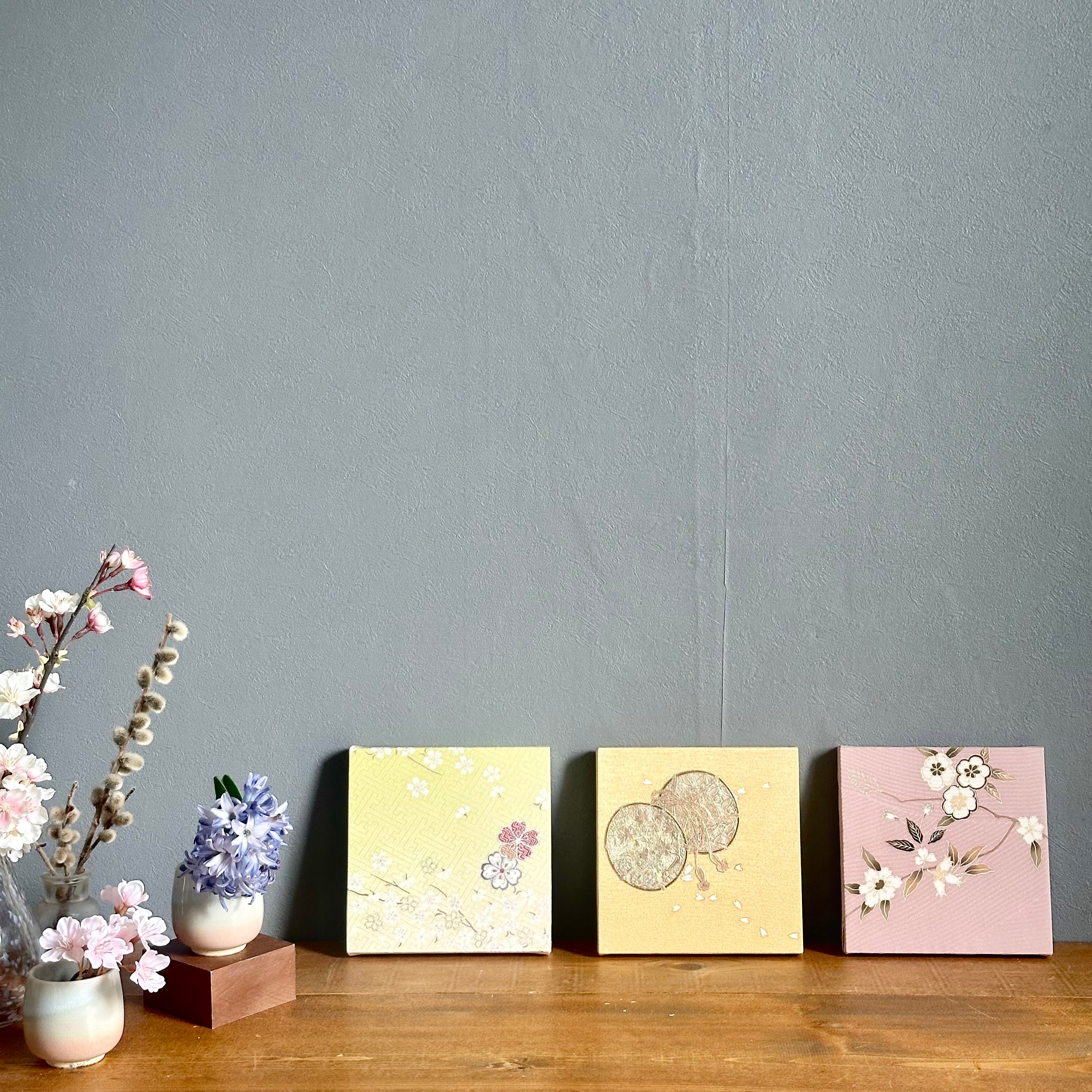 Vintage Kimono Fabric Panel ヴィンテージ着物 ファブリックパネル 三色の桜15×15cm(3枚組) Japanese Wall Art