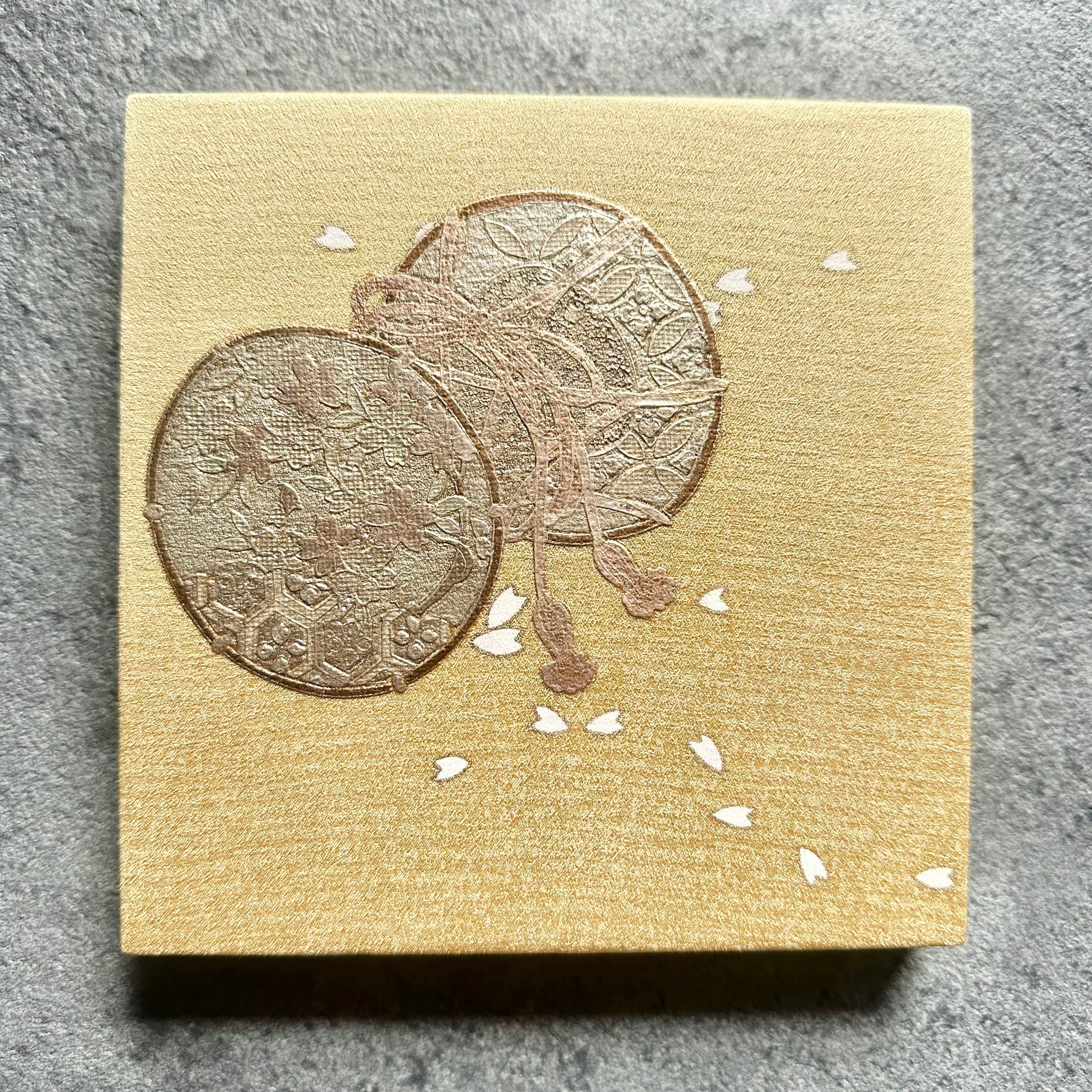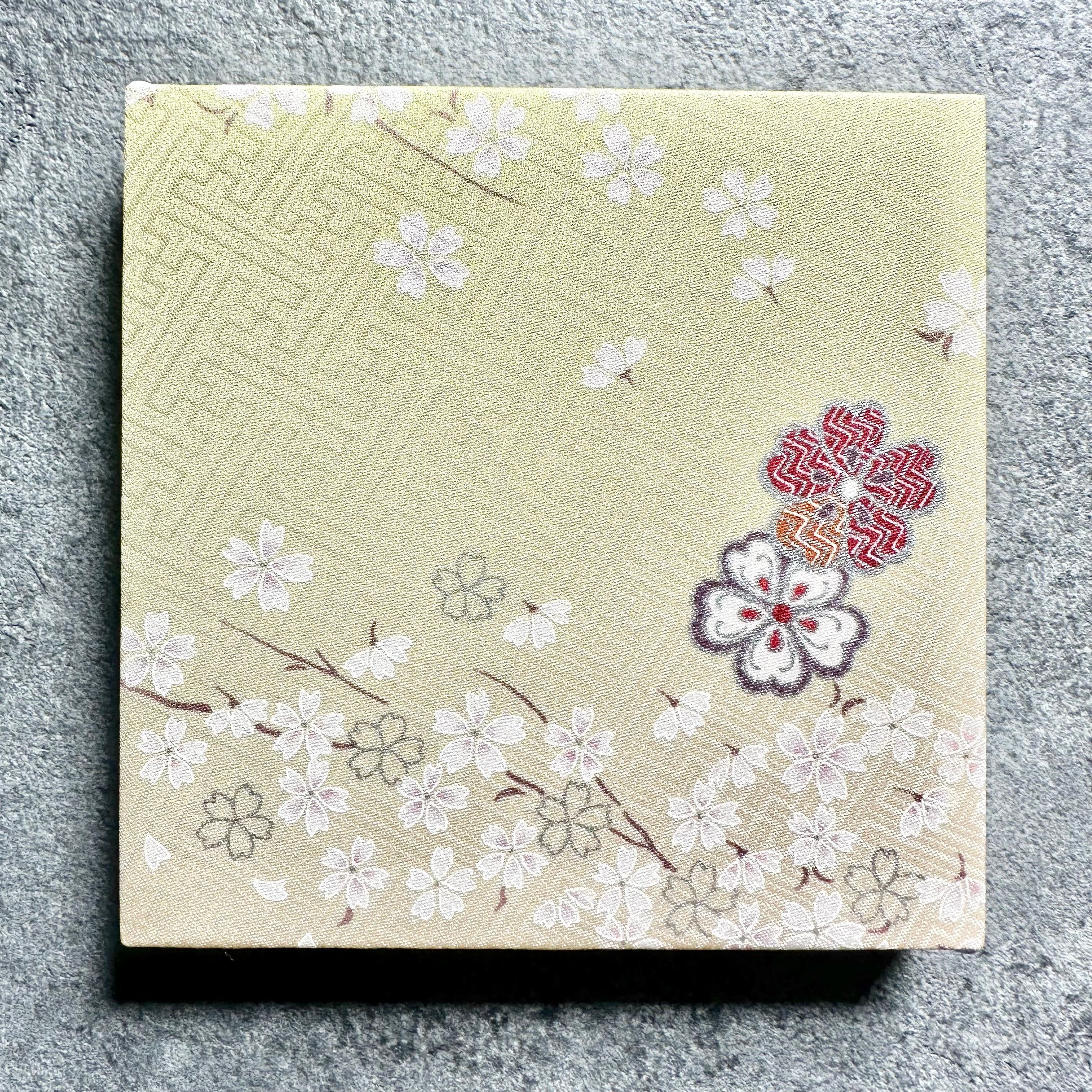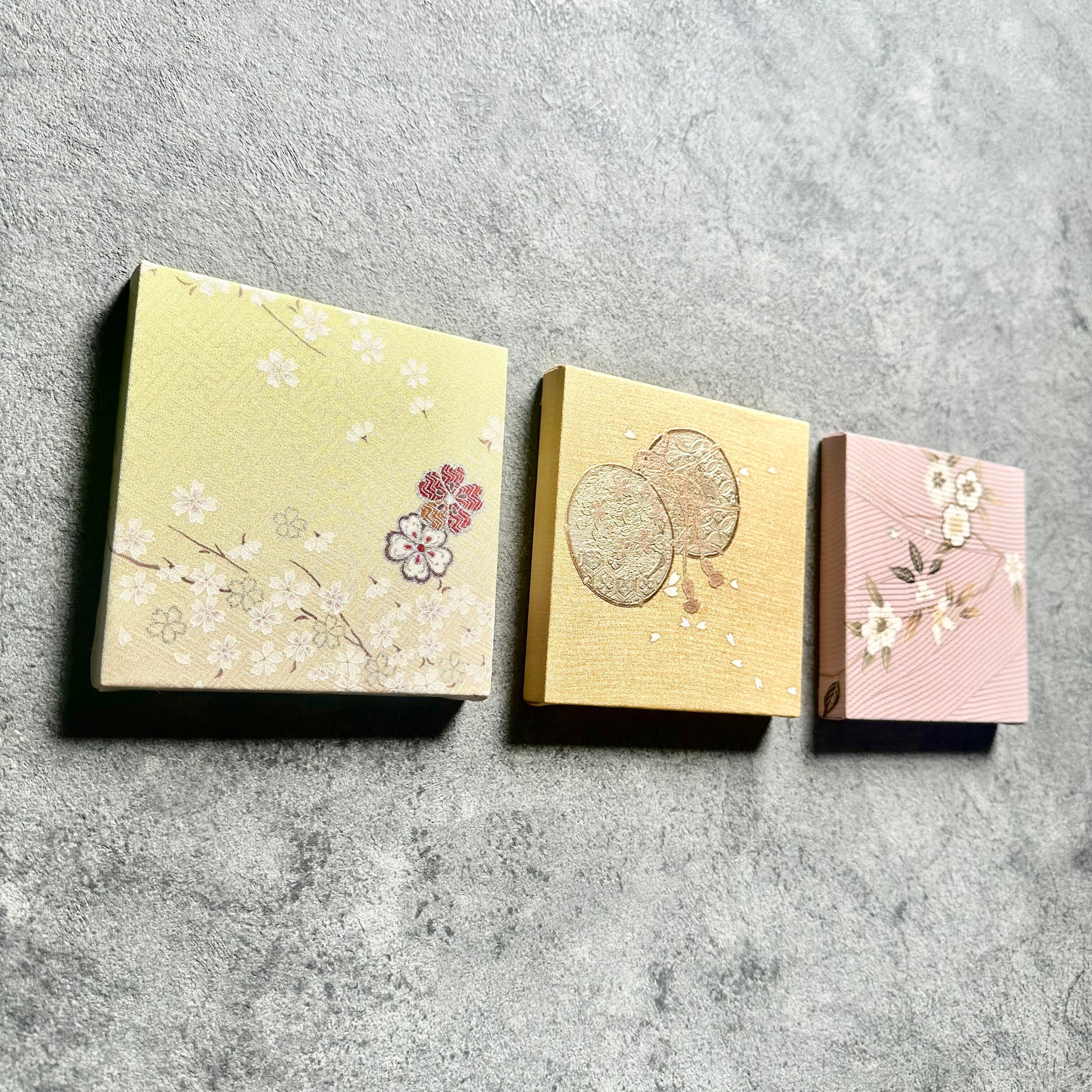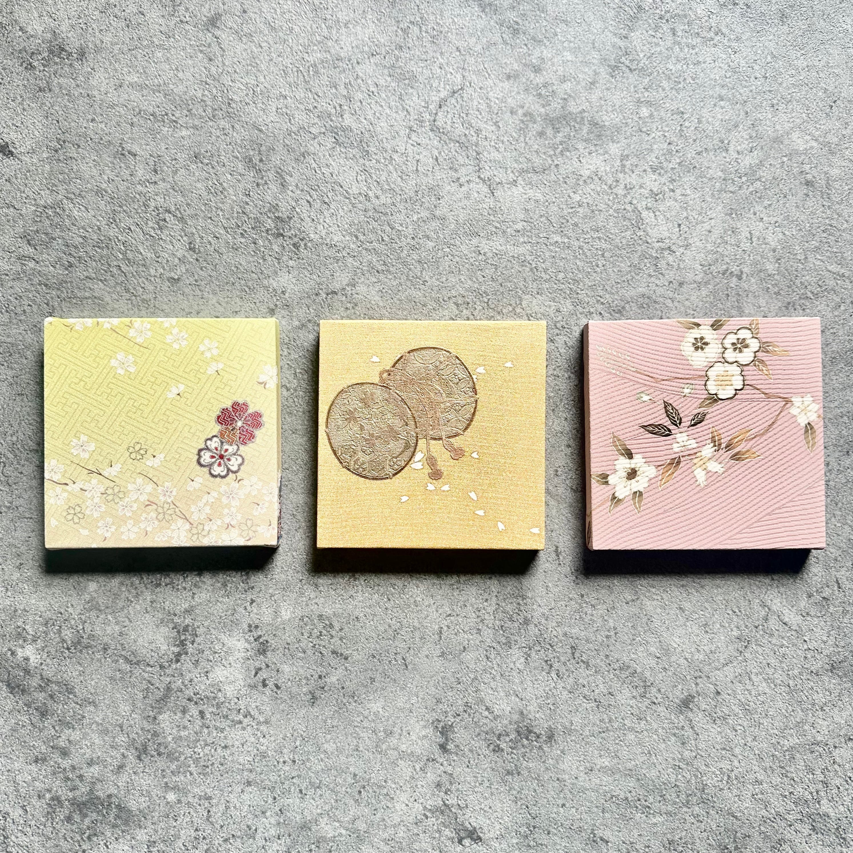 Vintage Kimono Fabric Panel ヴィンテージ着物 ファブリックパネル 三色の桜15×15cm(3枚組) Japanese Wall Art