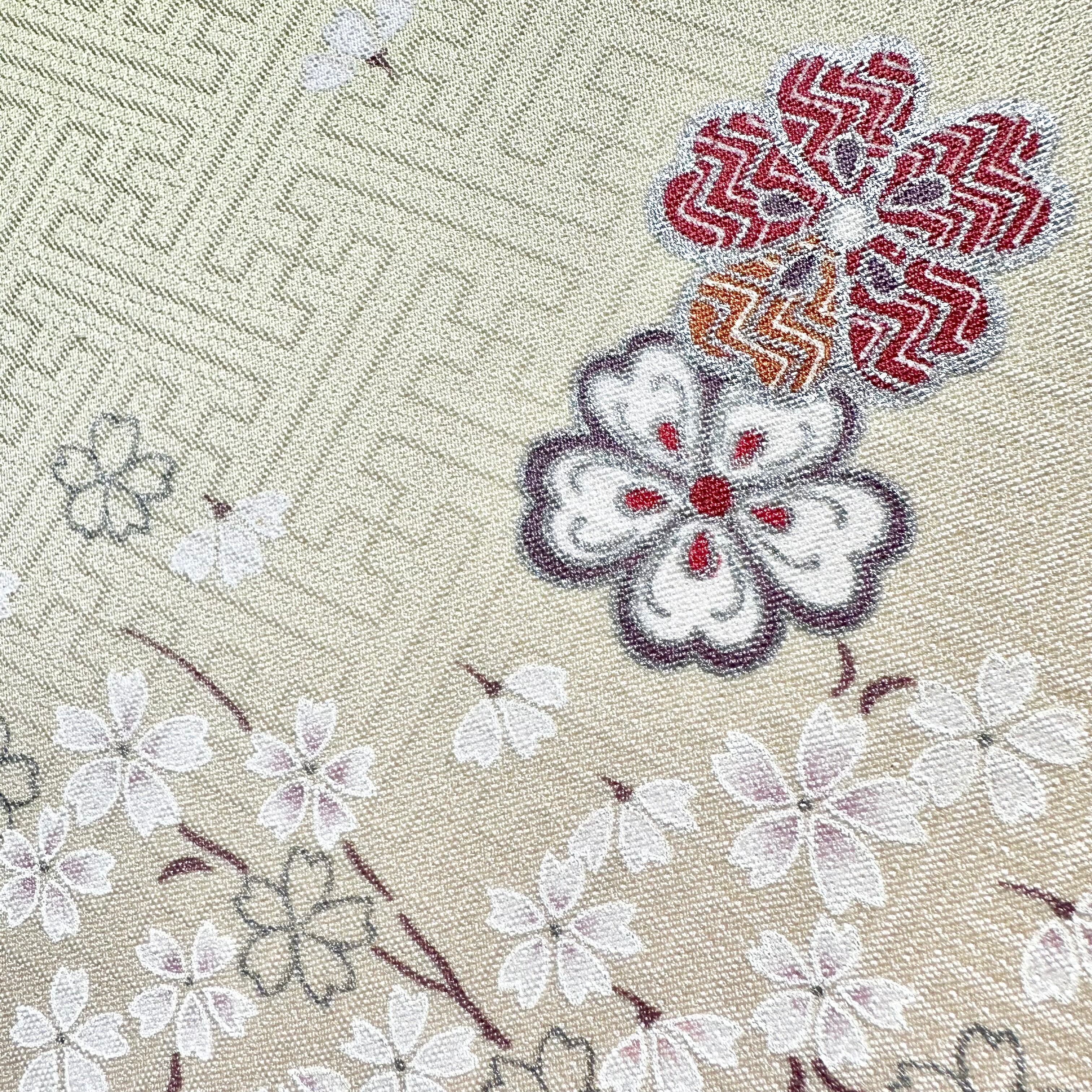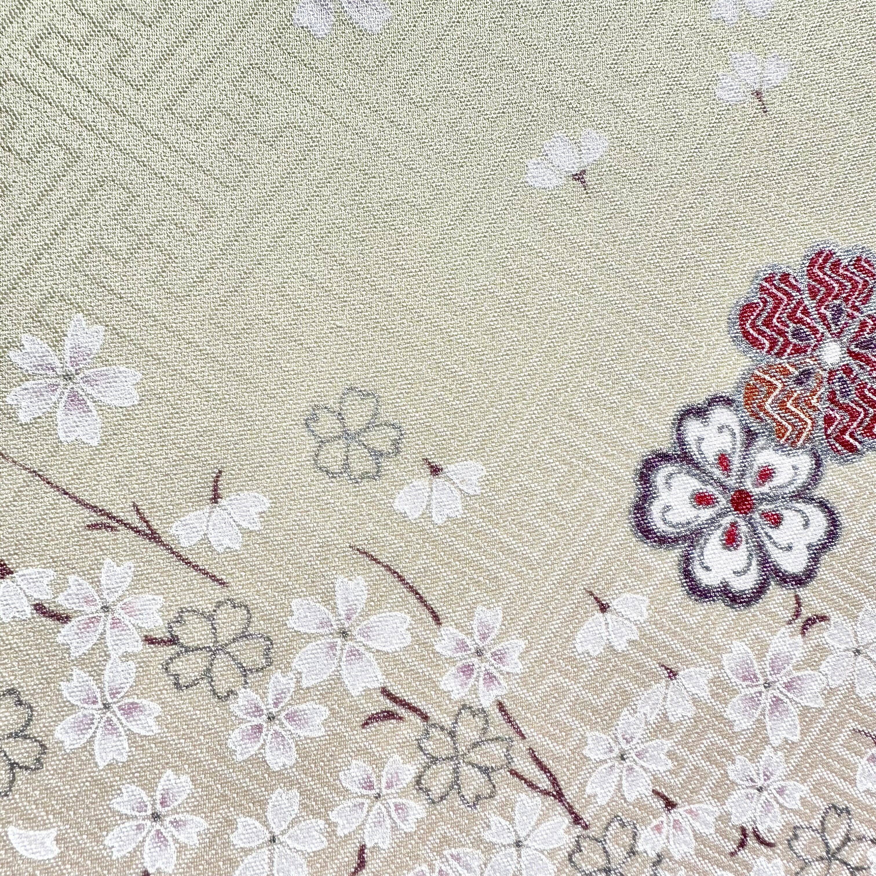 アンティーク着物ならではのやわらかな色合いと、日本の春を象徴する桜モチーフが、お部屋に上品でやさしい彩りを添えます。