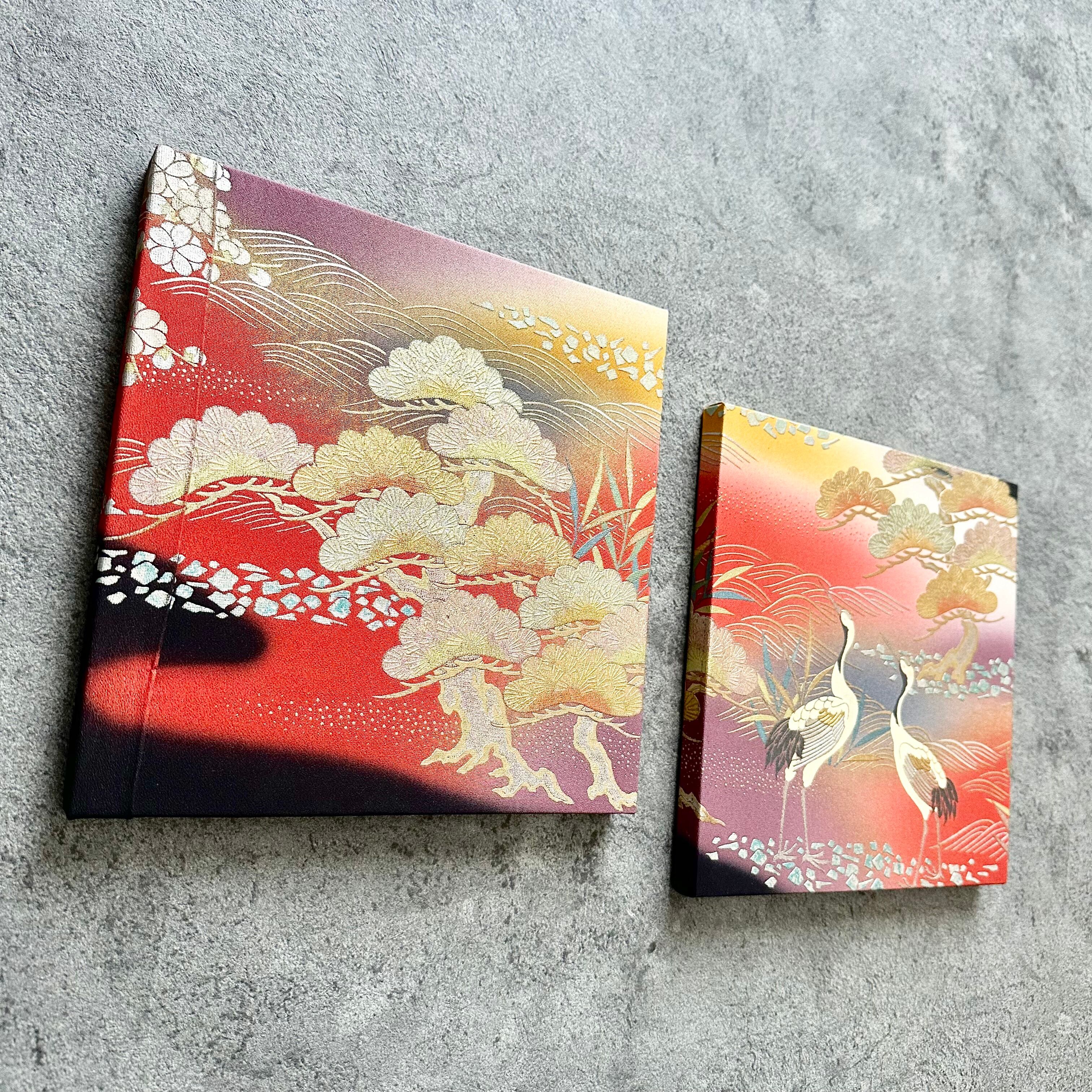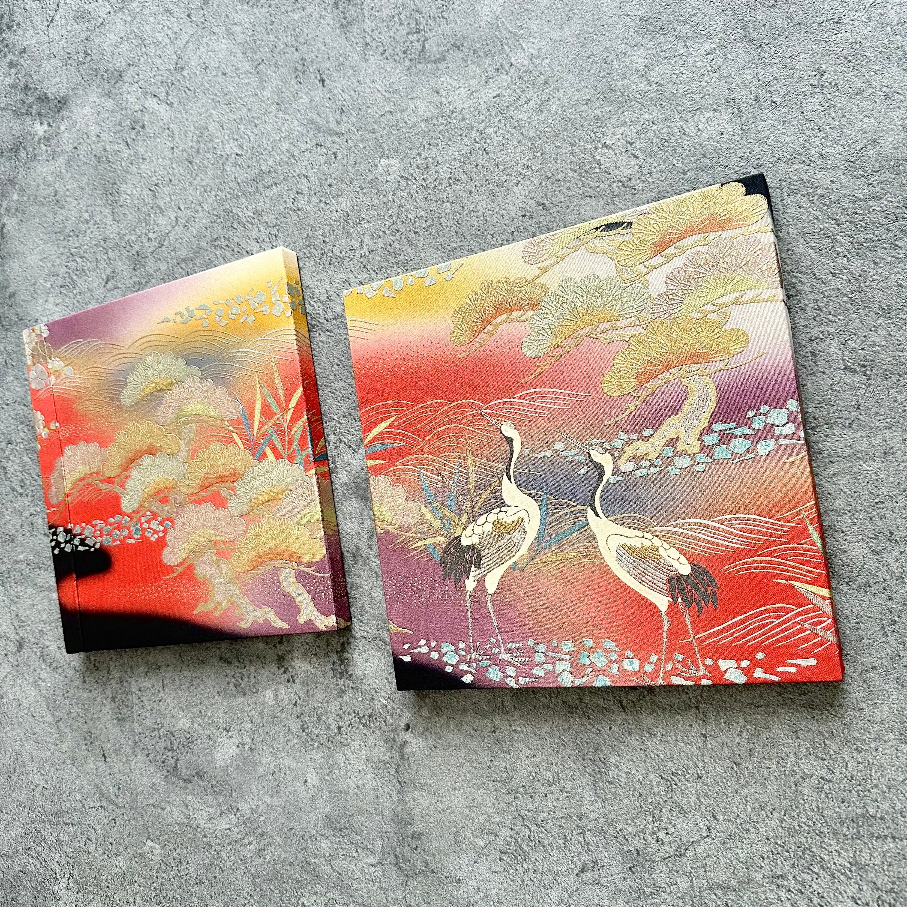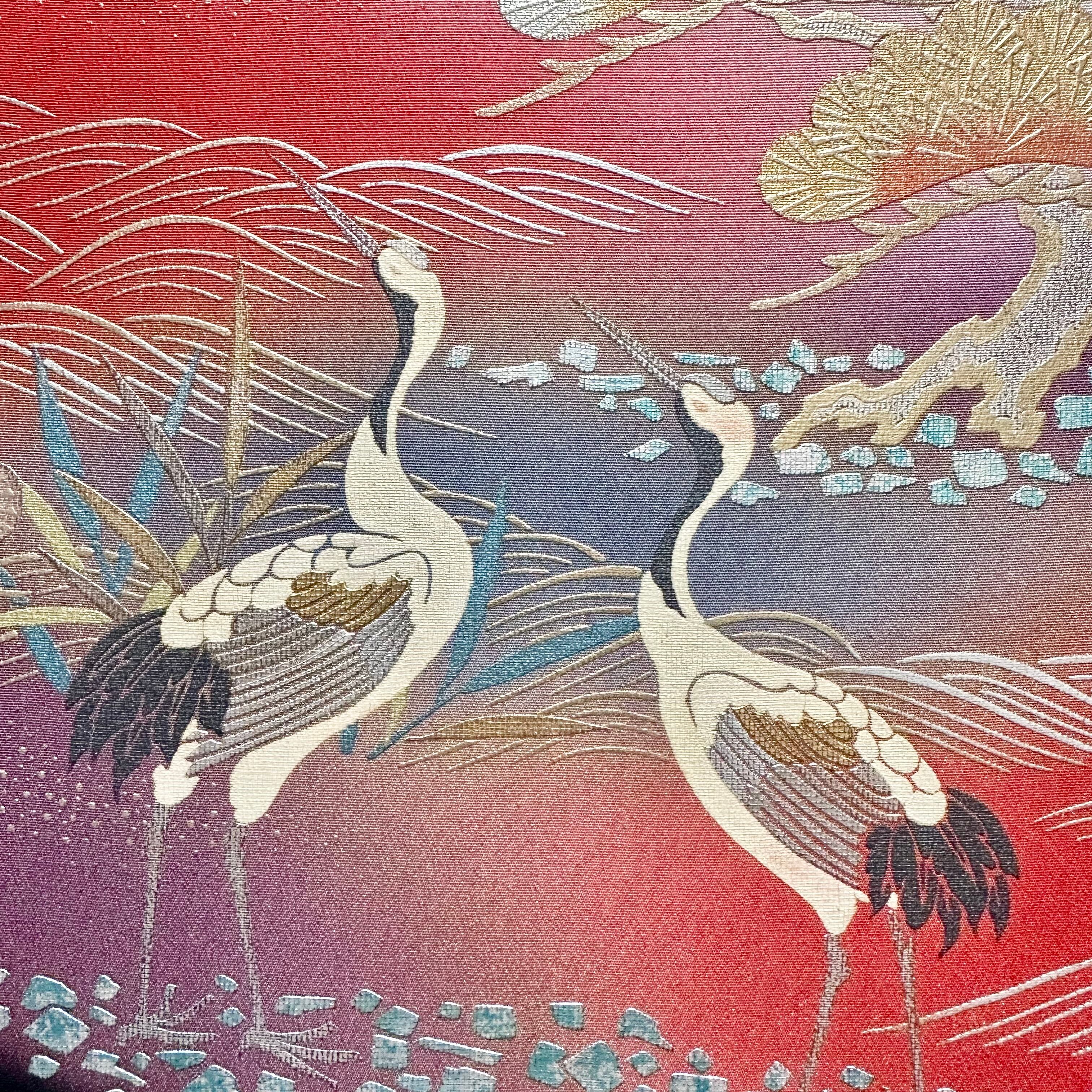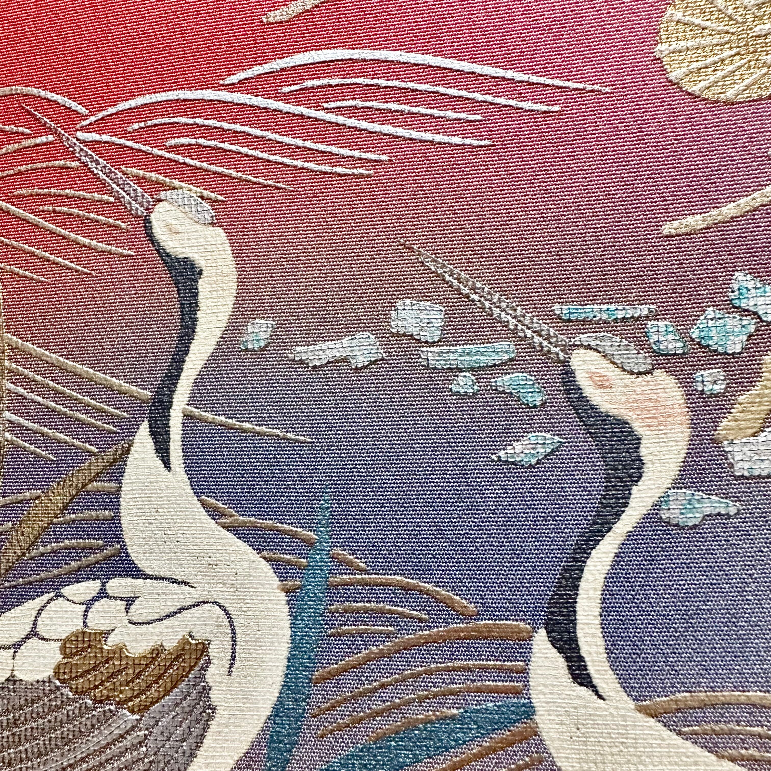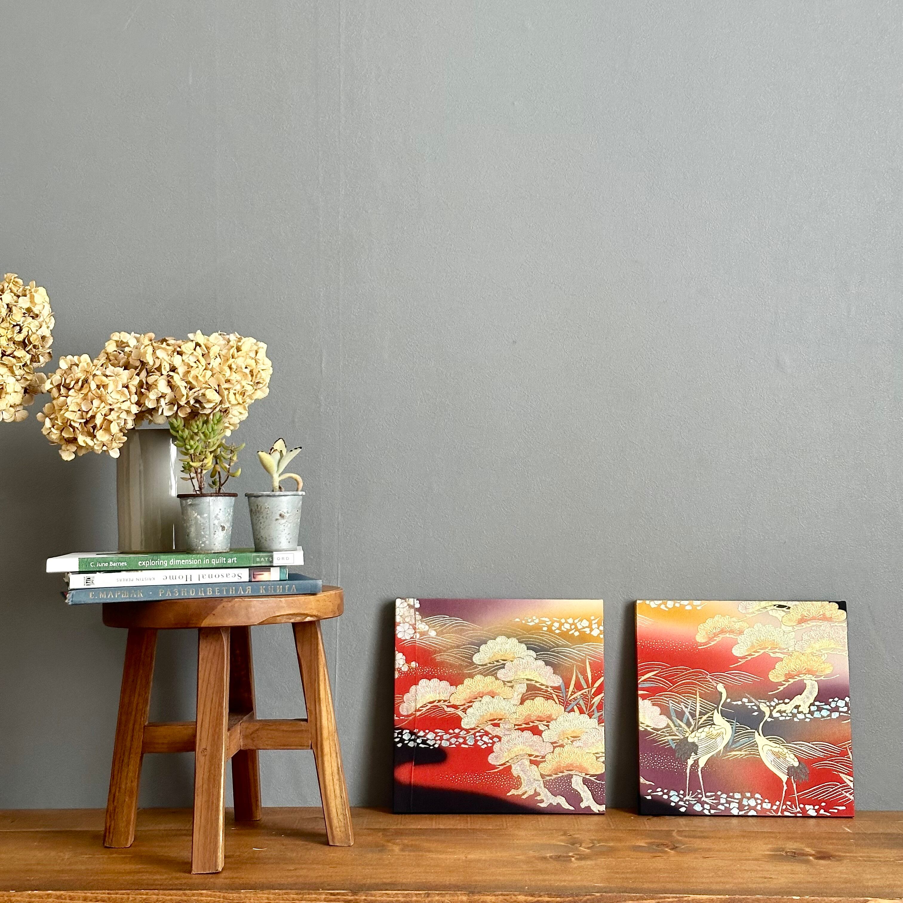 Vintage Kimono Fabric Panel ヴィンテージ着物 ファブリックパネル 朝焼けに鶴27×27cm(2枚組) Japanese Wall Art