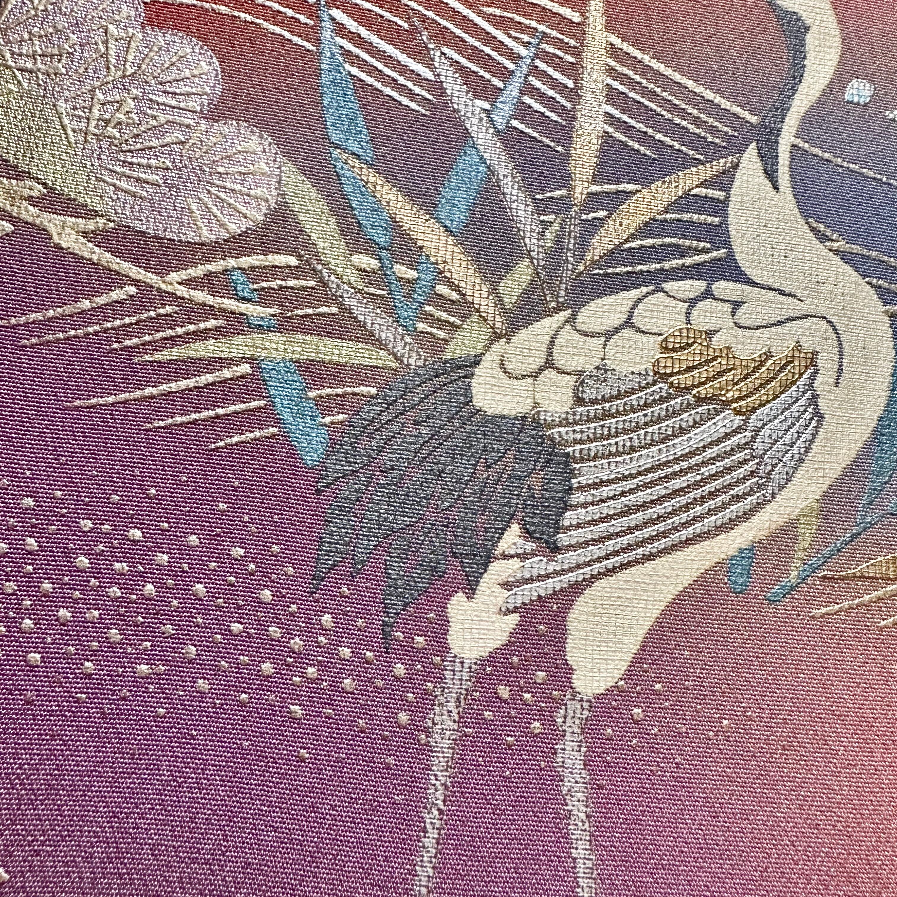 ヴィンテージの鶴柄のお着物から仕立てた一点もののファブリックパネルです。