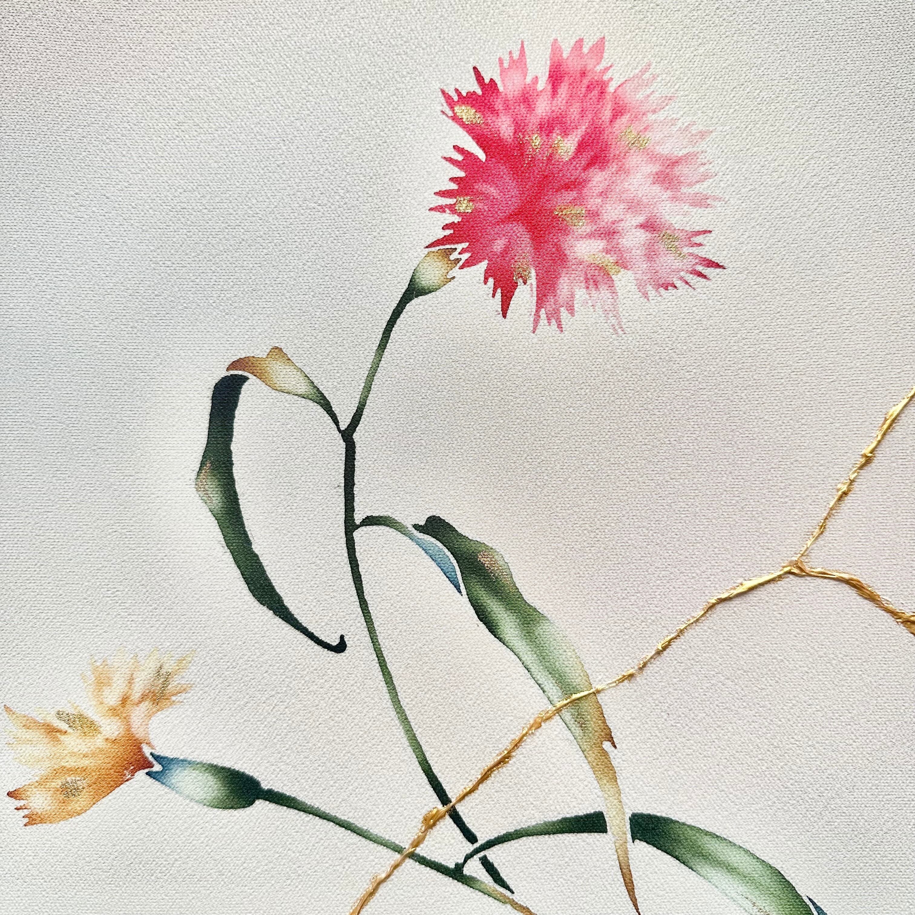 継ぎ -TSUGI- Collection 「想いをつなぐ、花 -Timeless Blooms of Connection」koto1946 Art Line 30×30cm 着物アート 和モダンアート アートパネル
