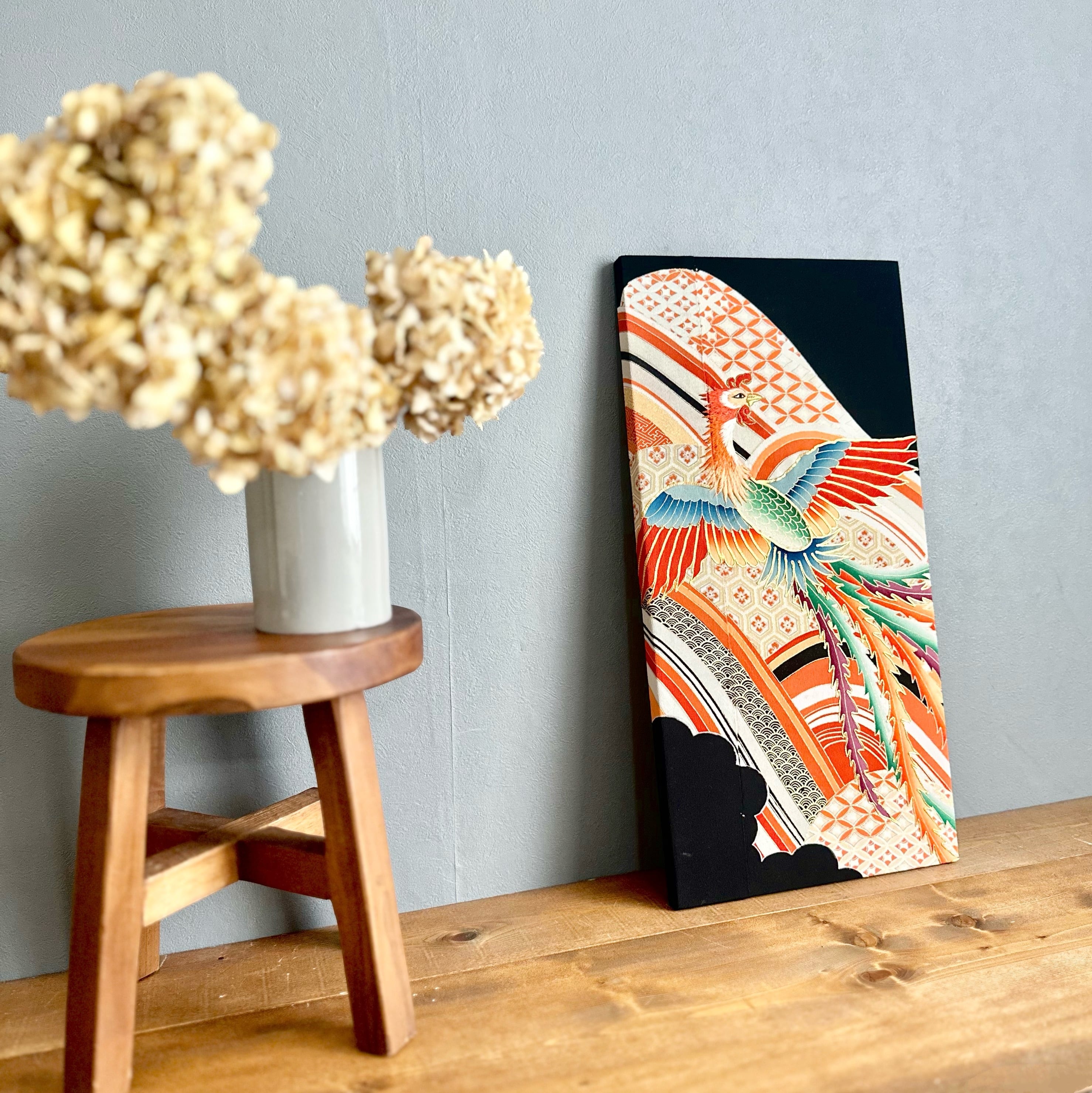 ヴィンテージならではの鮮やかな色使いと圧倒的な鳳凰の美しさは、一気に空間に華やかさをもたらします。